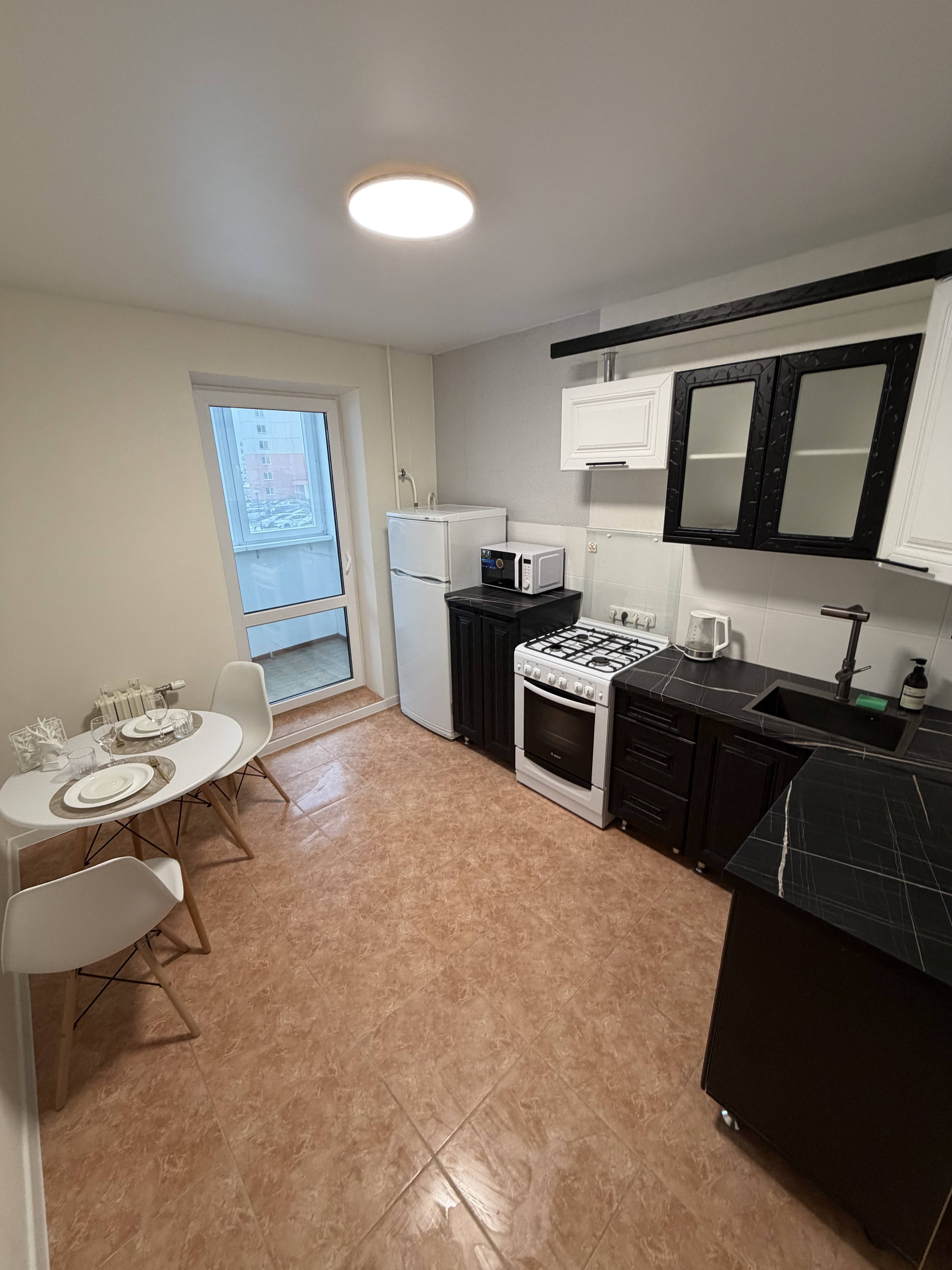 Расположение квартиры крайне удобно: в шаговой доступности находятся магазины,спортзал, школа, садик, заправка.