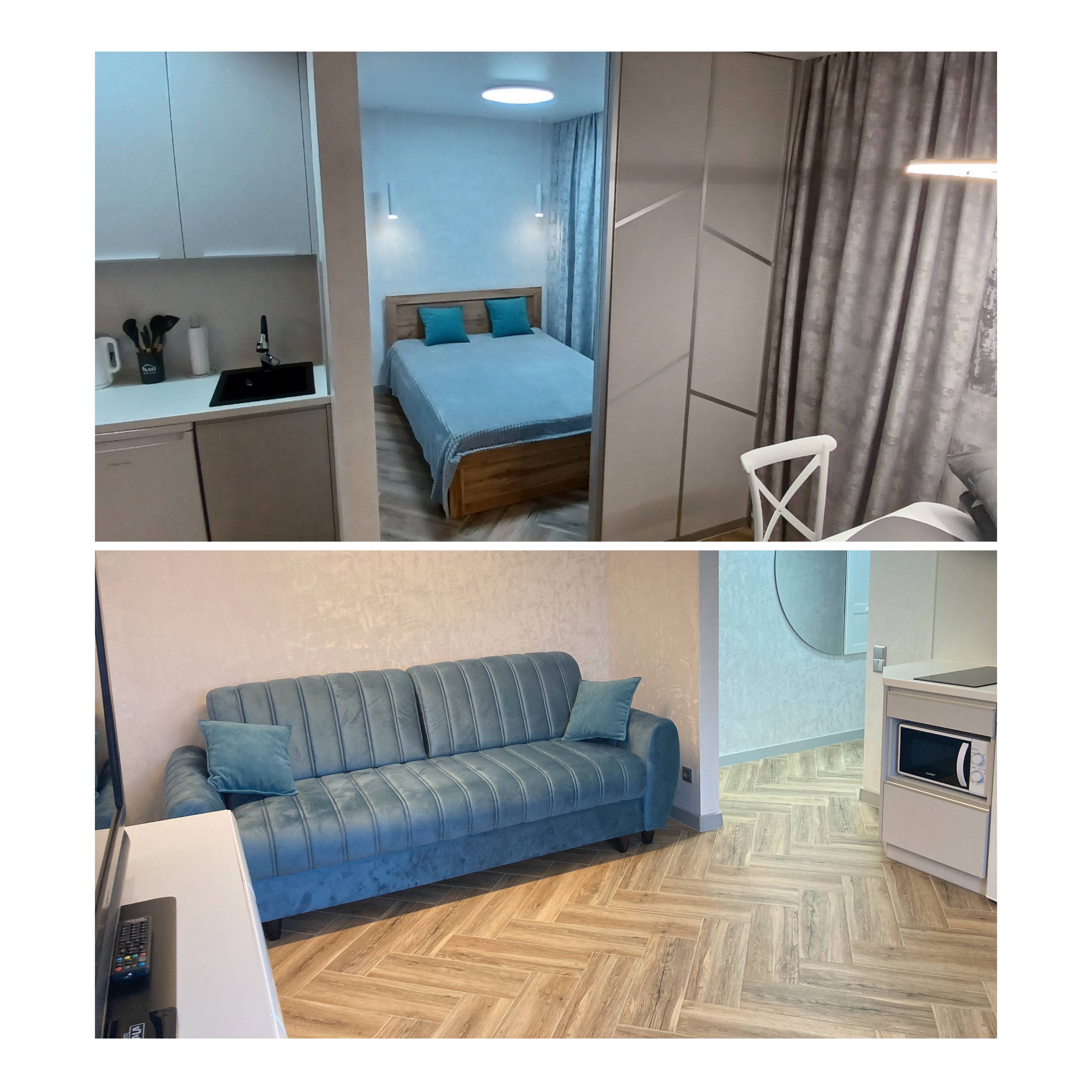 Прекрасная новая квартира-студия с отдельной спальней в центре города.
