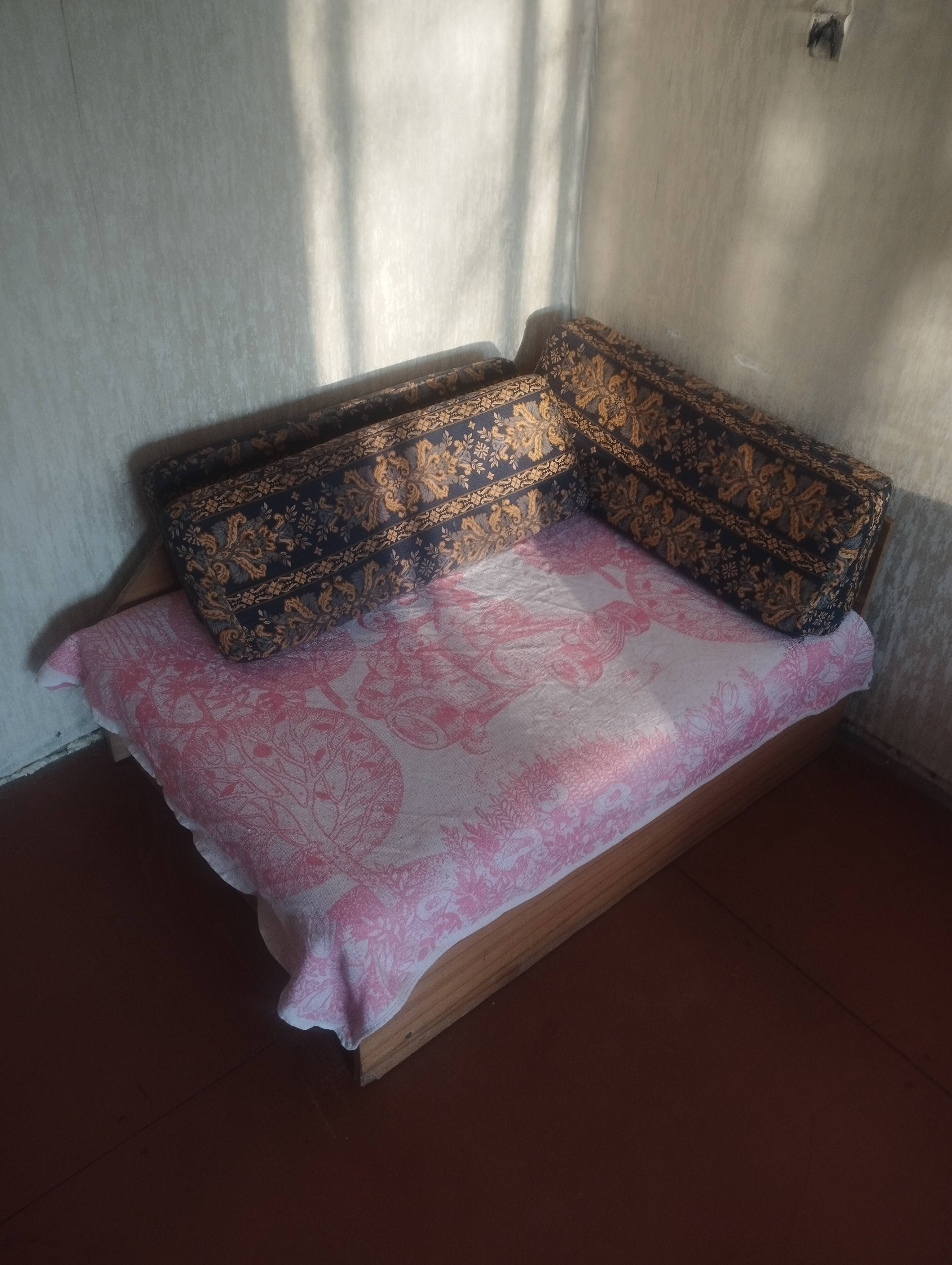 Из мебели кровать,тахта,стол,стулья Есть кухонные принадлежности Холодильника и стиральной машины нет
