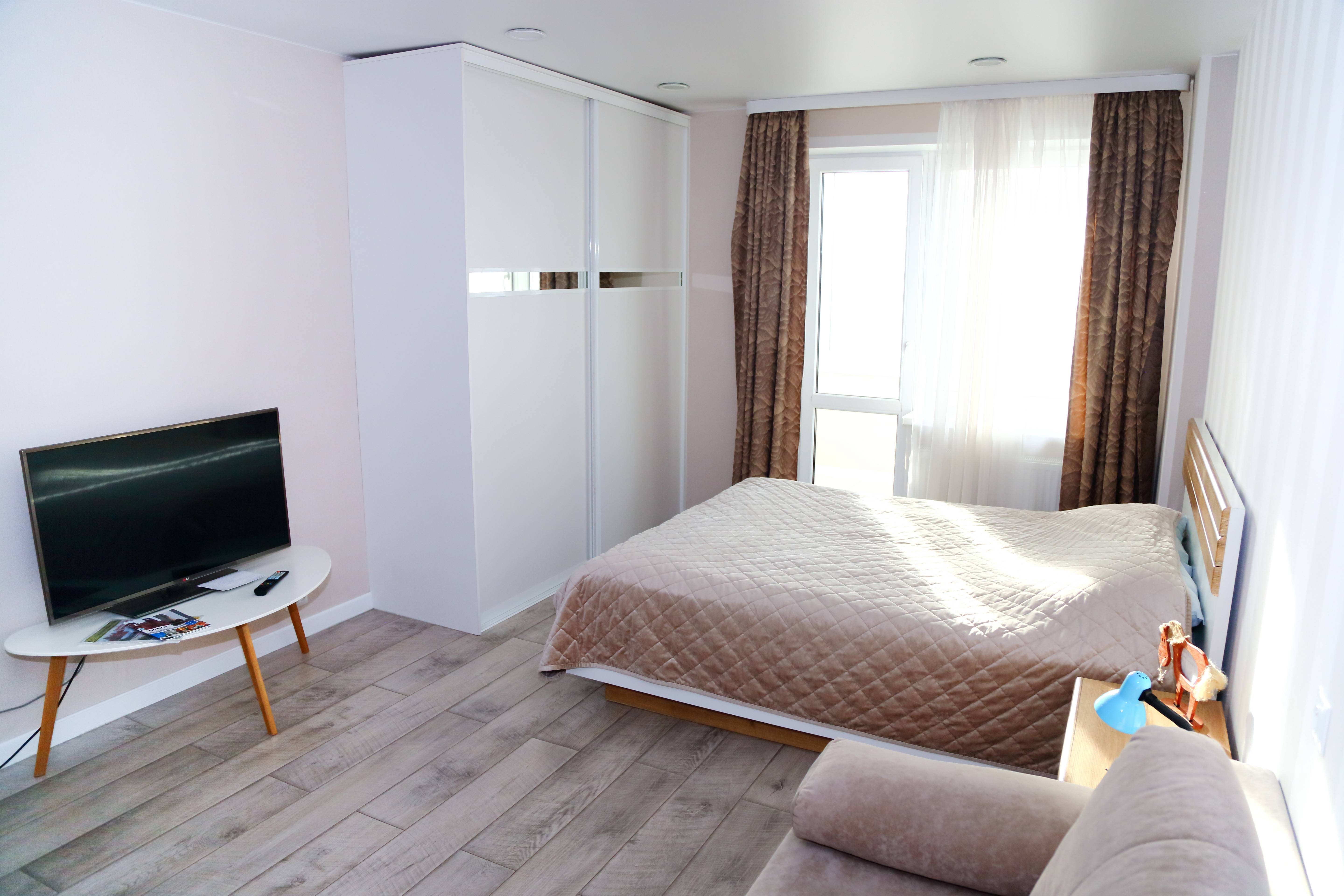 Новая однокомнатная квартира в центре Бреста, с шикарным панорамным видом на город . В 15 минутах ходьбы располагается ж/д вокзал, а до пешеходной улицы Советская- рукой подать. 3 км до Брестской крепости по ул Гоголя с её кованными фонарями.