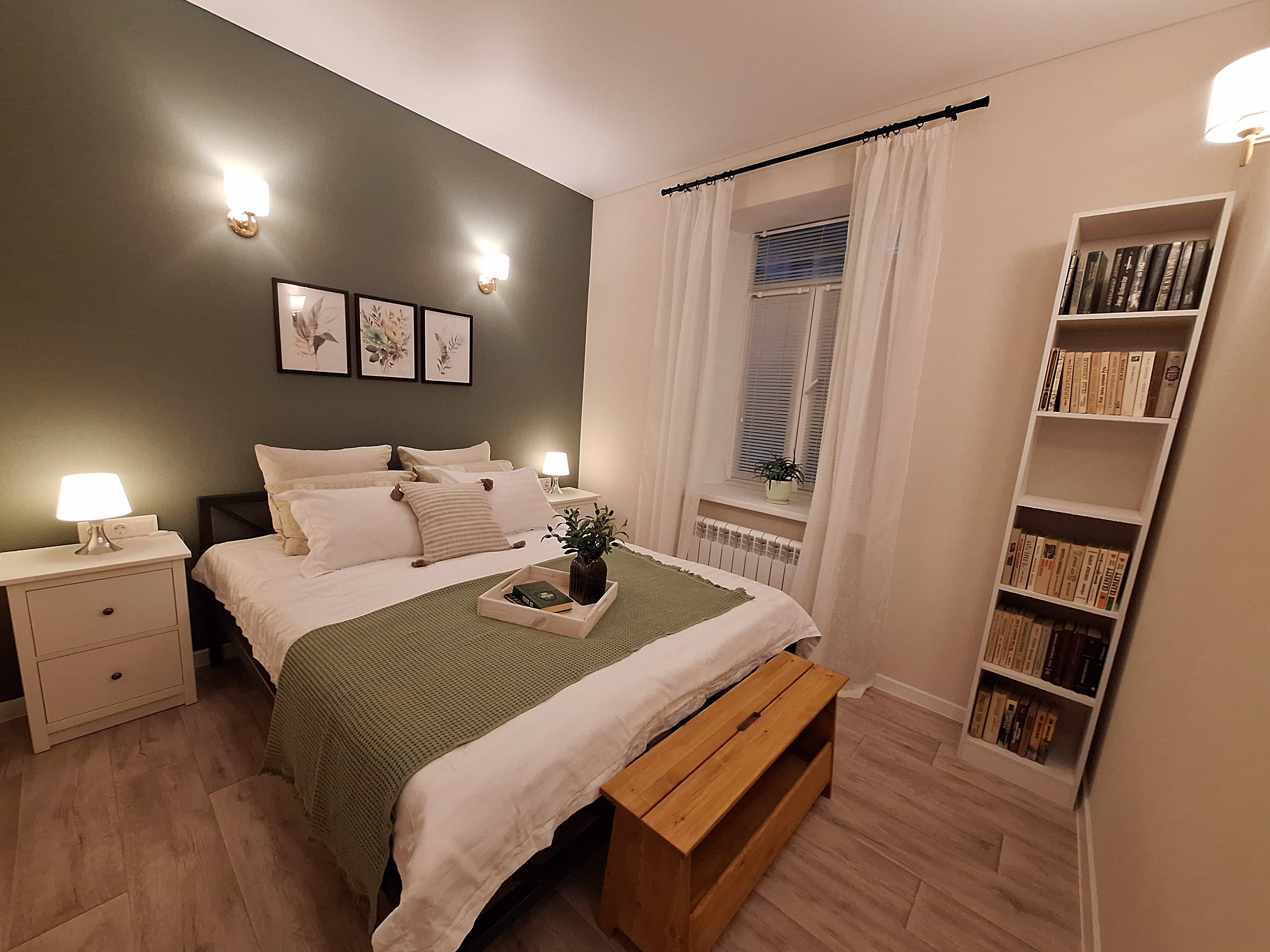 Квартира в центре Бреста с гостинной и отдельной спальней. Может разместиться 4 гостя (двуспальная кровать, двуспальный диван).