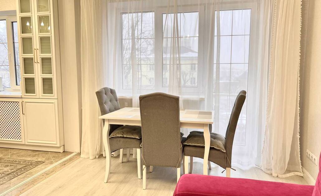 Хорошая квартира. Стильная, чистая, большая. Есть всё необходимое. Расположение удачное. Единственное, что огорчило это скрипучая кровать в одной спальне и не электрический чайник.