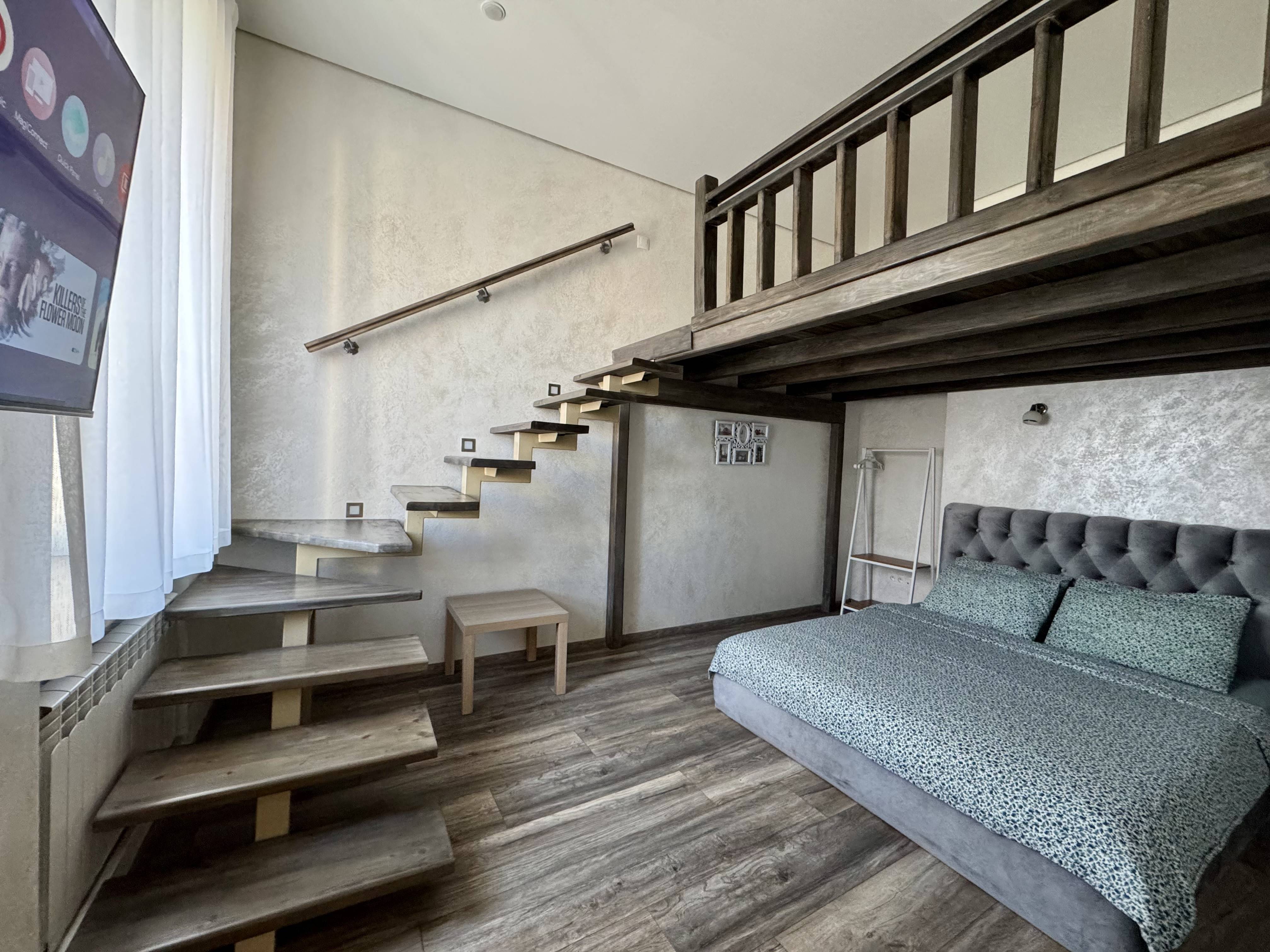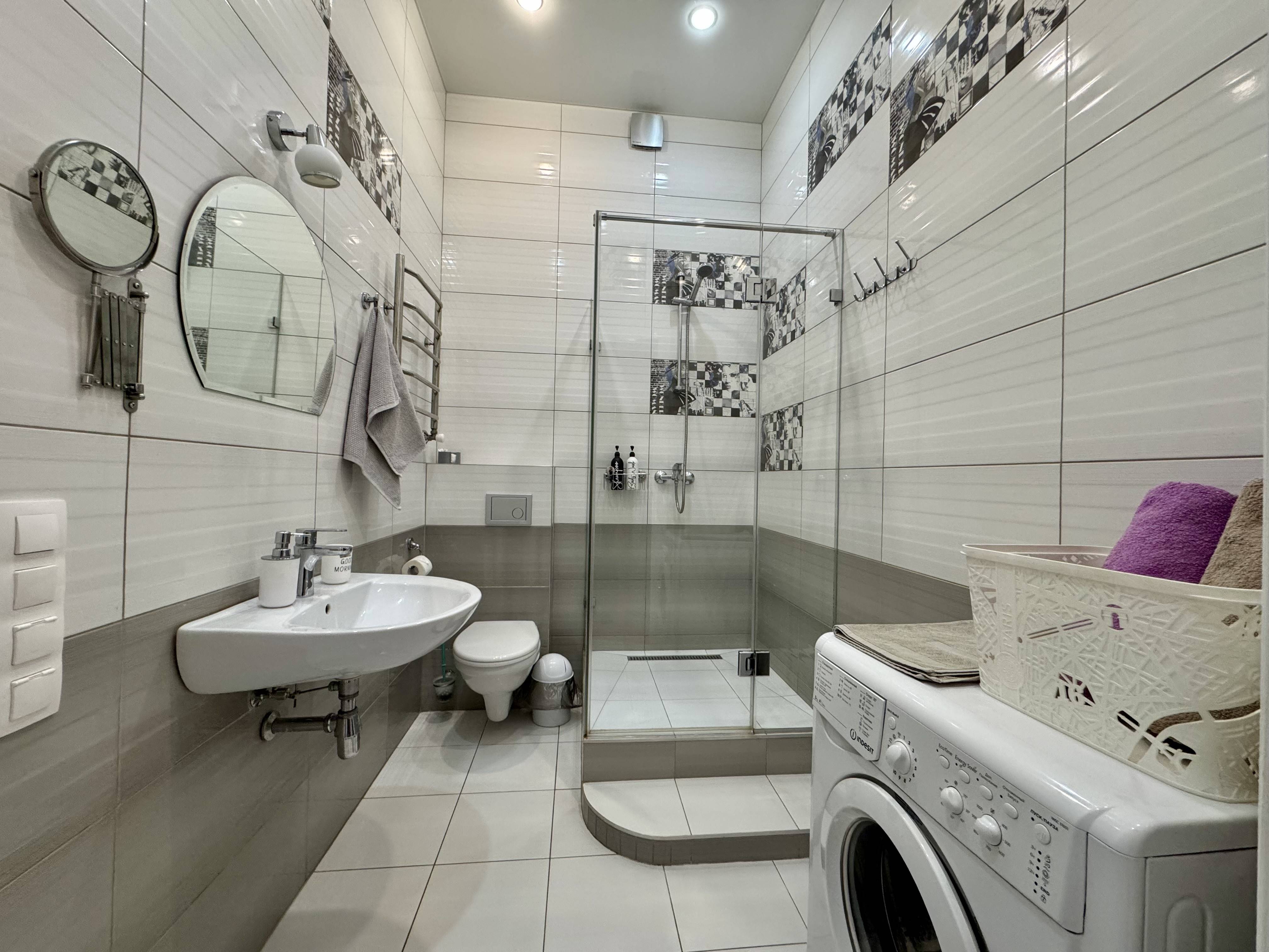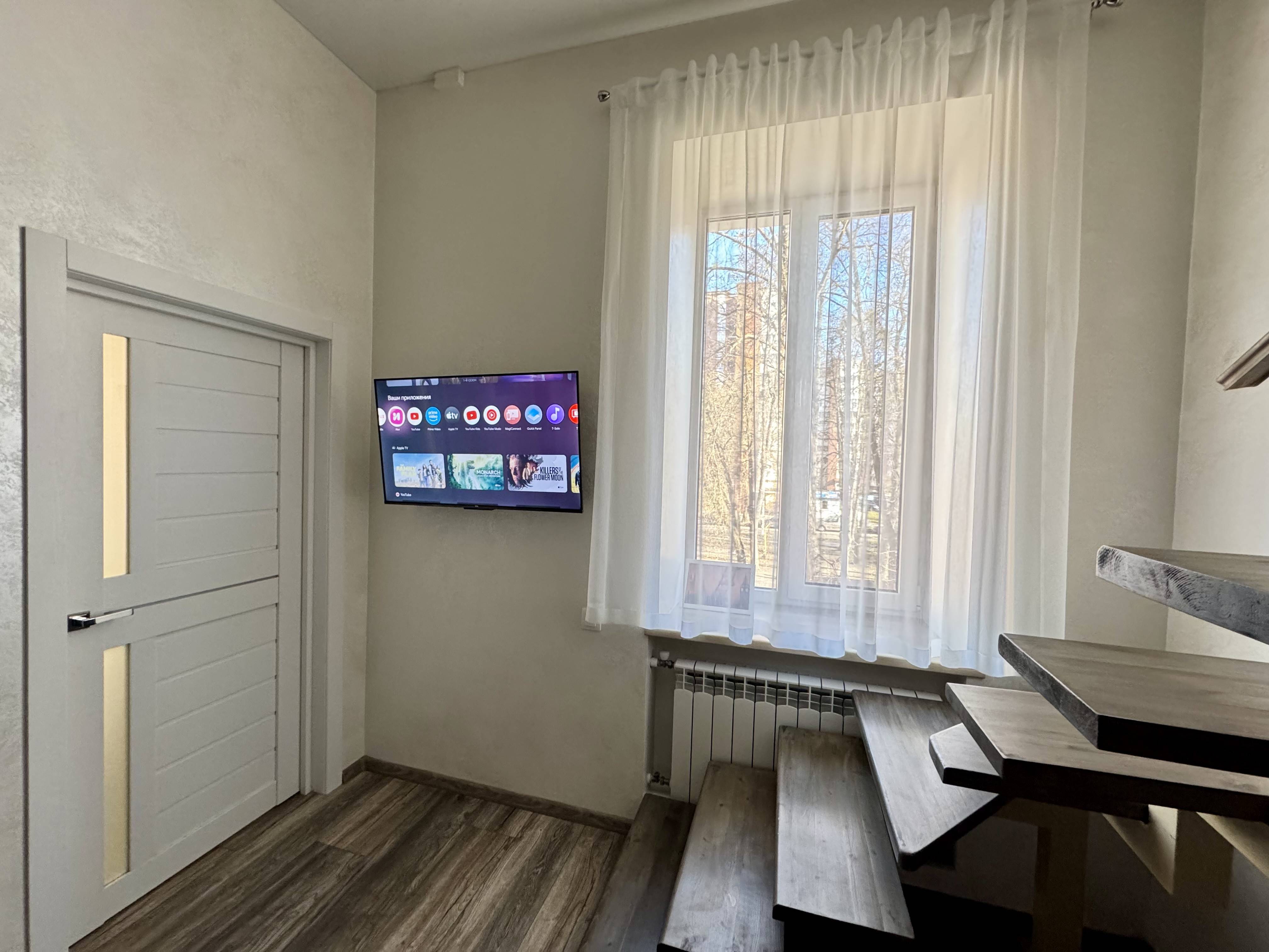 Квартира имеет оригинальный дизайн. Вмещает 6 человек. В квартире есть все для комфортного пребывания: Wi-Fi, 2 телевизора со Smart -TV, холодильник, чайник, стиральная машина, в случае отключения горячей воды - водонагреватель, утюг, фен, гладильная доска и вся необходимая мебель, посуда, столовые приборы, а так же свежее бельё, средства гигиены, чай/кофе, сахар, соль.