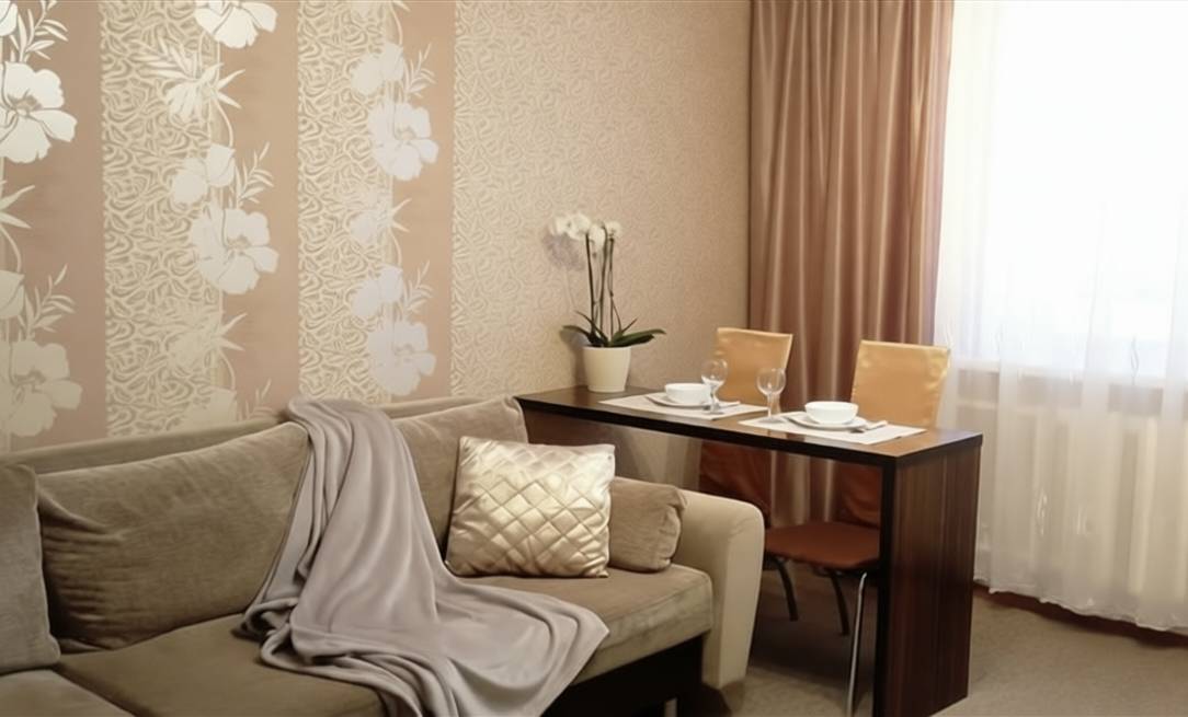 Возможность разместить до 4 человек- раскладной диван и двуспальная кровать.
