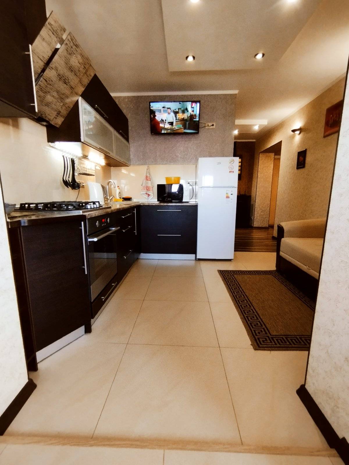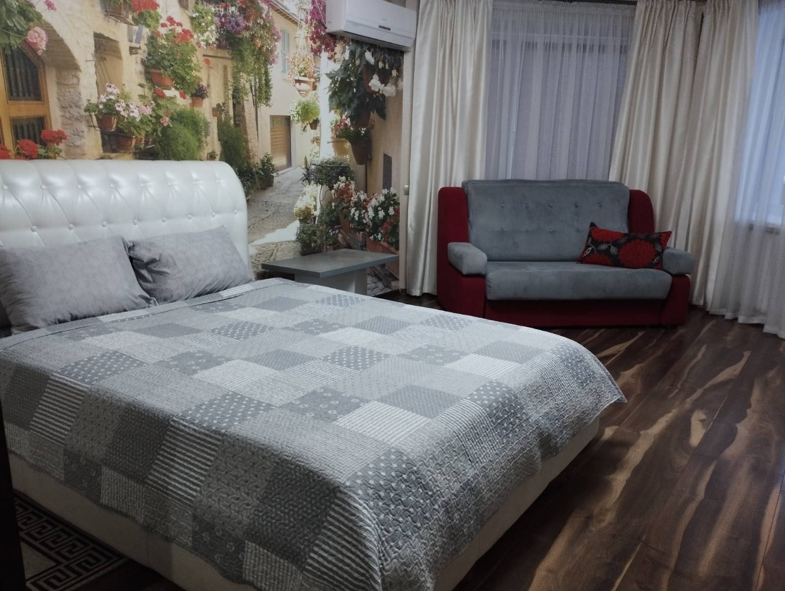 Вся необходимая современная бытовая техника (кондиционер, пылесос, два плазменных телевизора, холодильник, печь-СВЧ, эл.чайник, стиральная машина, гладильная доска, сушилка для белья), постельное белье и полотенца, кухонная посуда; чай, кофе, сахар. Гарантируем соответствие фото действительности! Бесплатная парковка. Отчетные документы. Цена указана за одного гостя. Больше гостей-выше цена. Цена в праздничные , летние и выходные дни выше указанной, просьба уточнять. Быстрое заселение. Для Вашего удобства безлимитный интернет (WI-FI).