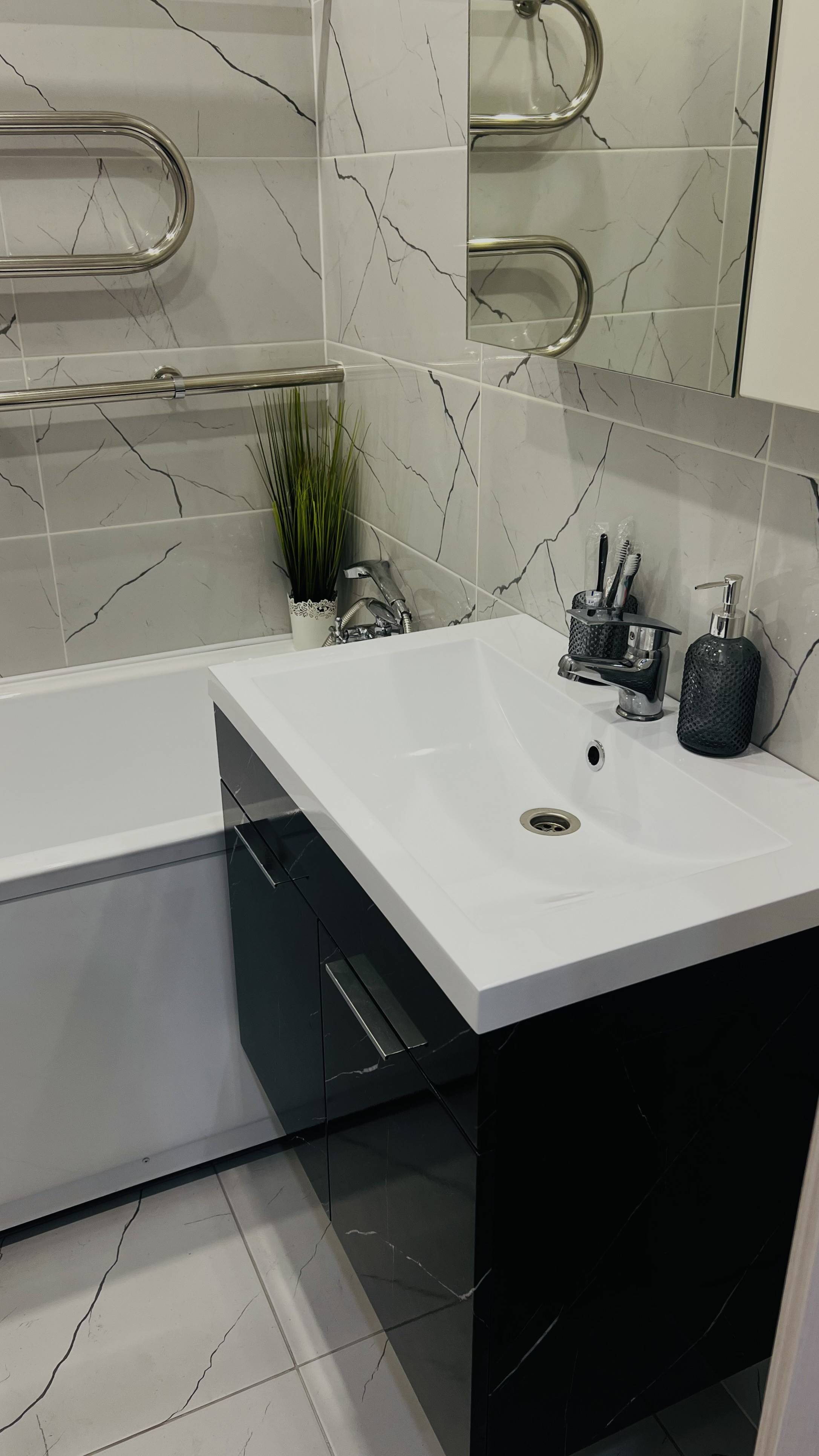 Отдельная спальня с ДВУСПАЛЬНОЙ КРОВАТЬЮ, гостиная с большим ДИВАНОМ, кухня и большой уютный БАЛКОН. На кухне всё необходимое: техника, посуда, чай, кофе, масло, сахар, соль, приправы, лёд. В ванной комнате: фен, индивидуальные щётки, паста, гель для душа, мицелярка.