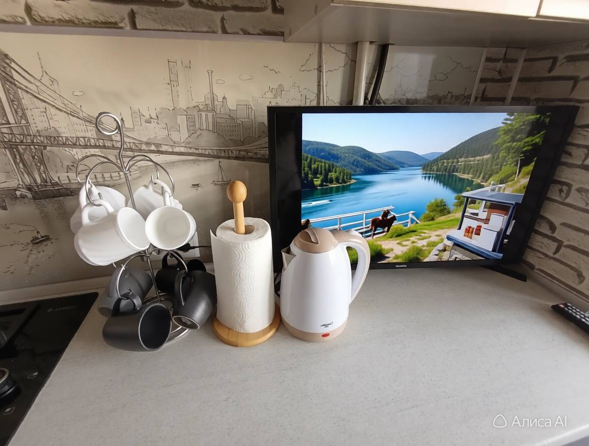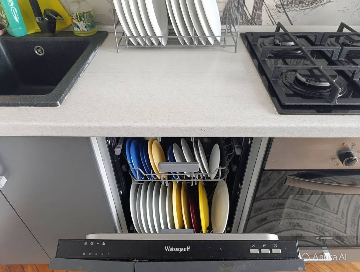 Все, как дома! Современная кухня с духовкой, микроволновкой, чайником и посудой, и посудомоечной машиной.