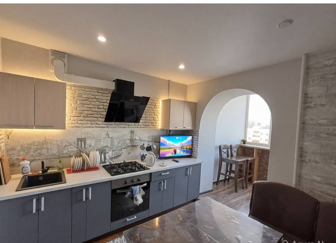 Две изолированные спальни большая гостиная и кухня. Вмещают до 6-9 человек. Квартира с современным ремонтом. большие окна, удобные кровати, мягкий диван, Smart-телевизор с доступом в YouTube/Netflix.