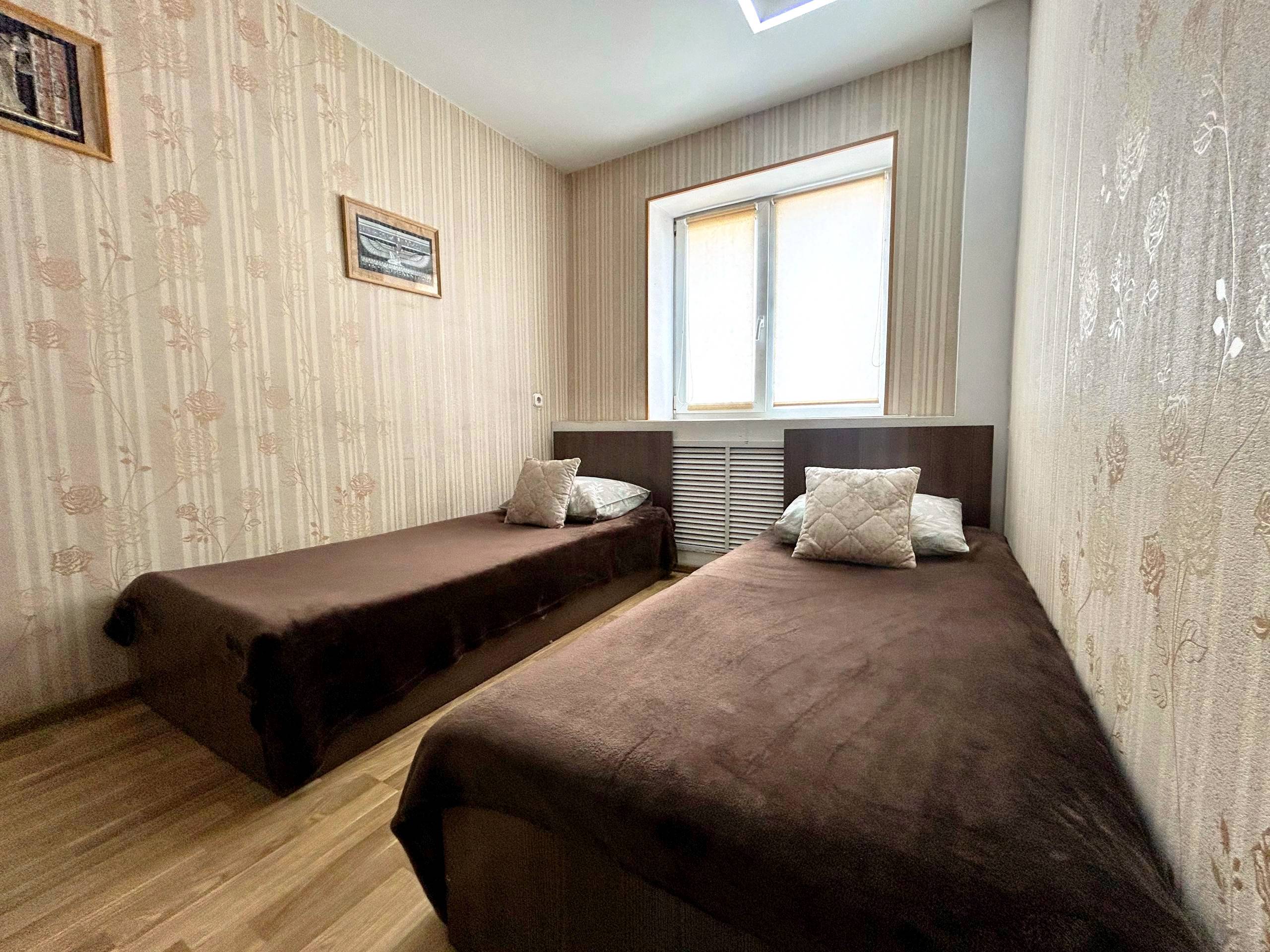 Уважаемые гомельчане и гости нашего прекрасного города над Сожем! Предлагаем вашему вниманию уютные двухкомнатные апартаменты комфорт-класса в самом сердце исторического Гомеля. Квартира расположена в шаговой доступности от главных достопримечательностей: парка и дворца Румянцевых-Паскевичей, набережной, площади Ленина и Драмтеатра. Главное преимущество — гибкая планировка спальных мест: Квартира идеально подходит как для двух пар, так и для больших семей (пара с 2-3 детьми). В спальне расположены две односпальные кровати, которые по вашему желанию легко трансформируются в одну большую двуспальную кровать. В гостиной зоне — два комфортных дивана (двуспальный и односпальный). Максимальное размещение — до 5 человек. 2+1+1+1 или 2+2+1. Для вашего комфорта имеется всё необходимое: Техника: 2 ЖК-телевизора (Smart-TV), бесплатный высокоскоростной Wi-Fi, стиральная машина, холодильник, СВЧ-печь, электрочайник, фен, утюг и гладильная доска. Кухня: газовая плита, полный набор посуды для приготовления и приема пищи. Приятные мелочи: свежее постельное белье, полотенца и сушилка для белья. Вся инфраструктура центра (кафе, рестораны, казино, аттракционы) — буквально за порогом. Фотографии полностью соответствуют реальности. Стоимость: зависит от дат бронирования и количества гостей. Есть отчётные документы для командированных сотрудников. Возможна оплата по безналичному расчету.