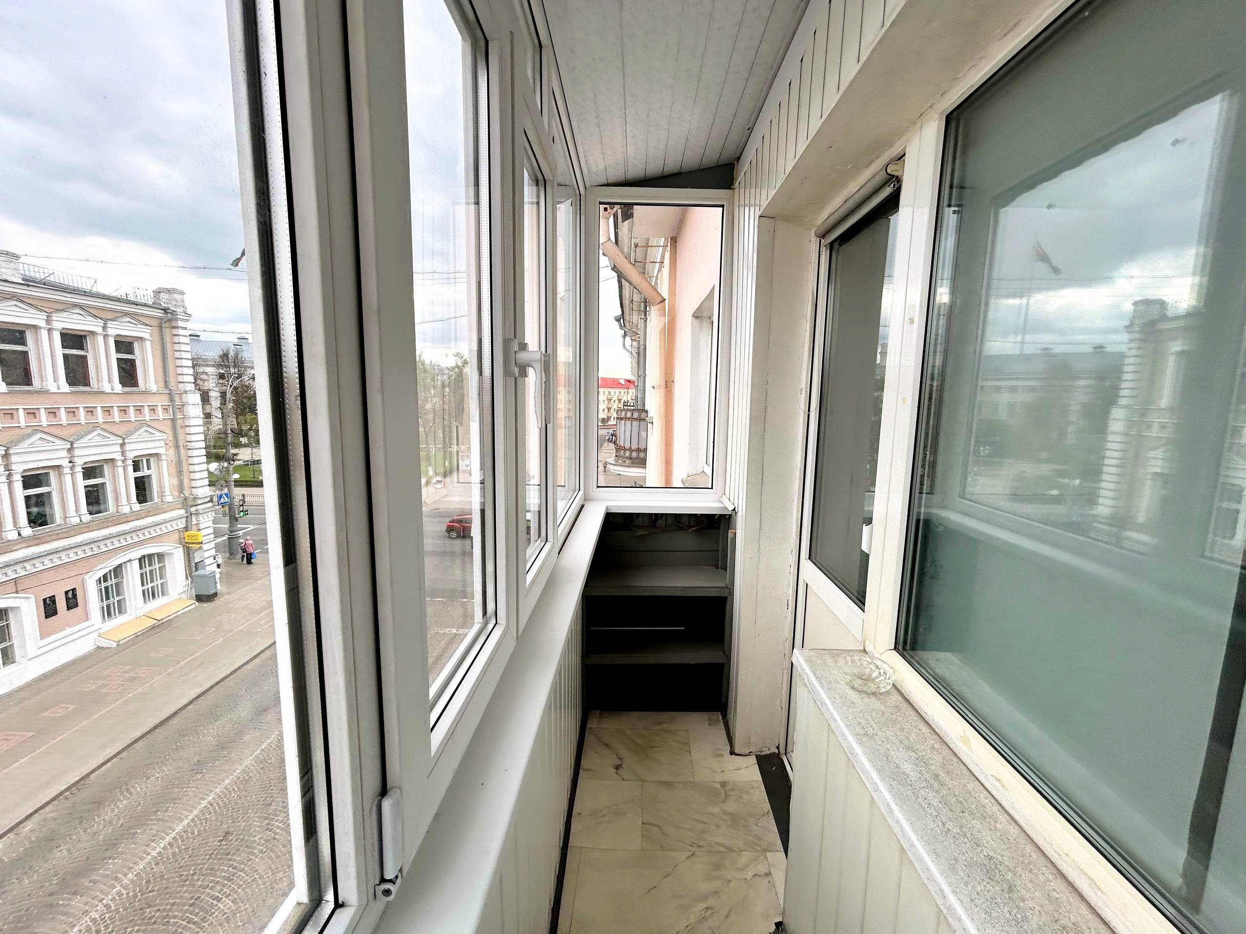Курение разрешено на застекленном балконе с видом на площадь Ленина.