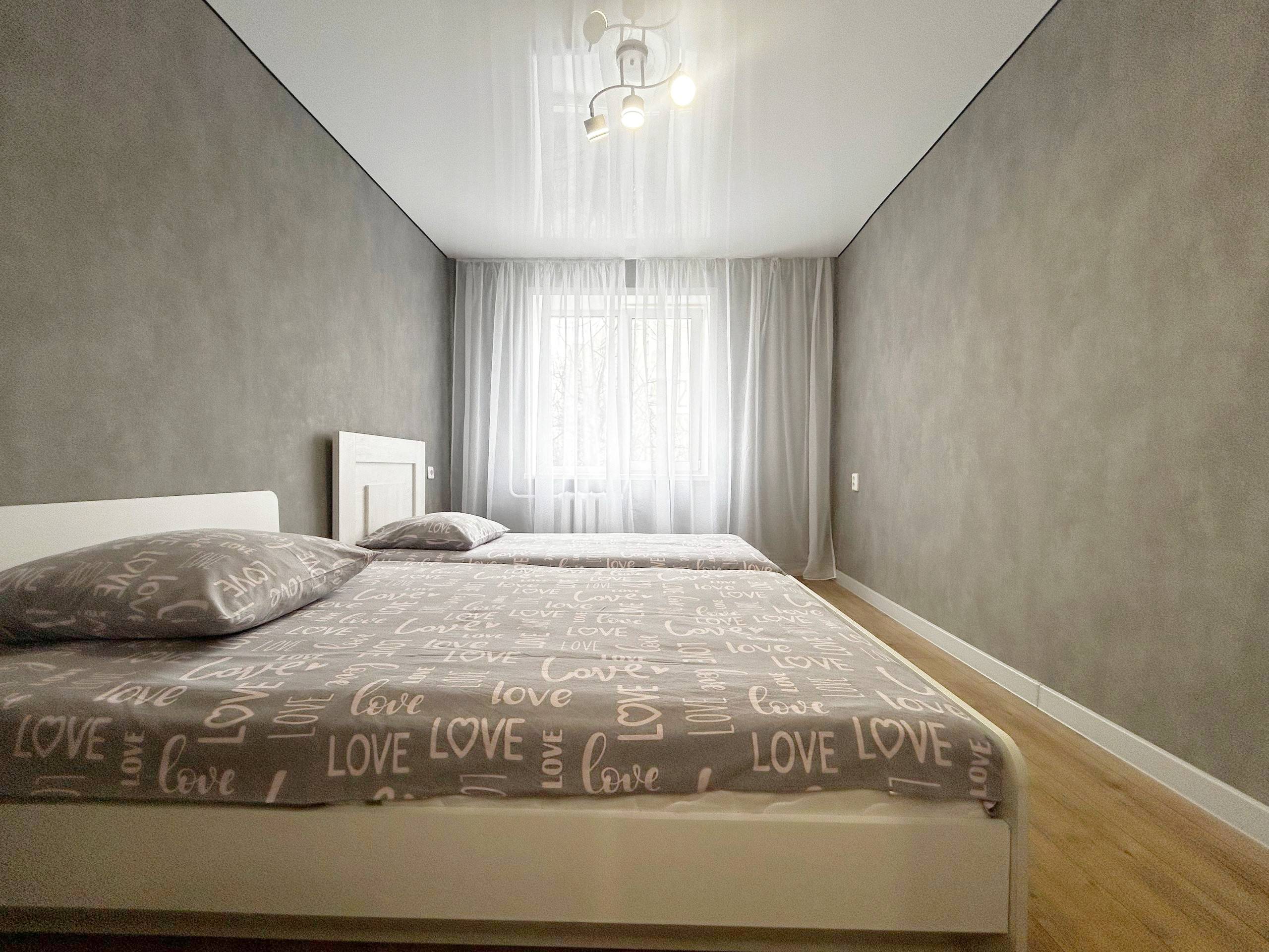 Можно разместить 7 гостей: двухспальная кровать, двухспальная кровать, односпальная кровать, двухспальный диван.