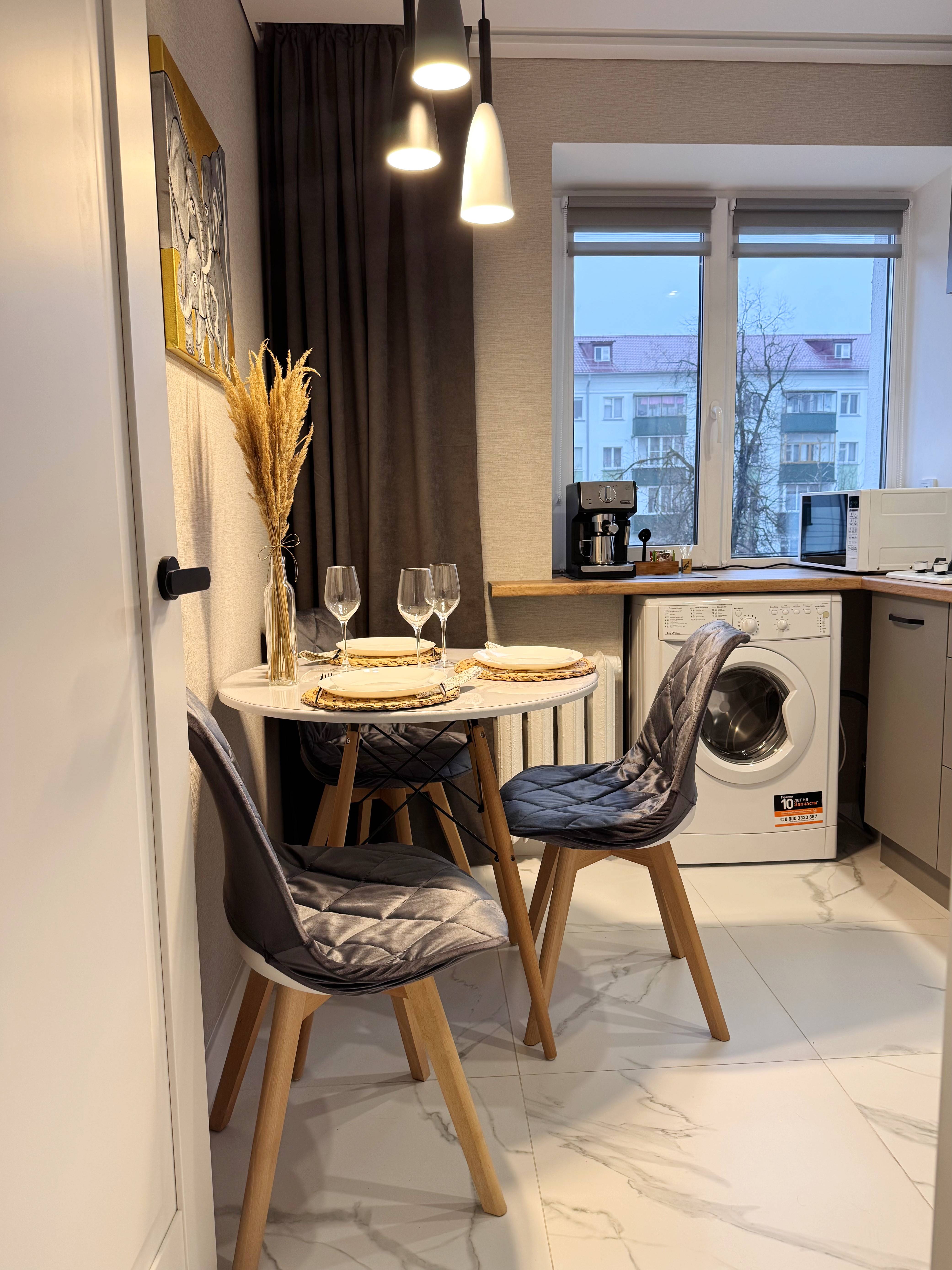 A cozy one-bedroom apartment with perfect location at the heart of the city. It's the closest flat to main train and bus station. 1 minute walk to a grocery opened from 7 am to midnight. There are many sights, cafes and restaurants straight nearby. You can also throw your own "outdoor cafe" at the balcony with a nice view of Pobedy blvd.