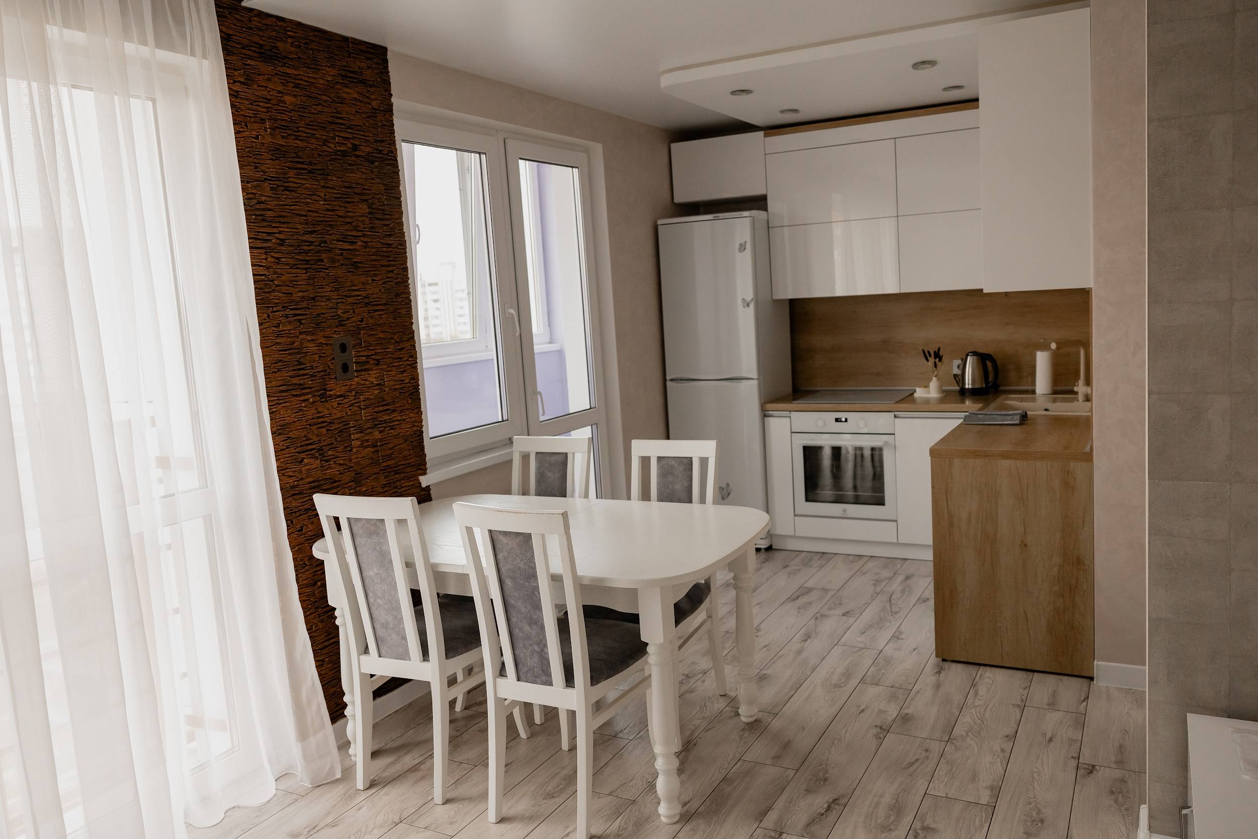 Всегда к вашим услугам бесплатный Wi-Fi, Смарт ТВ, чай, кофе, сахар и соль, полный комплект посуды для приготовления и сервировки. Для комфорта наших гостей мы предоставляем свежее постельное белье, полоценца согласно количеству гостей, одноразовые средства личной гигиены и тапочки.