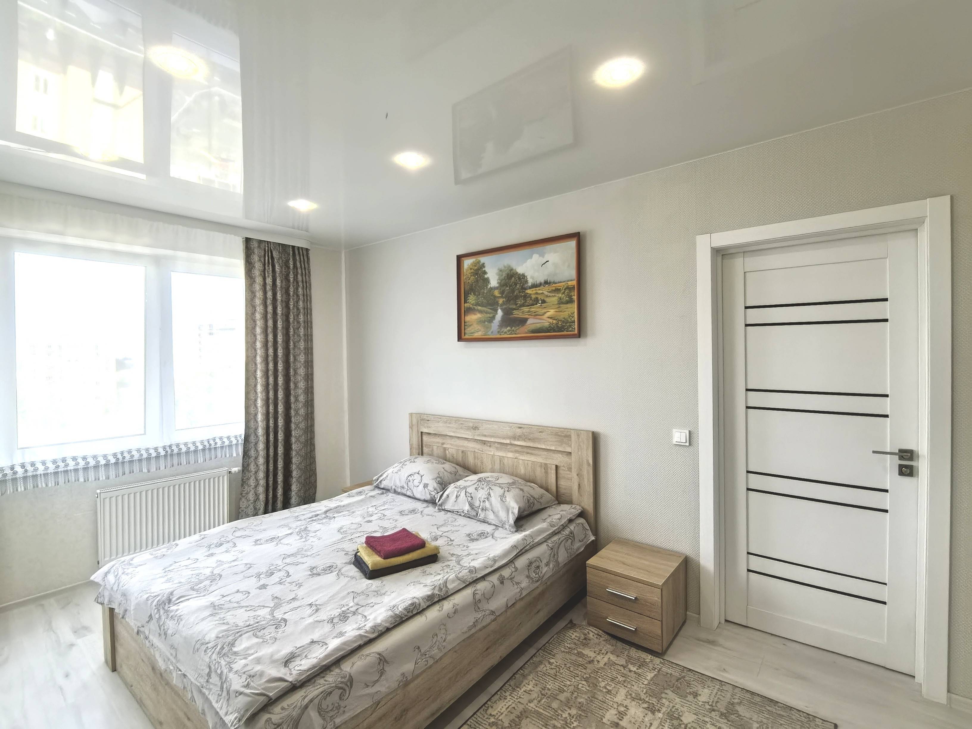 Для удобства гостей, есть ЖК ТВ, вай-фай, холодильник, СВЧ, стиральная машина, фен, утюг, столовые приборы, посуда, постельное бельё, полотенца и тд.