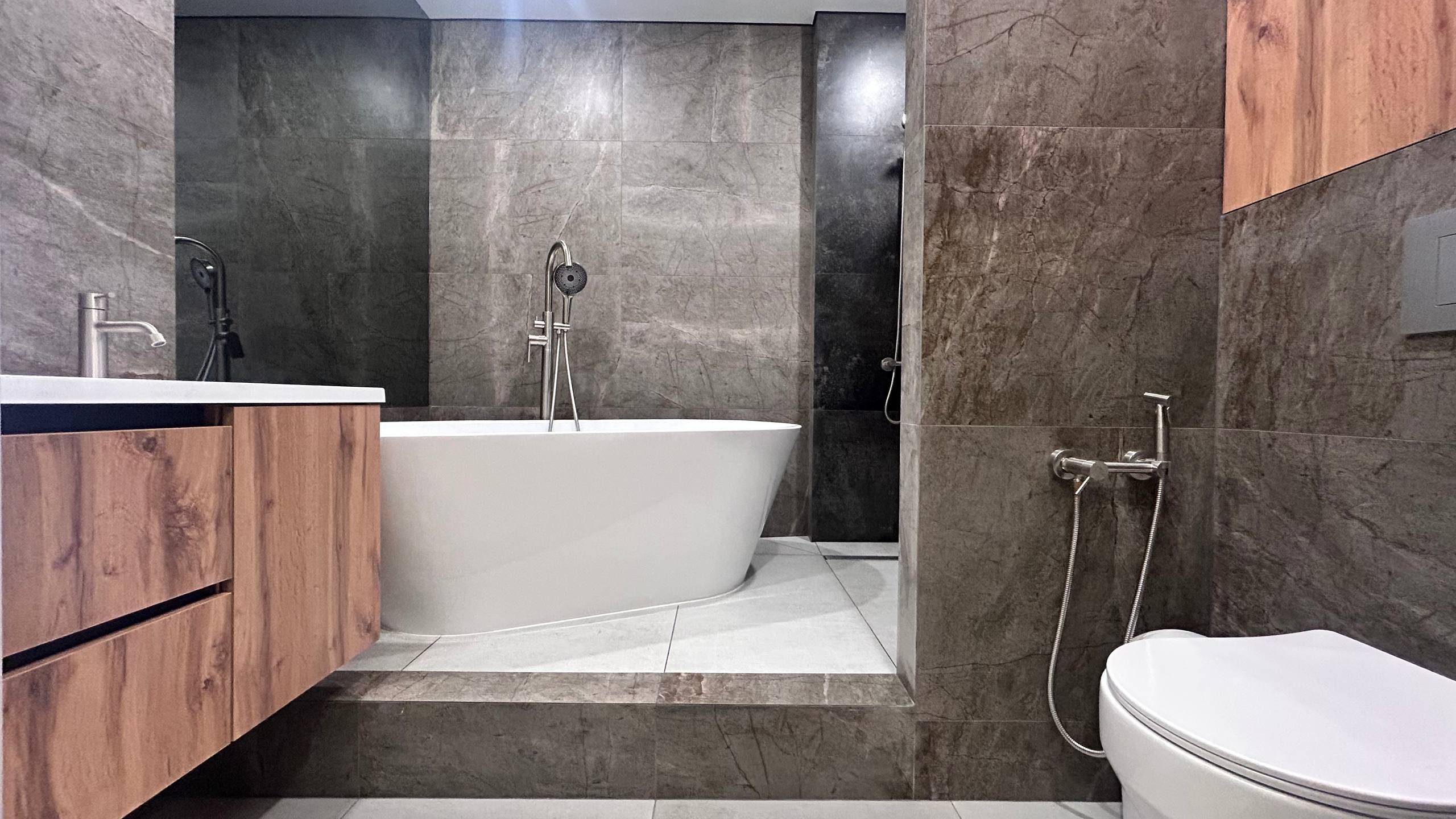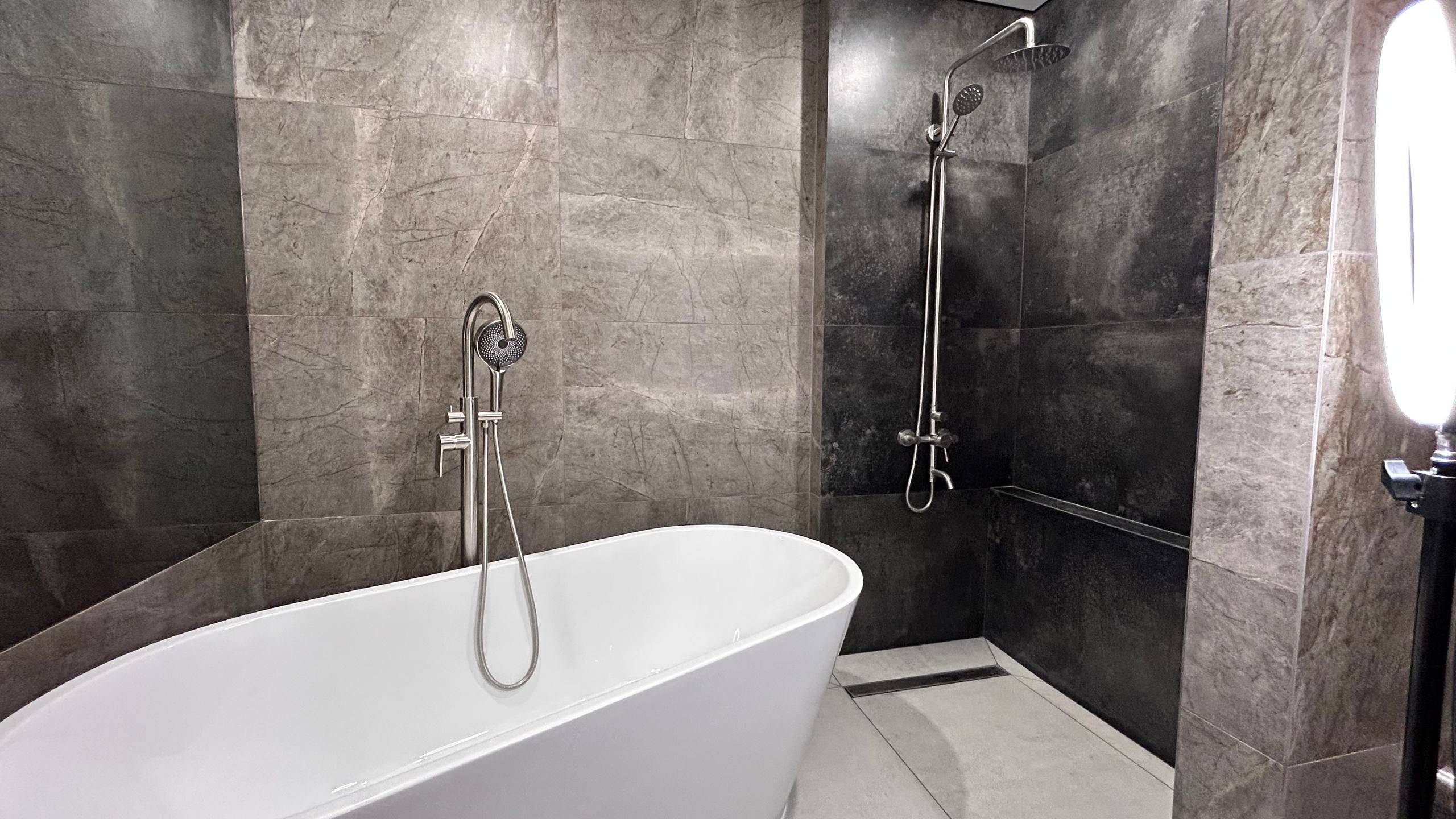 * 🛀 SPA-зона: Роскошная отдельностоящая ванна для атмосферных вечеров и современный душ с эффектом тропического дождя.