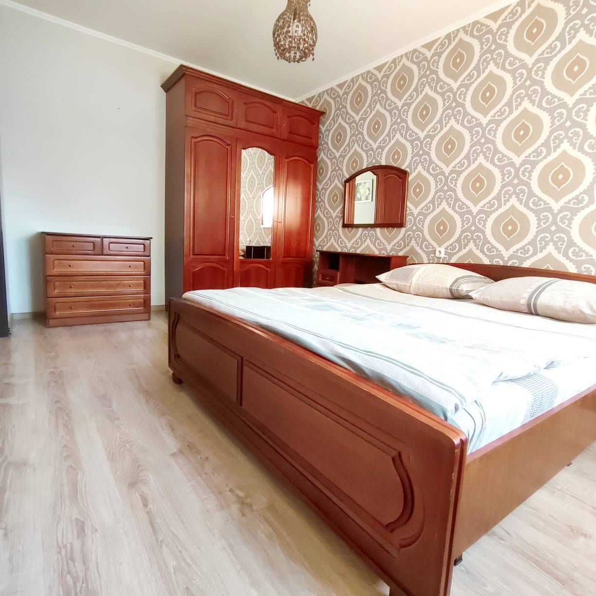 Может проживать до 4 человек. Спальные места 2+2 двухспальная кровать и двухспальный диван.