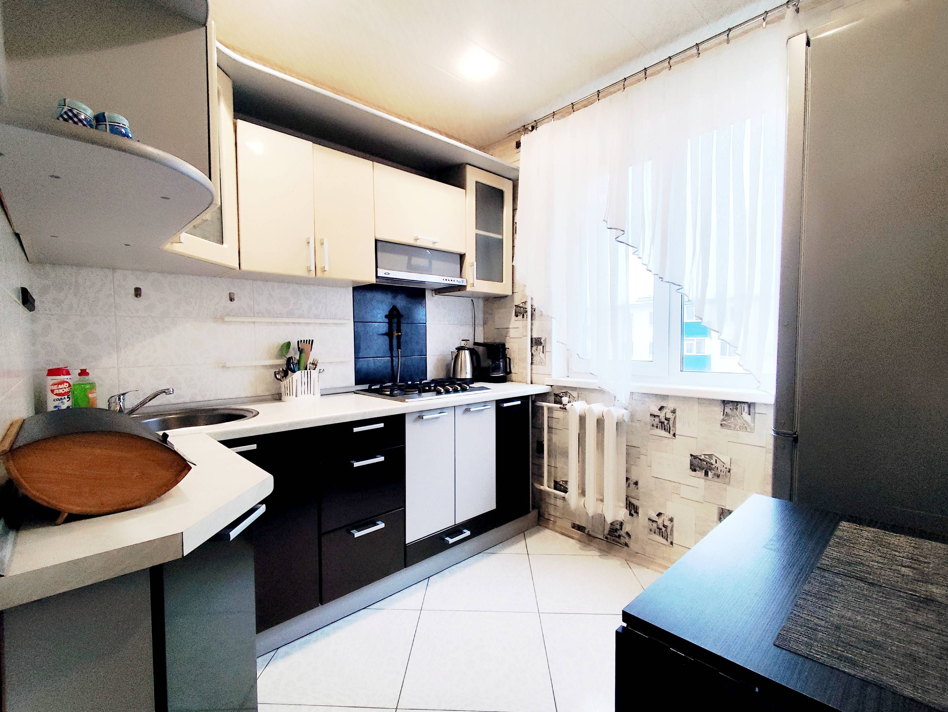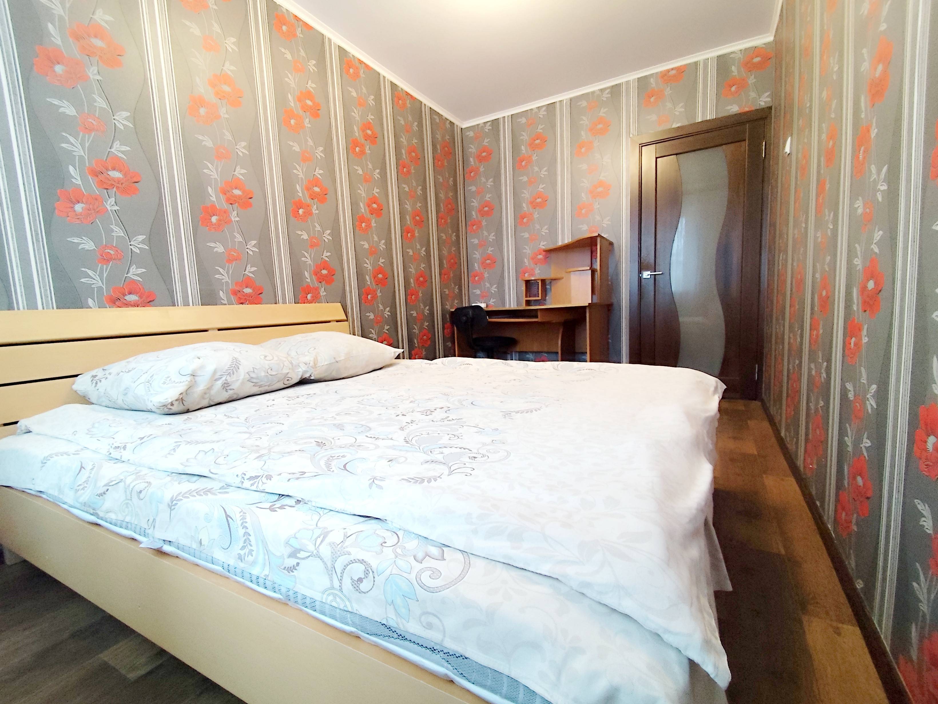 Квартира напротив ТЦ "Мандарин". Рядом с Администрацией Советского района г. Гомеля. Спальные места на 4 гостя: 2+2 - двухспальная кровать и двухспальный диван. Комнаты раздельные. Санузел совмещенный. Курение только на балконе. Есть письменный стол для работы. Квартира укомплектована всей необходимой техникой, посудой и постельными принадлежностями. Газовая варочная поверхность, стиральная машина, электрочайник, холодильник, СМАРТ телевизор, Wi-Fi, кабельное ТВ. Проведение видеосъемок, вечеринок и других мероприятий/праздников запрещено. Суточная стоимость от 100 руб., в зависимости от количества человек и срока проживания.
