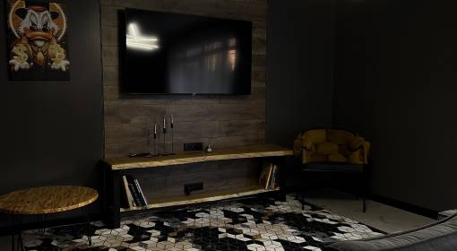 Попариться можно в бане с горячим паром. На участке имеются парковка на 5 машин, площадка для барбекю, мангал, газоны и красивые альпийские горки.