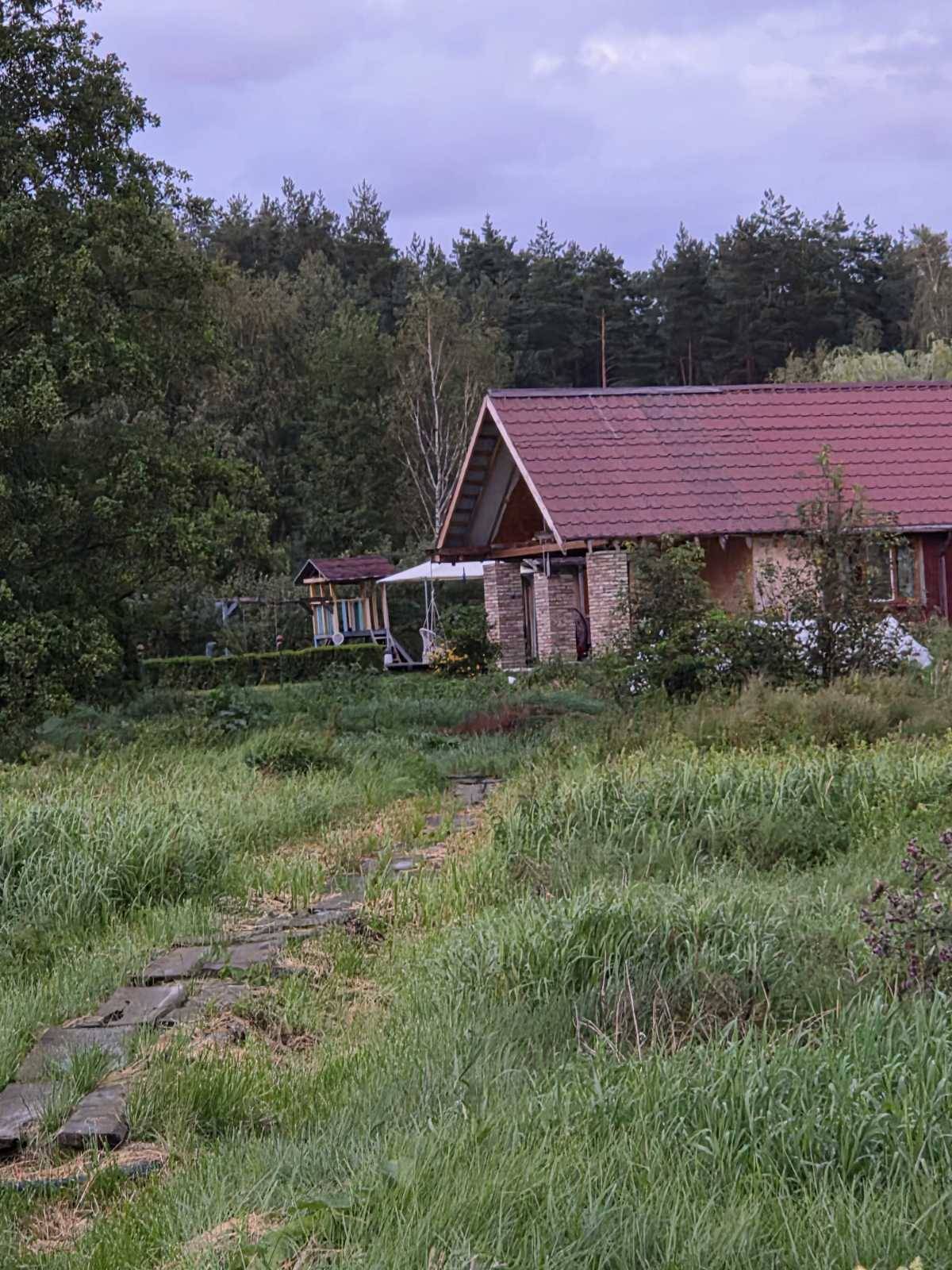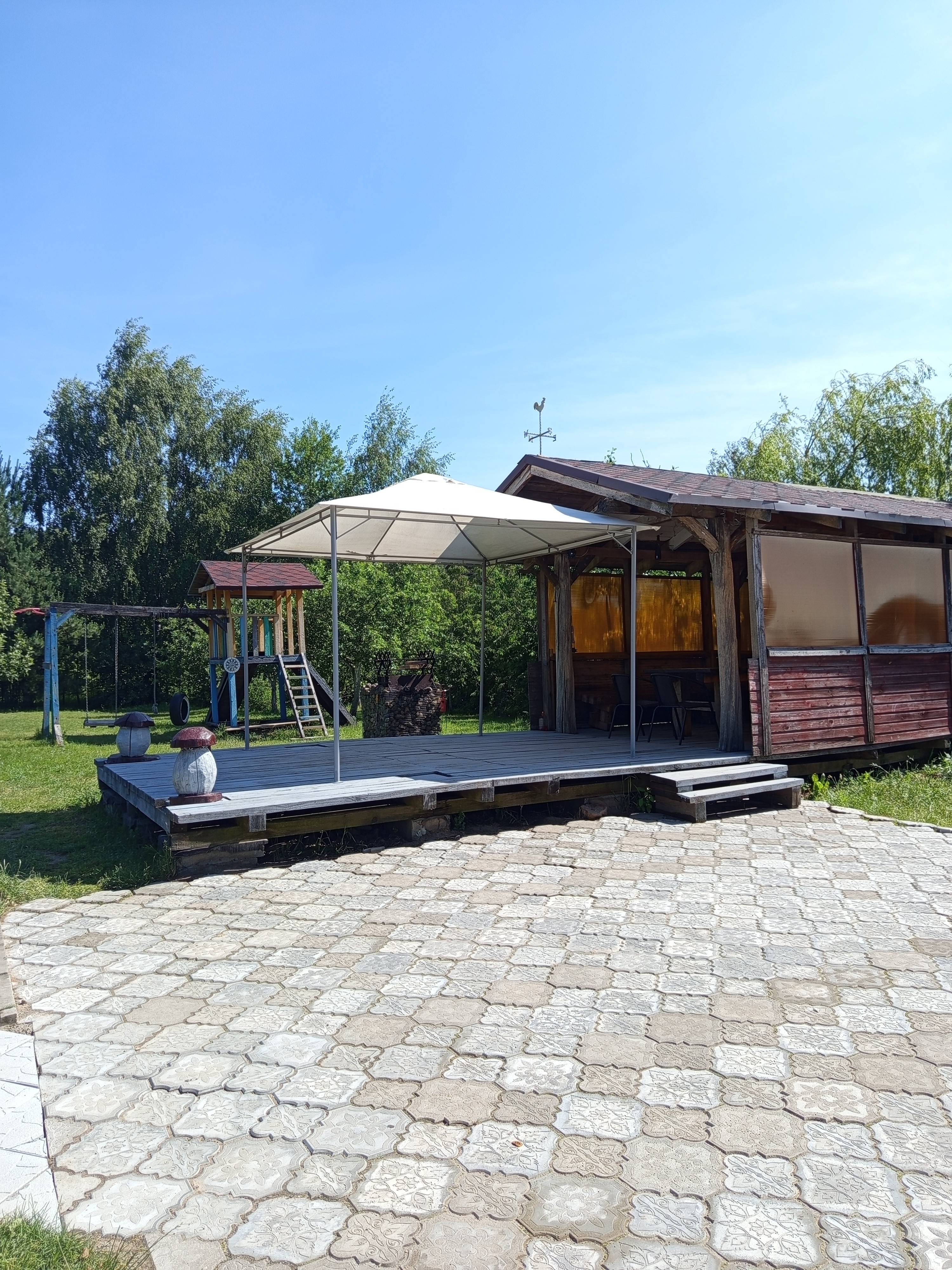 Домик с парилкой, банным чаном, беседкой, мангалом, детской площадкой. Рядом речка, лес, все для отдыха и проживания .
