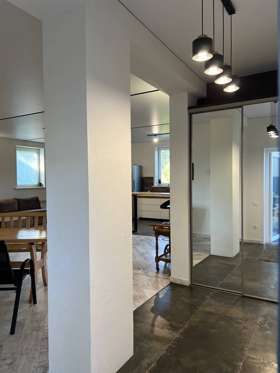 15 мин на авто до исторического центра Гродно. Уникальность дома - это близость оз. Юбилейного с красивыми пляжами и набережными. В доме два этажа с 3 - мя закрытыми спальными комнатами. Каминная комната также может использоваться , как доп спальня .Вся мебель в доме новая. Вместимость до 10 чел. Два санузла и две душевые. Баня оплачивается отдельно. Гибкая система скидок.
