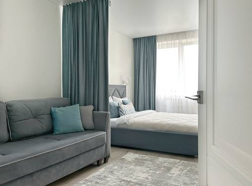 Интерьер квартиры продуман до мелочей, чтобы создать атмосферу уюта и релакса. В квартире новый ремонт, есть всё необходимое для проживания: полностью оборудованная кухня, где вы сможете приготовить завтраки/ужины, уютная спальня-гостиная, комфортный санузел с душевой кабиной, высококачественно постельное белье и полотенца; высокоскоростной Wi-Fi; Smart TV с множеством каналов.