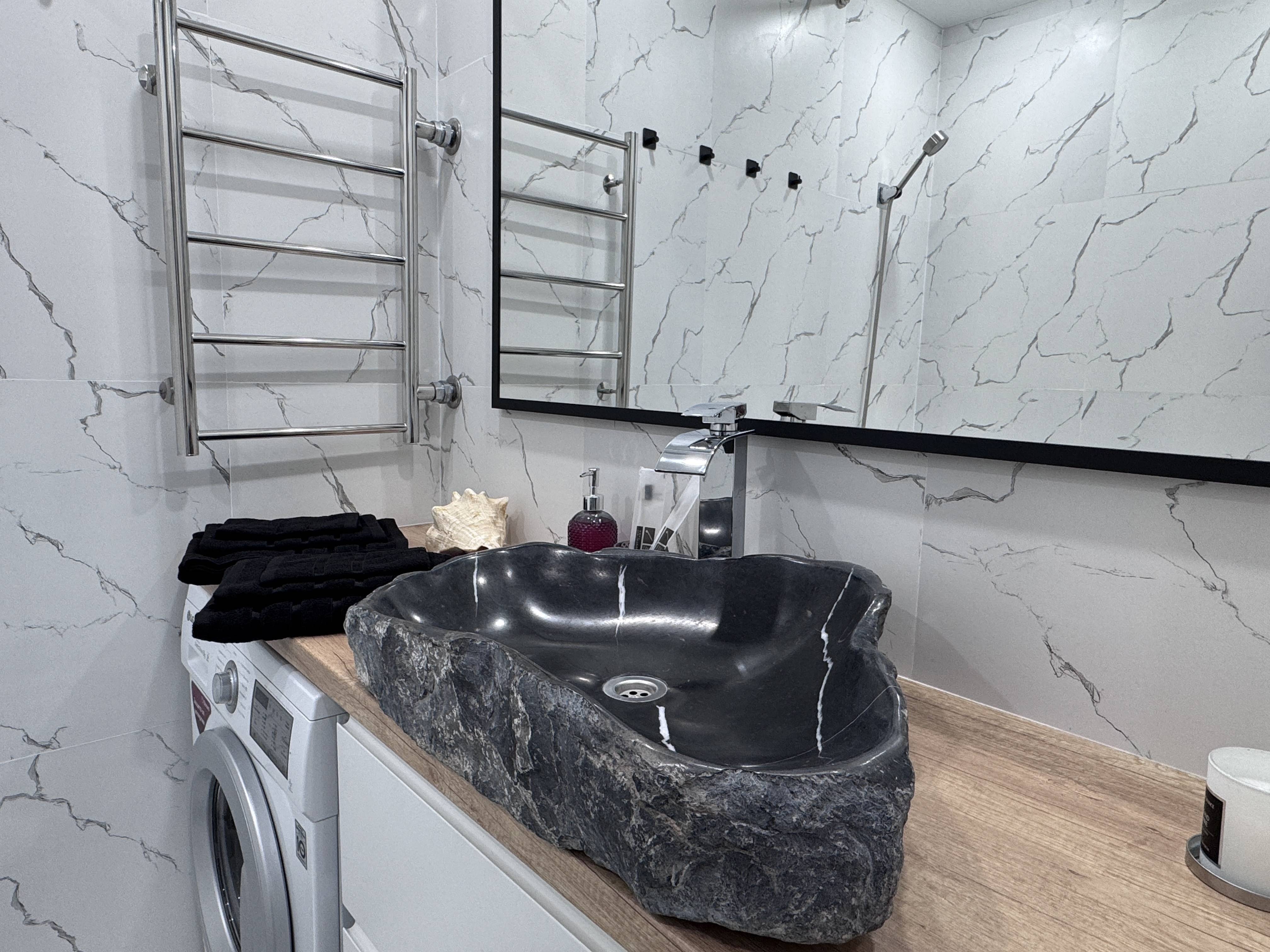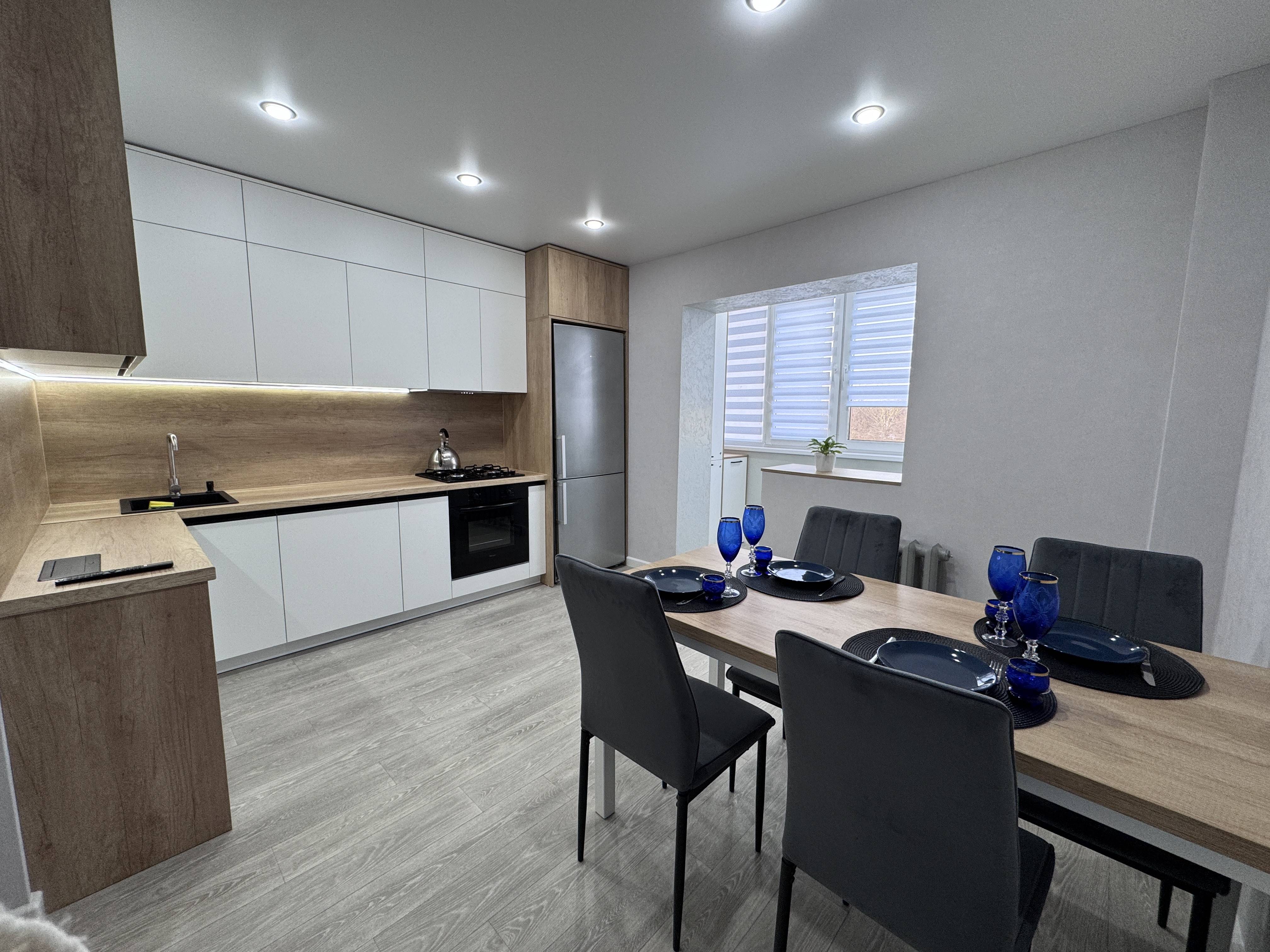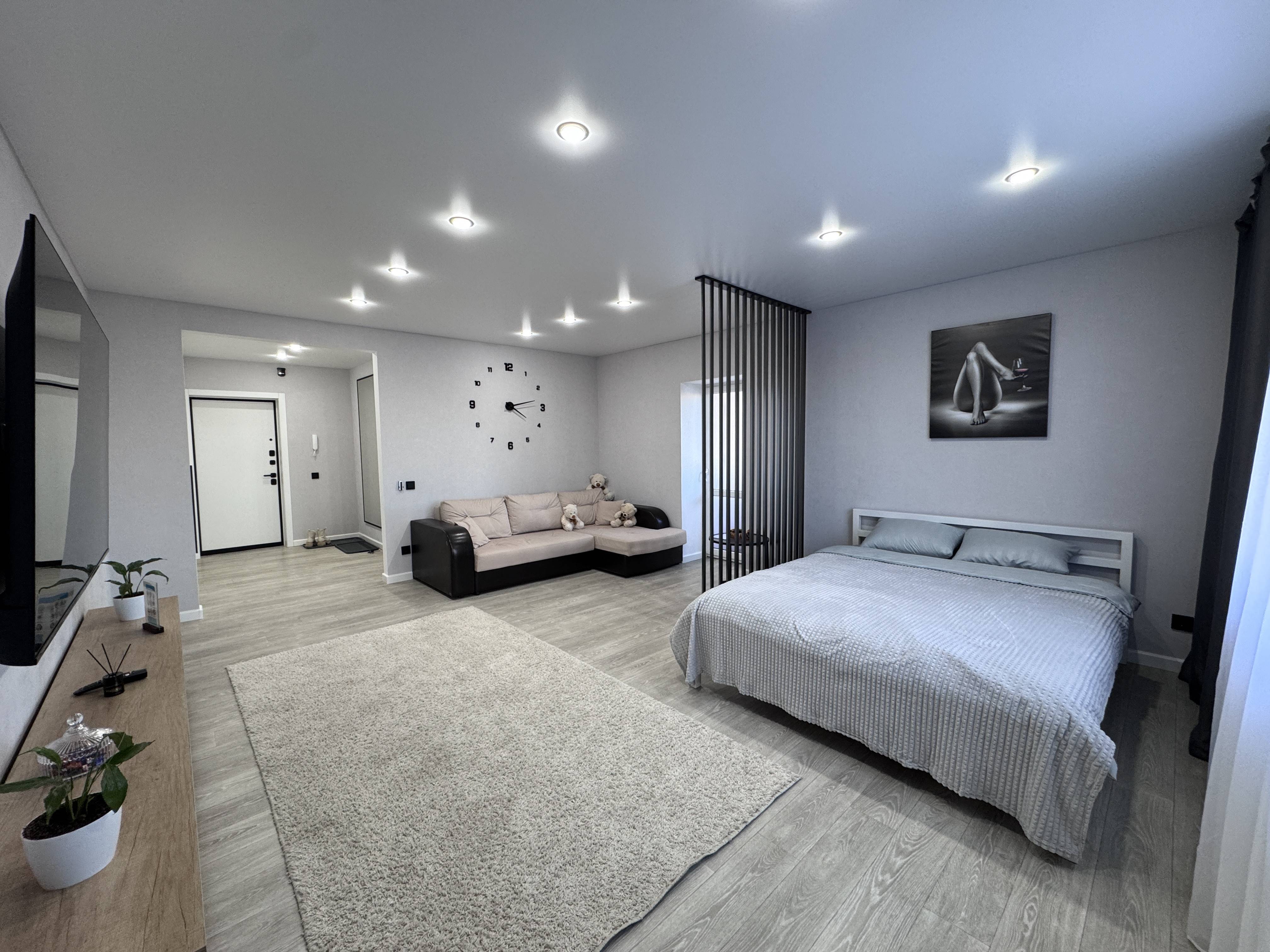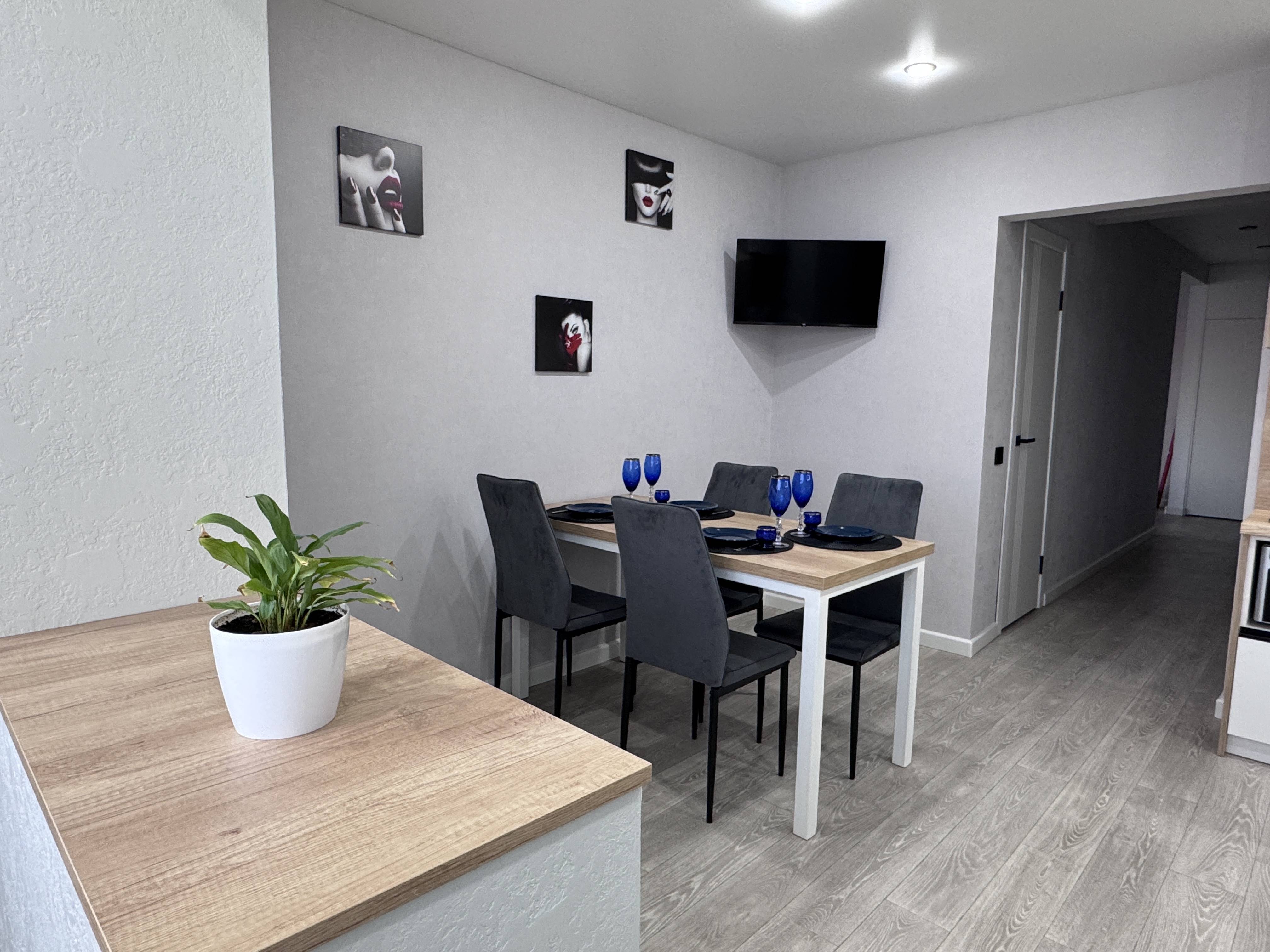 Уютная квартира с новым ремонтом в 6-10 минутах езды от центра города. Здесь есть все что необходимо для комфортного проживания: современная техника и мебель, комплекты постельного белья, полотенец и зубные щетки, также средства для волос и тела,маски для лица, фен, утюжок, кухня оснащена всей необходимой техникой. Возле дома есть две парковки, напротив большой торговый центр с развлекательным центром и множеством магазинов на любой вкус и кошелек! Недалеко красивый парк для прогулок и отдыха.