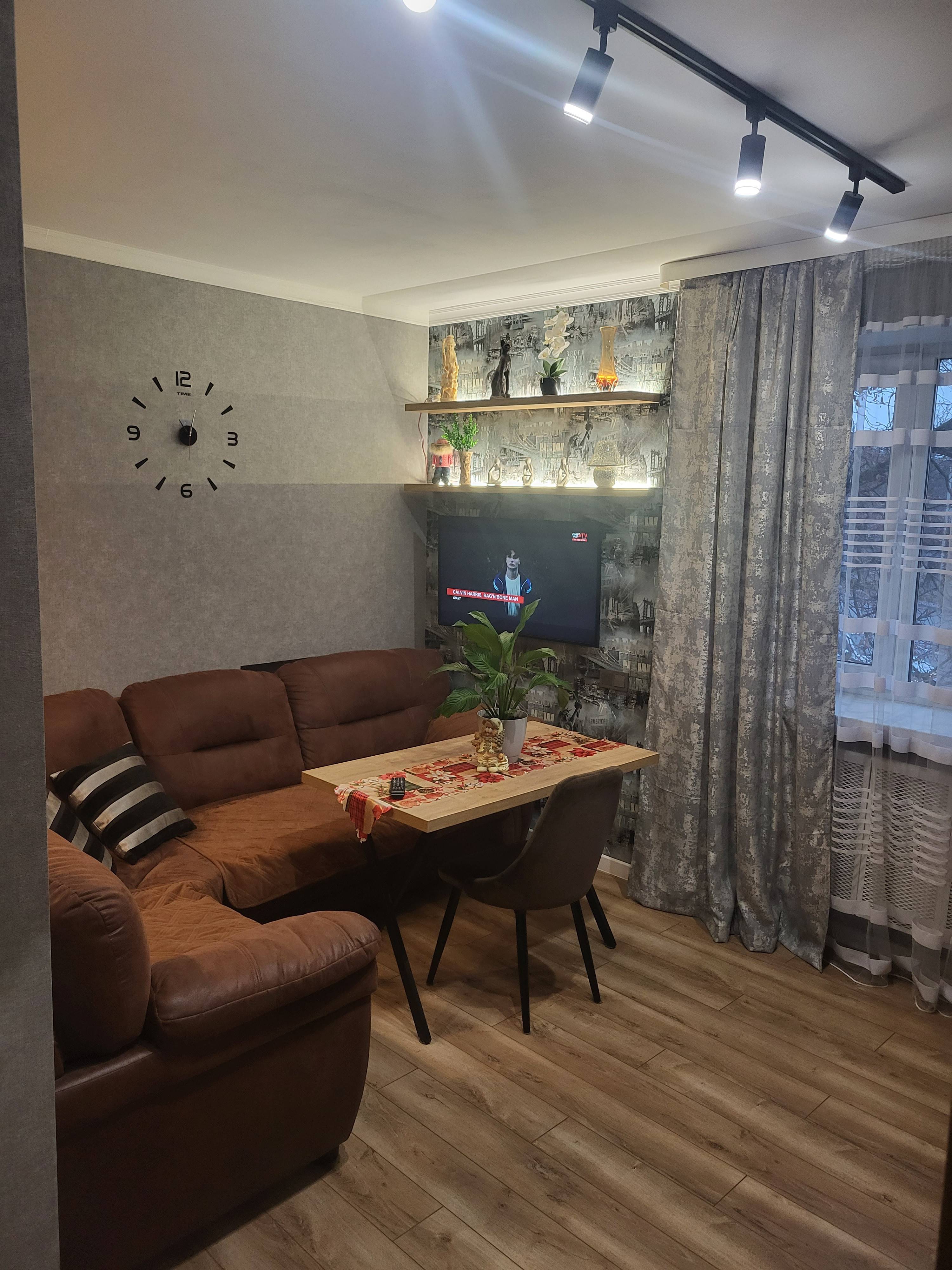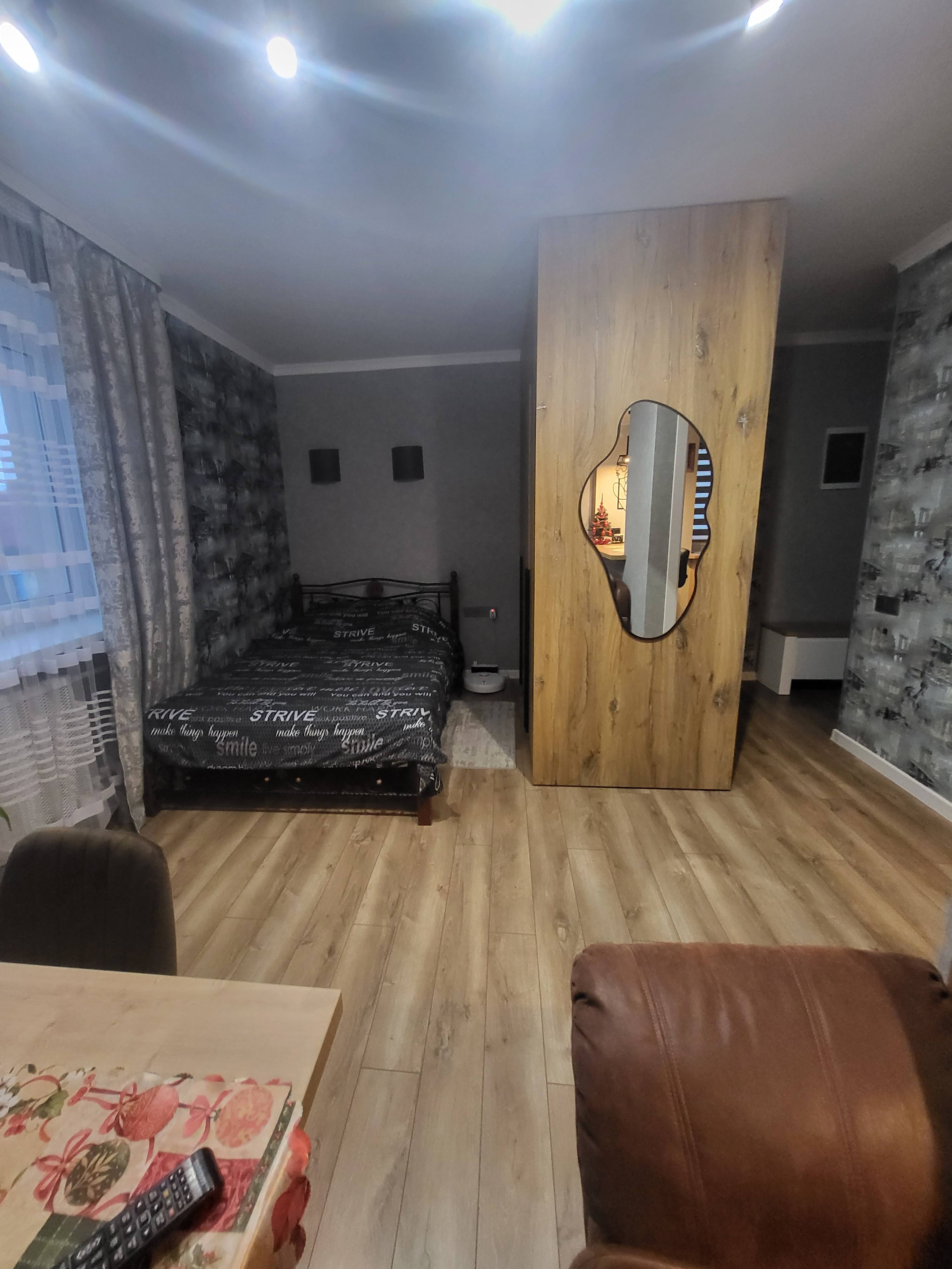 Квартира однокомнатная оборудована всем необходимым для комфортного проживания: кровать двуспальная 140*200 и угловой раскладывающийся диван. Курение и приём дополнительных гостей, не указанных в заявке, запрещено. Заселение в 15ч, выезд в 13ч.