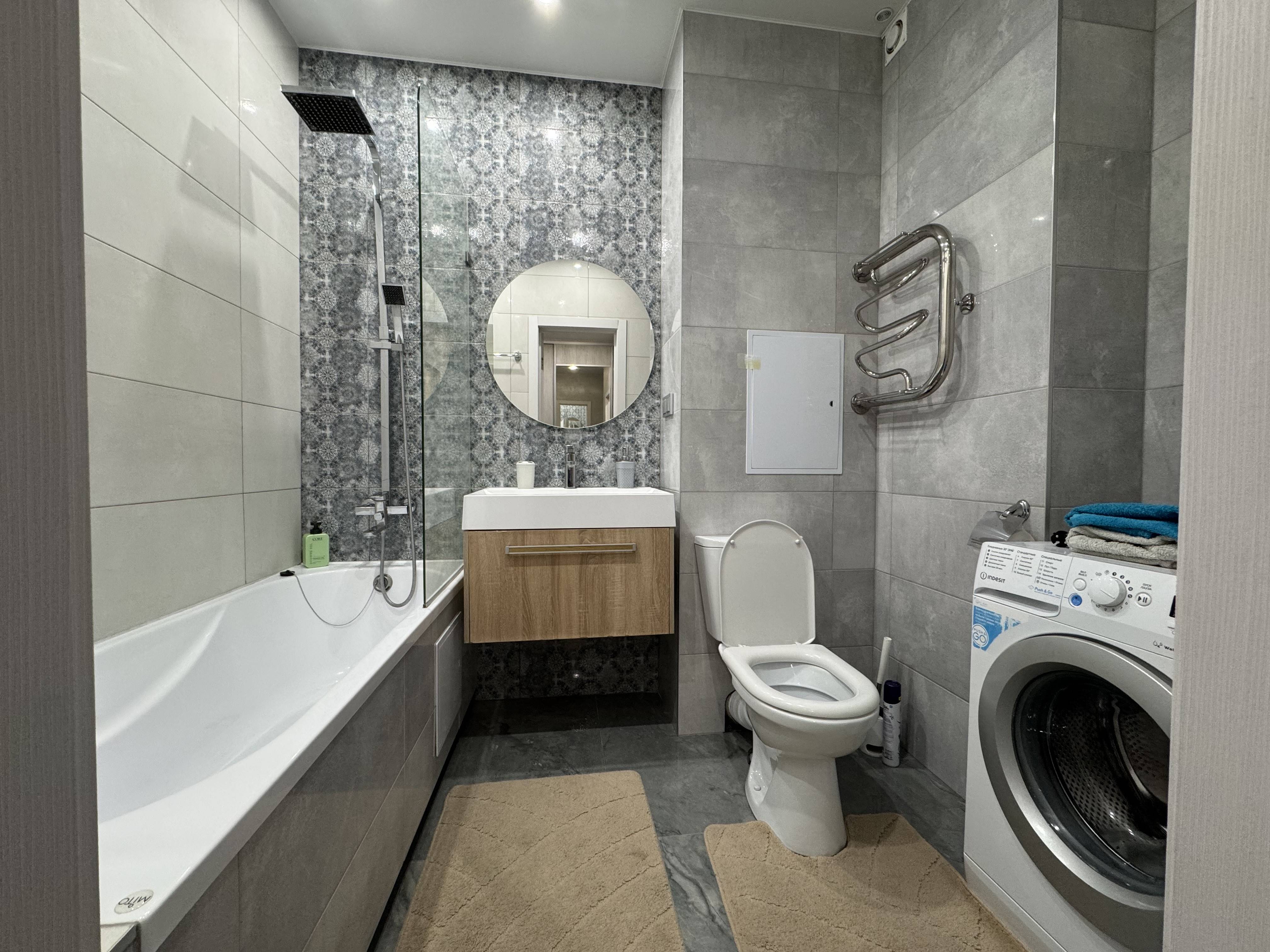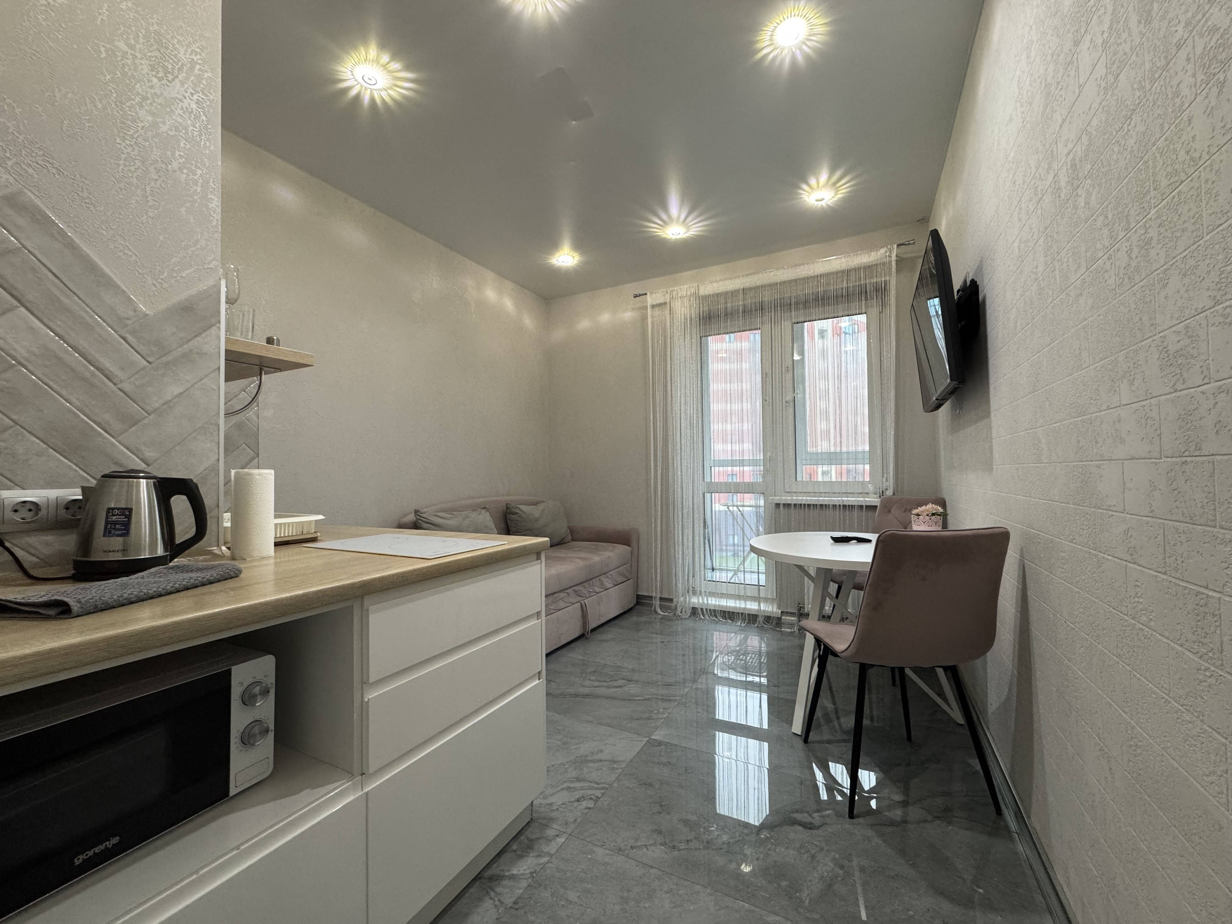 Рядом с домом есть автозаправка и магазины. В квартире есть все необходимое для комфортного проживания: комплект полотенец, фен, гель для. душа, жидкое мыло, комплект постельного белья, вся необходимая посуда, микроволновая печь, холодильник, индукционная плита, ванна, большой шкаф-командор, есть разъемы для интернета (подключение ноутбука по Ethernet), 2 телевизора (диагональ 55 и 43) со смартом в каждой комнате (телевидение работает по приложениям IVI, Zala), беспроводной интернет. Красивый панорамный балкон, где можно уютно выпить утром чашечку кофе и подумать о приятном. Размещение гостей в квартире возможно по системе 2+2.+2. Командировочным предоставляются все отчетные документы.