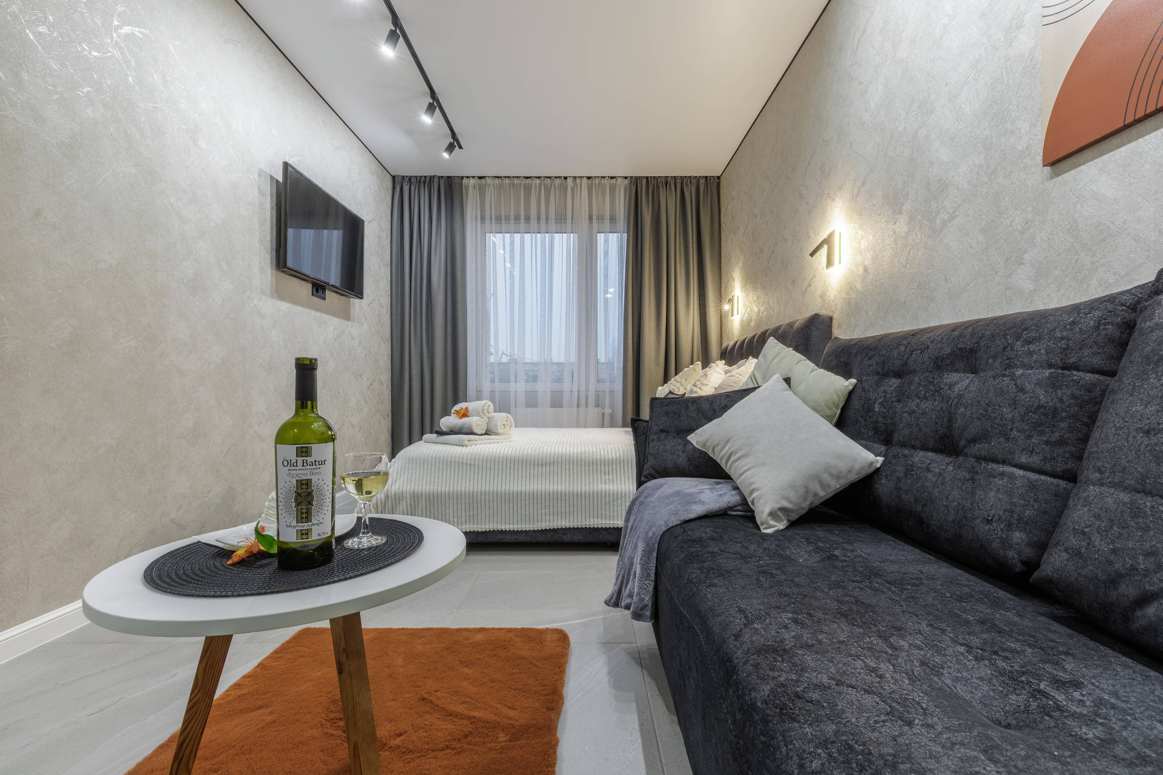 Изюминка этих апартаментов - выход на собственную террасу с балкона , на которой можно проводить вечера за чашечкой кофе , читая любимый роман. На паркинге имеется собственное место для автомобиля . В апартаментах высокие потолки, которые добавляют пространству дополнительный комфорт, свет и легкость.