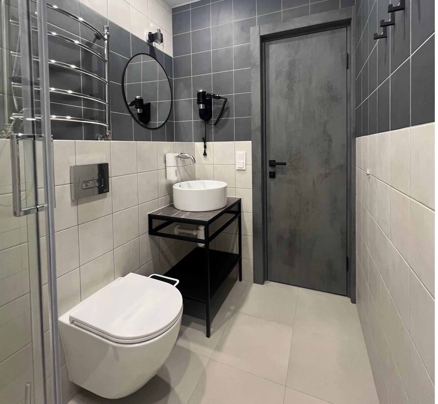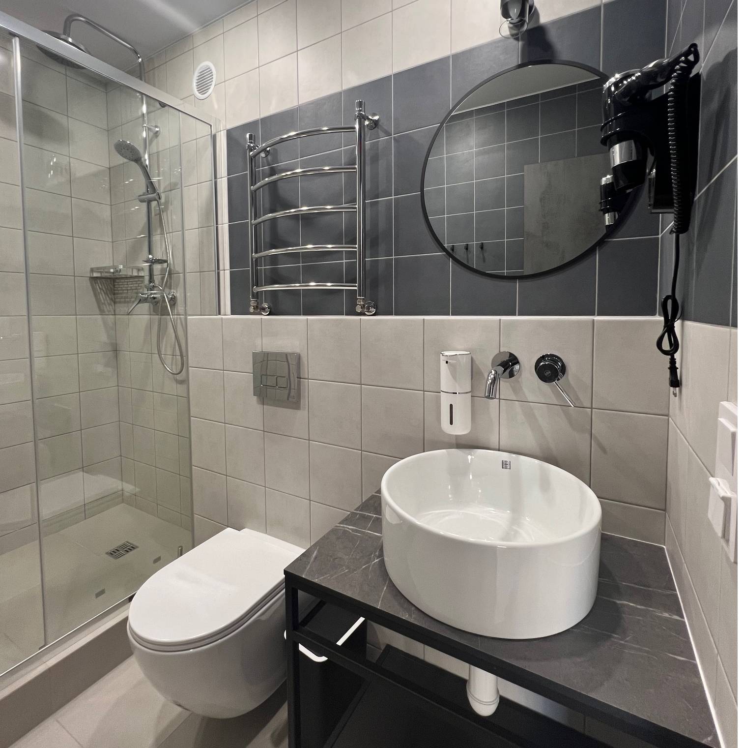 Собственная ванная: душ, фен, набор гигиены, мягкие полотенца и свежее белье.