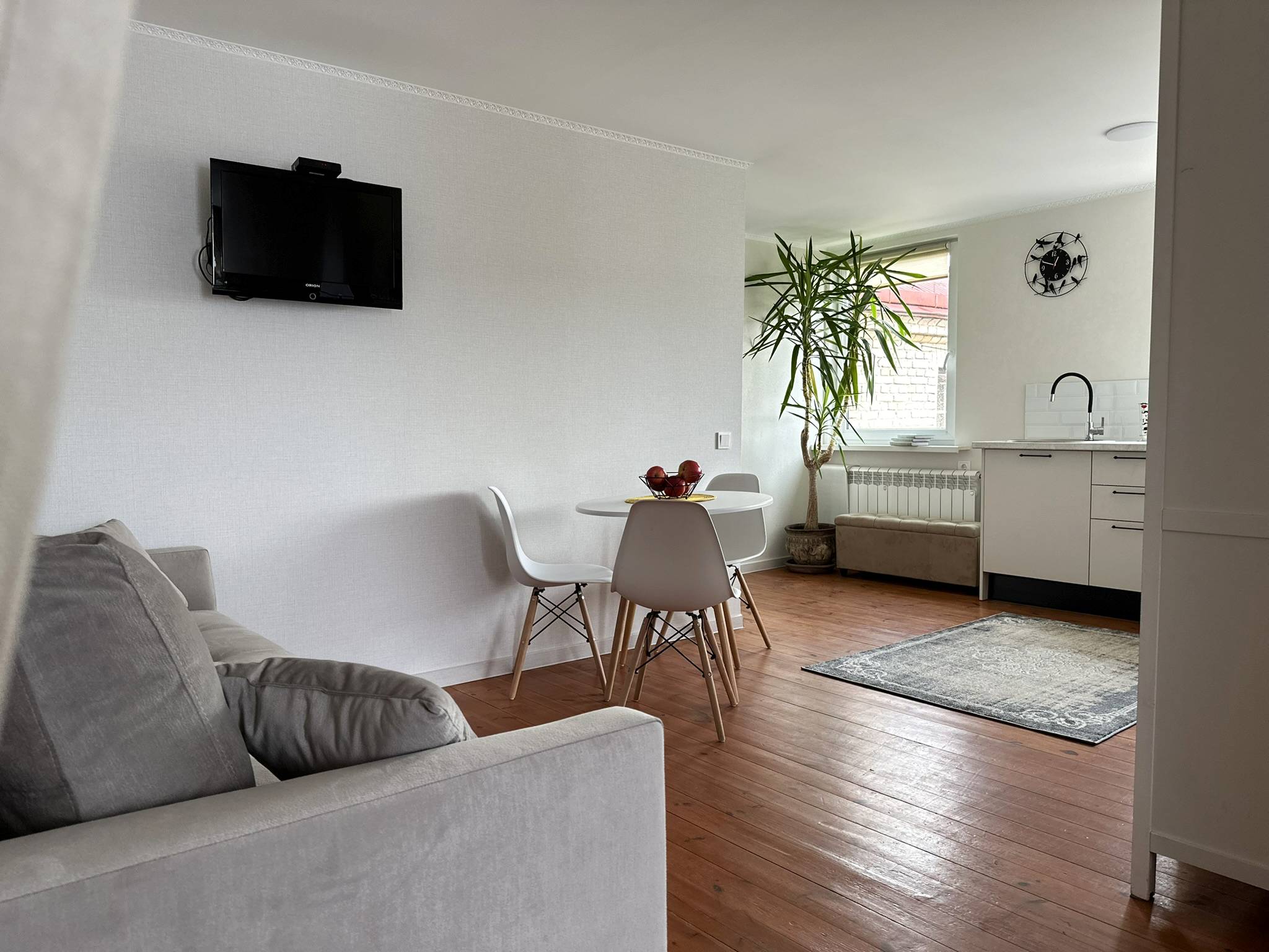 В апартаментах находится все необходимое для Вашего комфортного отдыха: удобная кровать, уютный диван, телевизор и интернет. Кухня полностью оборудована для приготовления пищи.