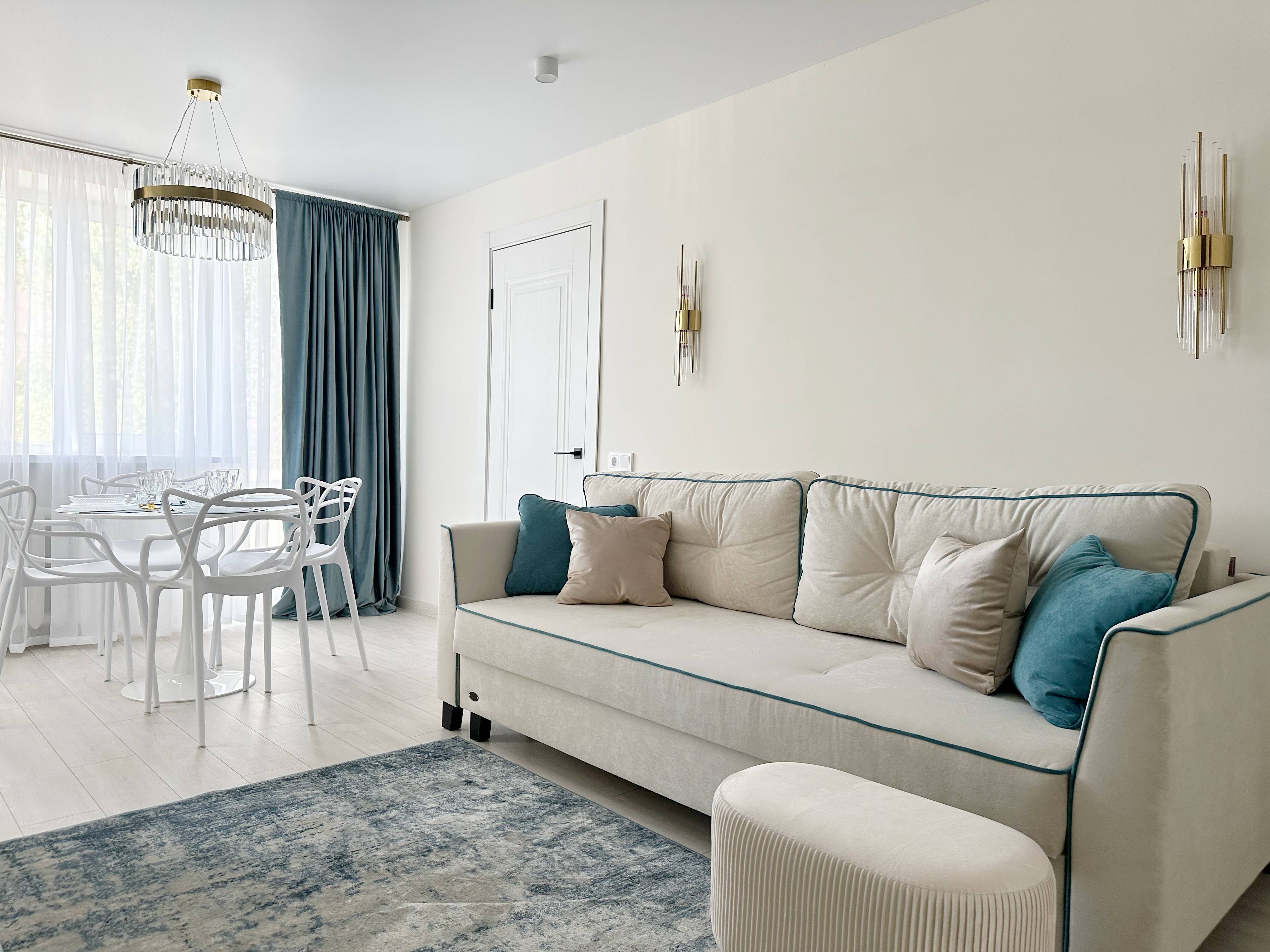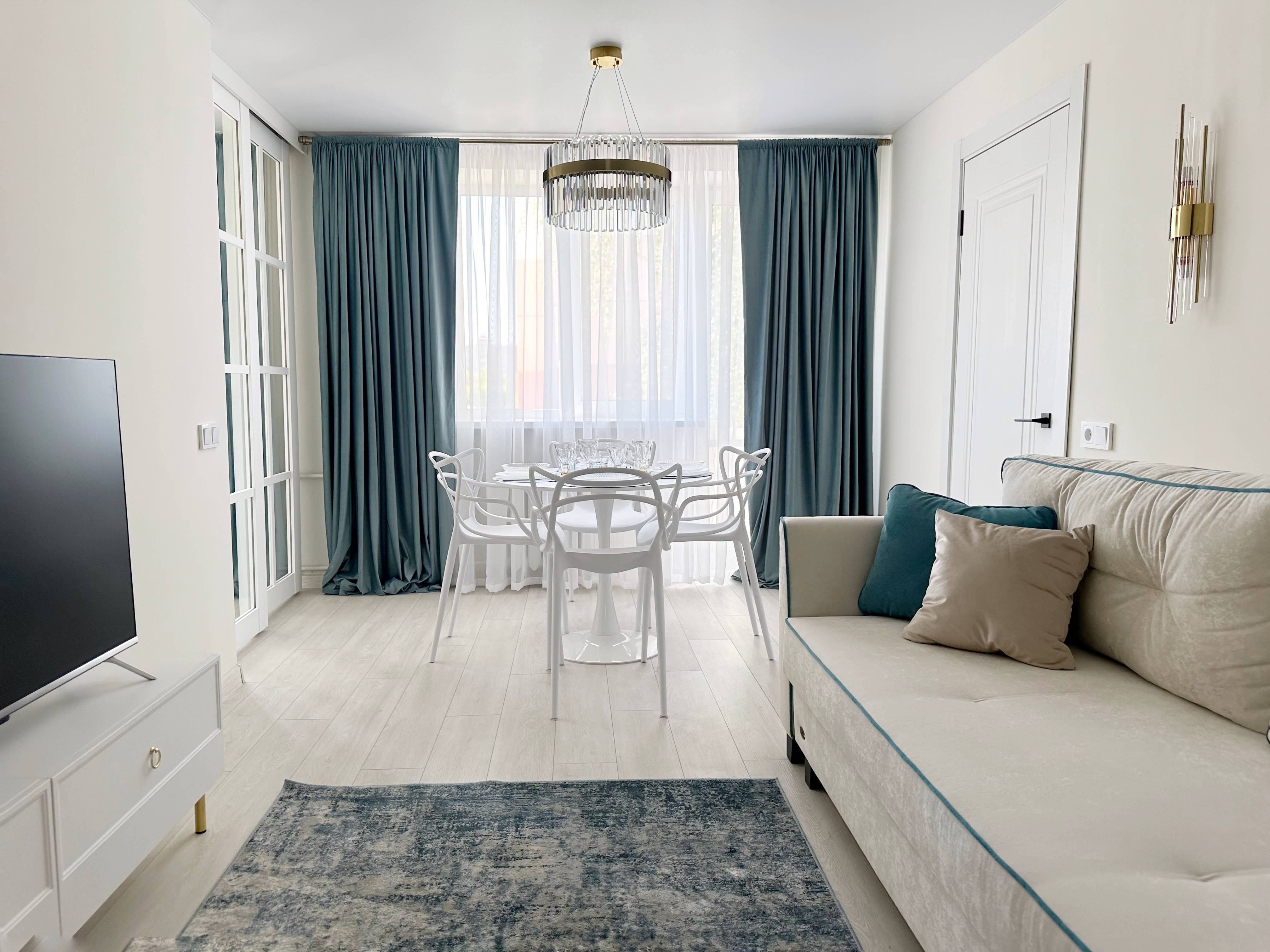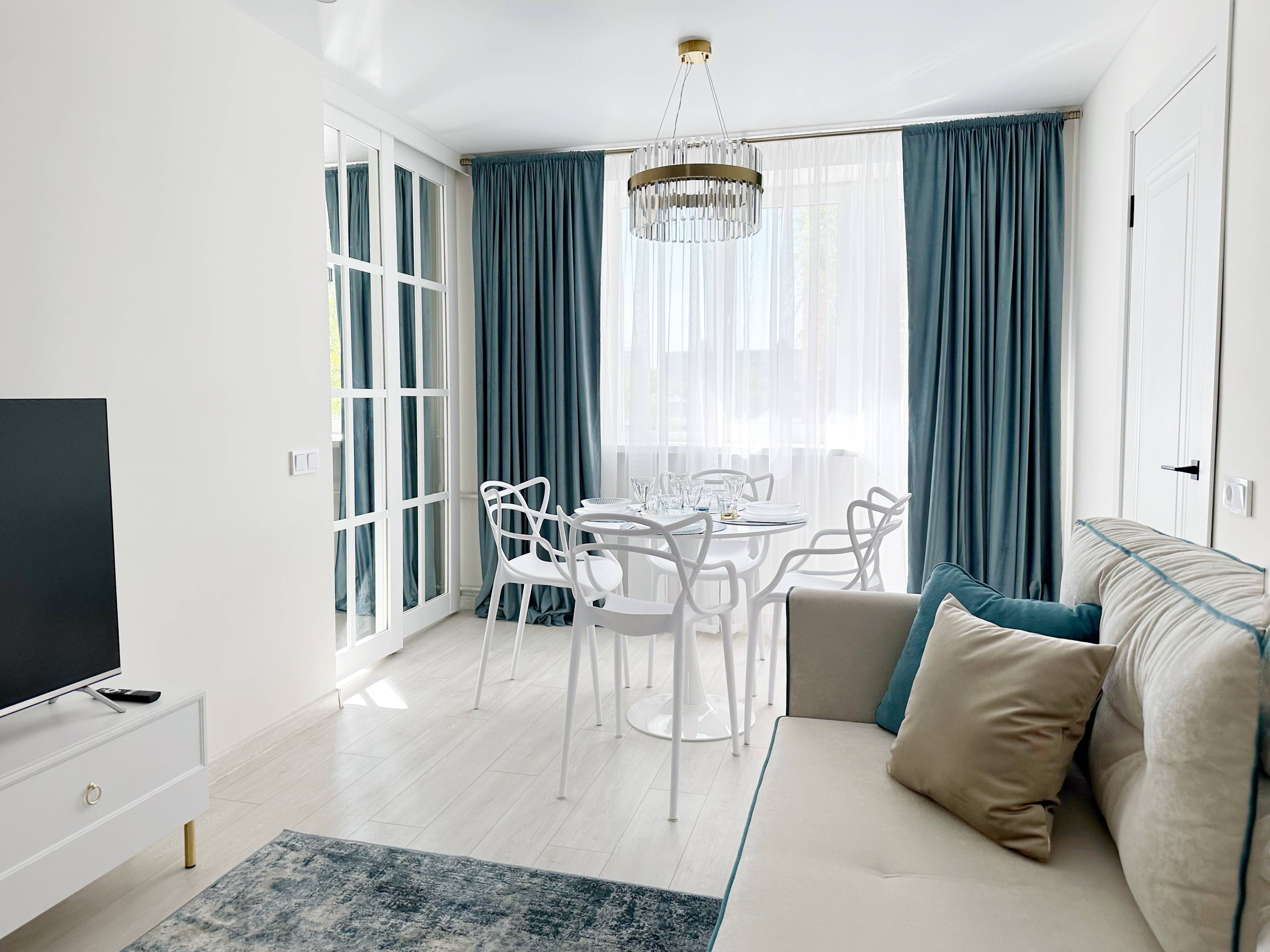 Интерьер квартиры продуман до мелочей, чтобы создать атмосферу уюта и релакса. В квартире новый ремонт, есть всё необходимое для проживания: полностью оборудованная кухня, где вы сможете приготовить завтраки/ужины и насладиться чашечкой чая за барной стойкой у окна, уютная гостиная- столовая, где можно собраться семьей за круглым столом или посмотреть большой ТV, комфортная спальня с кроватью и туалетным столиком, санузел с ванной. В квартире 2 спальных места: 2х спальная кровать и двуспальный диван-кровать с ортопедическим основанием. Горячее водоснабжение круглогодичное (газовый водонагреватель Aniston 2025 г.).