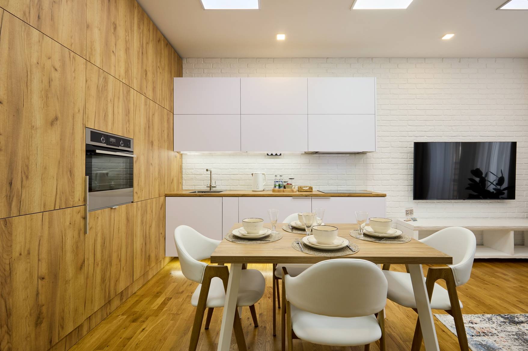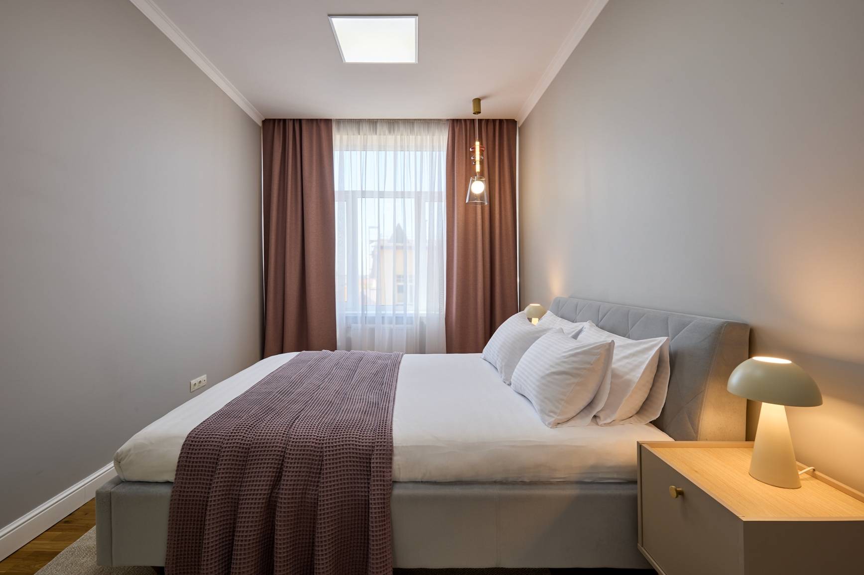 В квартире есть всё необходимое для комфортного проживания шести человек. В Вашем распоряжении две оборудованные спальные комнаты и гостиная с большим раскладывающимся диваном. Полностью укомплектованная кухня: чайник, холодильник, свч, посудомоечная машина, варочная панель и духовой шкаф, набор столовых приборов и посуды. В ванной комнате: средства гигиены, стиральная и сушильная машины, фен.