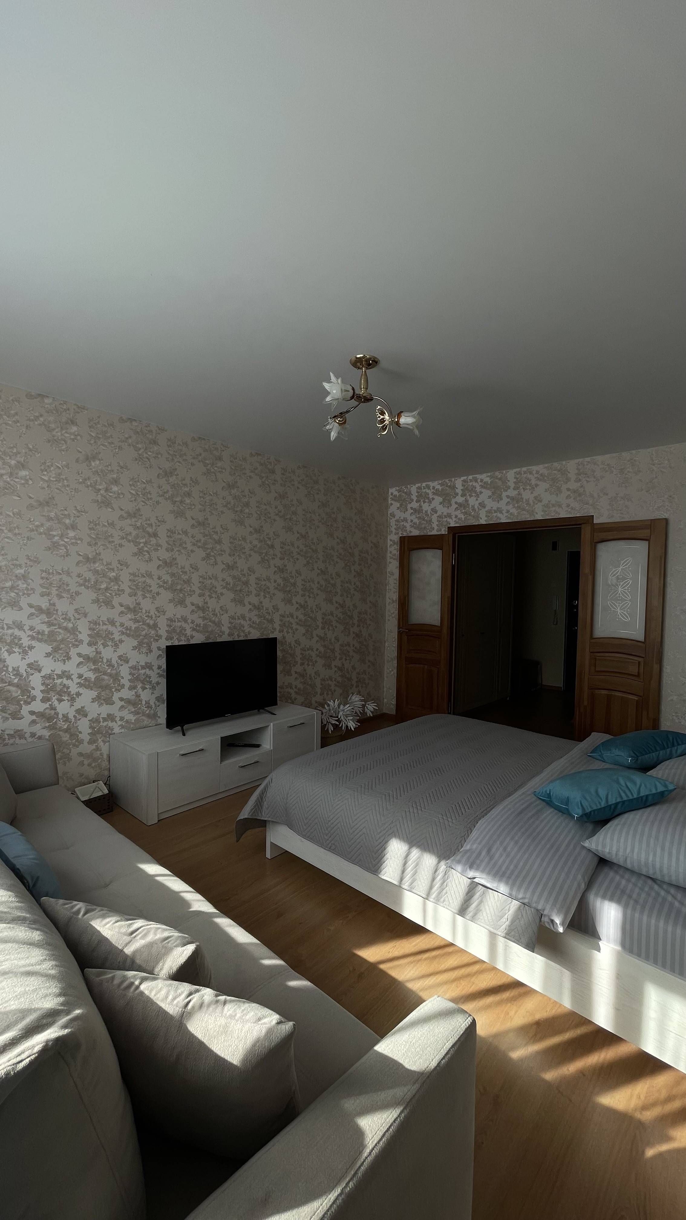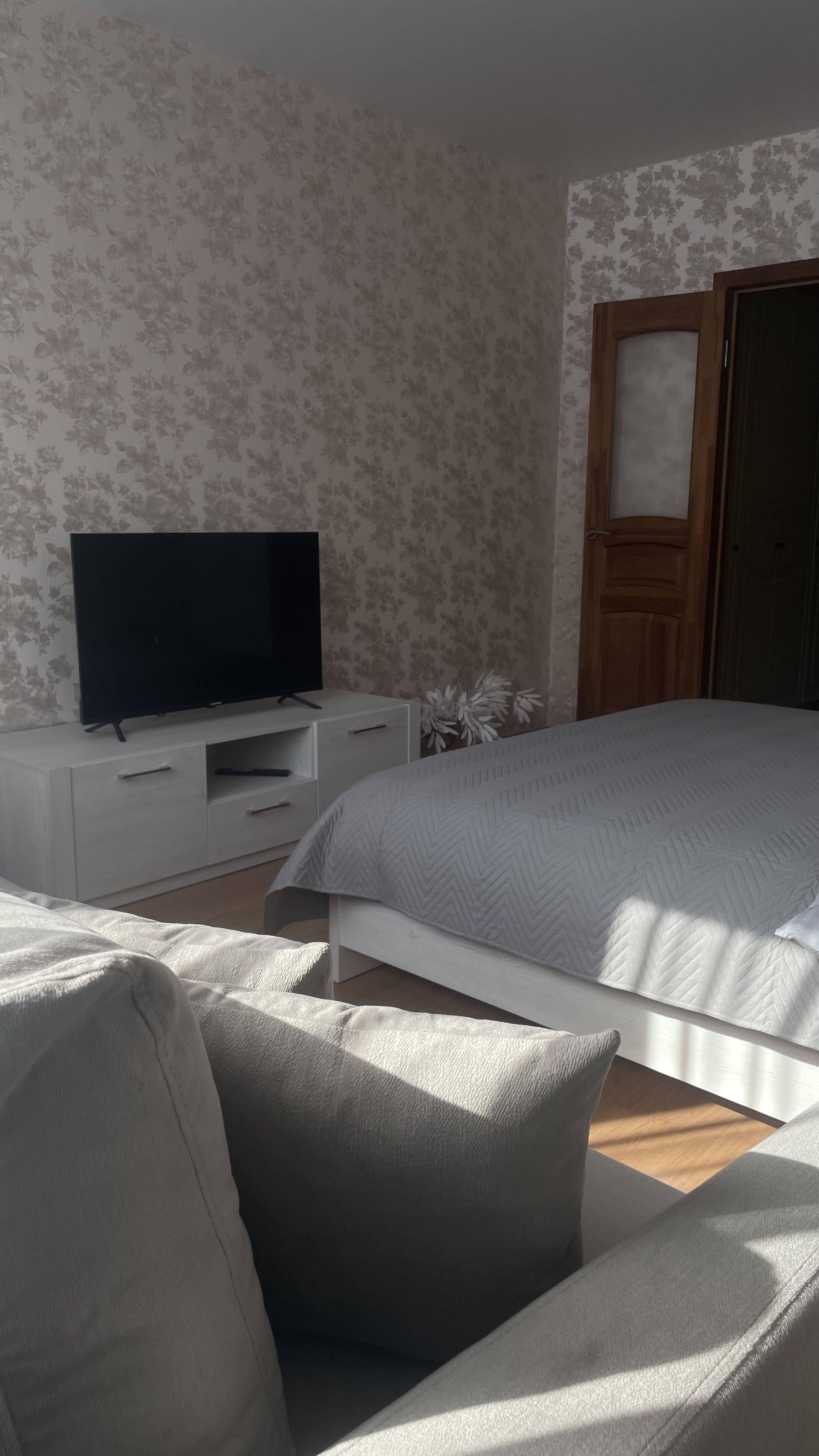 Квартира обустроена таким образом, чтобы Ваше пребывание было максимально комфортным: двуспальная большая кровать и раскладной двуспальный диван-кровать (раздельное дополнительное двуспальное место для одного гостя предоставляются по договорённости, за дополнительную плату), телевизор смарт тв, кабельное, скоростной Wi-Fi.