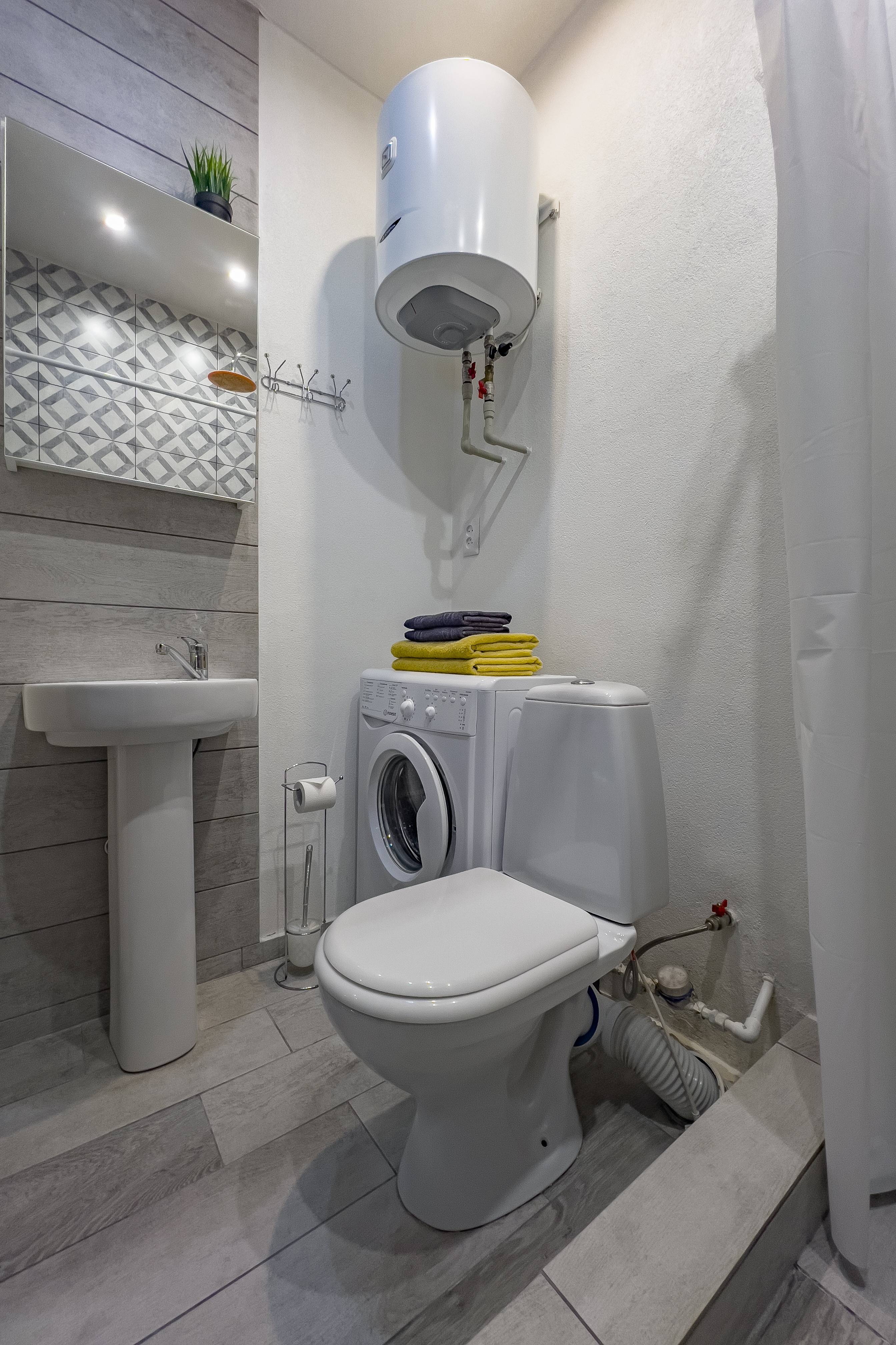 Душевая кабина, гладильная доска, сушка, утюг, гель для душа, шампунь, средства для стирки и мытья посуды, комплект полотенец , постельное бельё (входит в стоимость проживания).