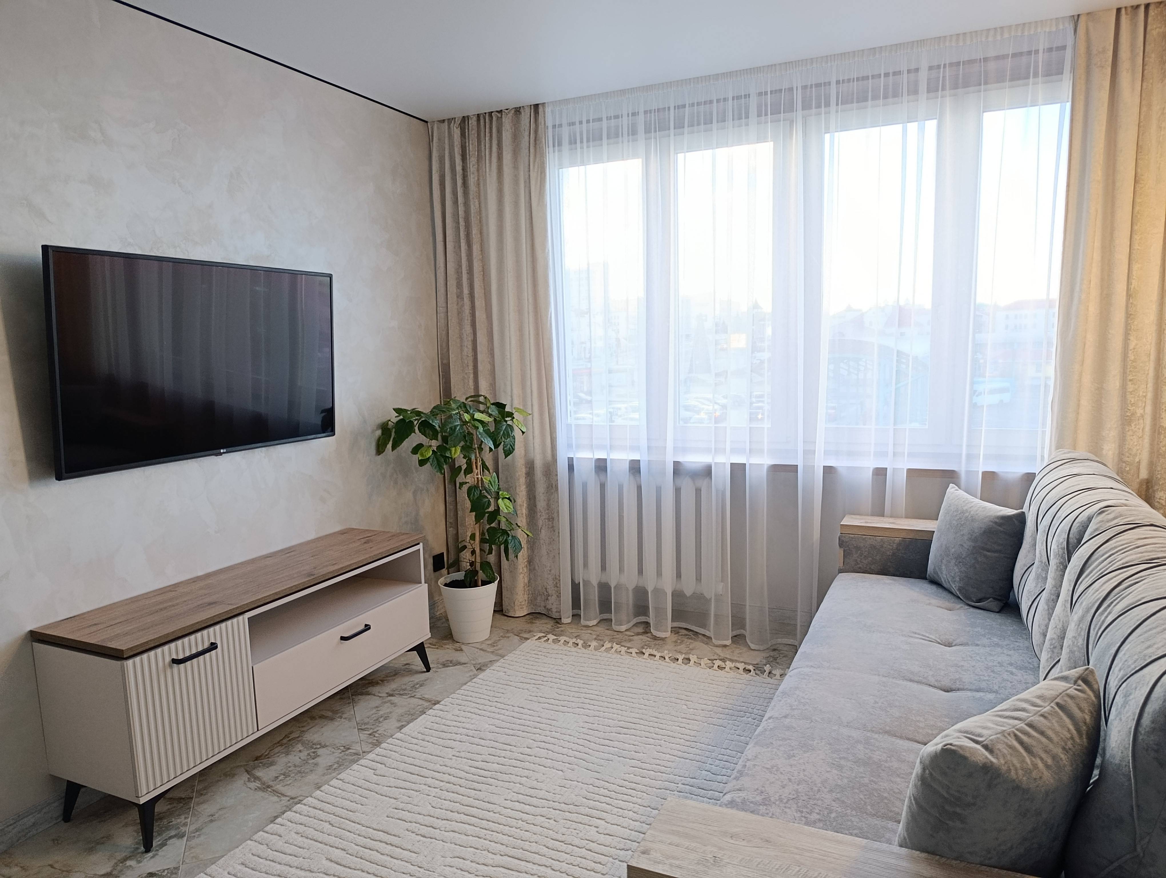 Сдается современная 2-комнатная квартира на сутки . Расположена в центре Гродно. В квартире есть всё для комфортного проживания: чистая выглаженная белоснежная постель, полотенца, посуда, бытовая техника (большой ЖК-телевизор SMART-TV, WI-FI, холодильник, СВЧ-печь, утюг, фен, стиральная машина). Отличное расположение дома. Рядом находится авто и ЖД вокзал, остановка общественного транспорта в любой конец города, продуктовые магазины. Цена зависит от количества людей и дней проживания.