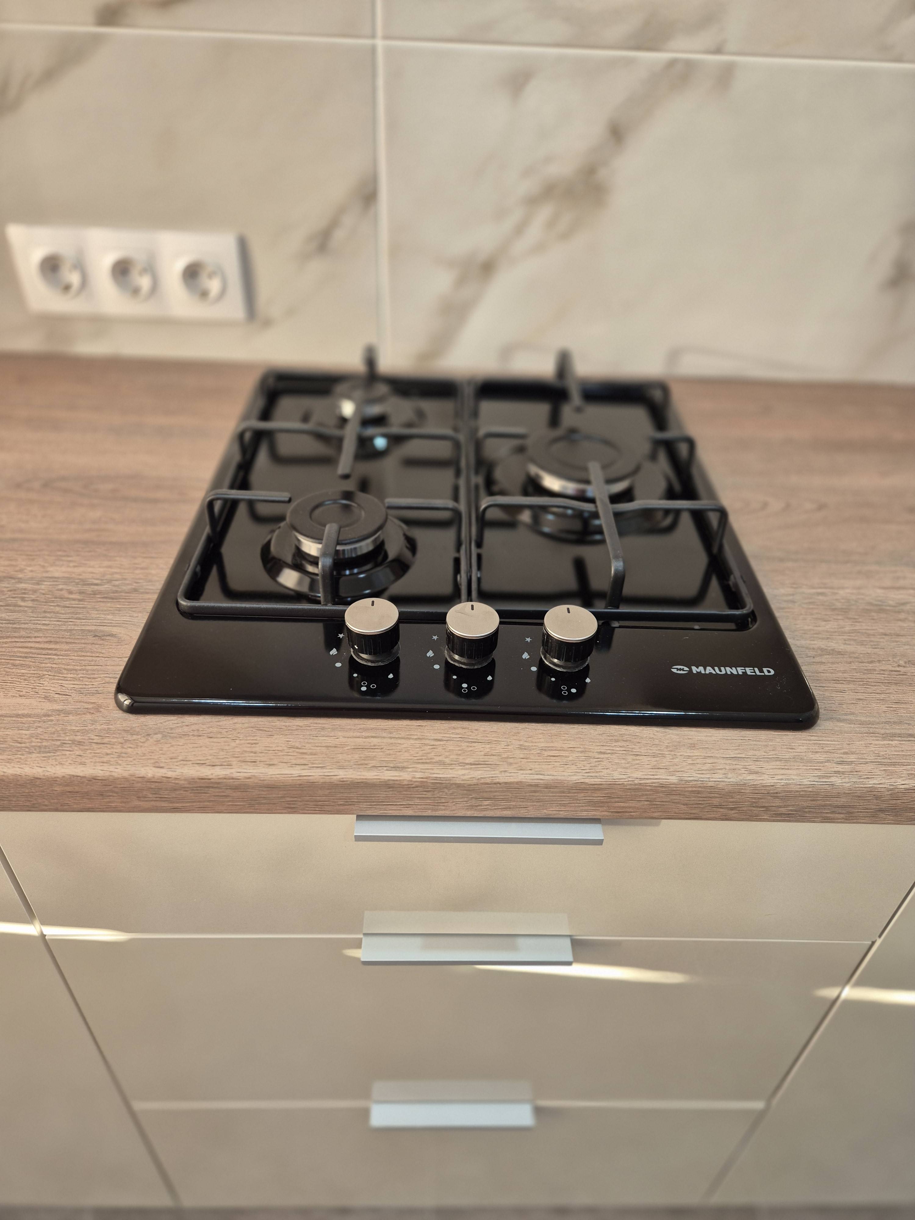 Кухня оборудована: газовая плита, холодильник, свч-печь, электрический чайник, посуда для приготовления и сервировки. В наличии чай, кофе, сахар, соль.