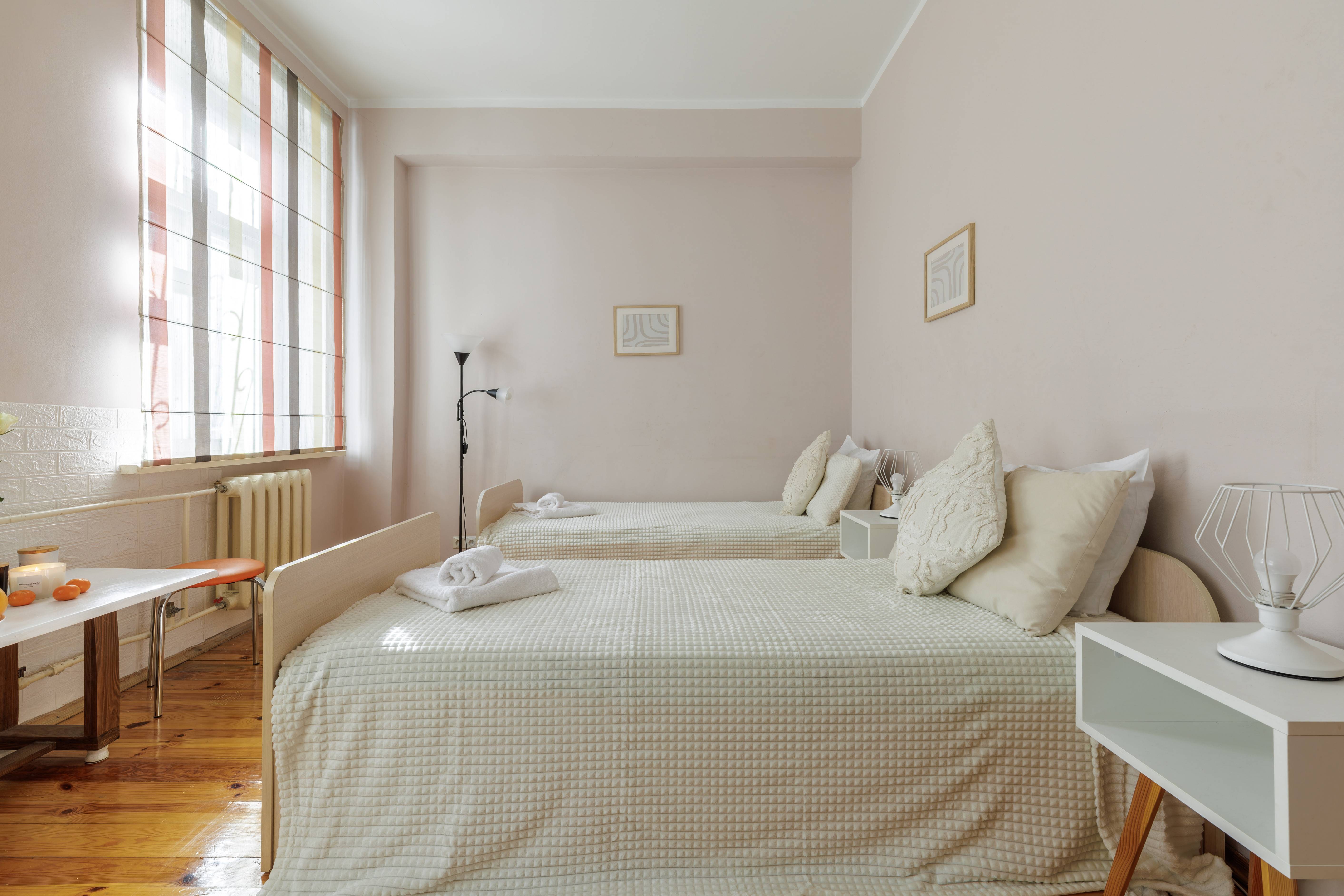 Квартира расположена в исторической части Гродно, в самом центре города. Большая площадь квартиры , просторные комнаты, высокие потолки не оставят вас равнодушными. Месторасположение дома удобно для туристов и гостей города. Рядом находится много кафе, ресторанов, закусочных, главная пешеходная улица города. В 5-10 минутах ходьбы находятся оба вокзала города.