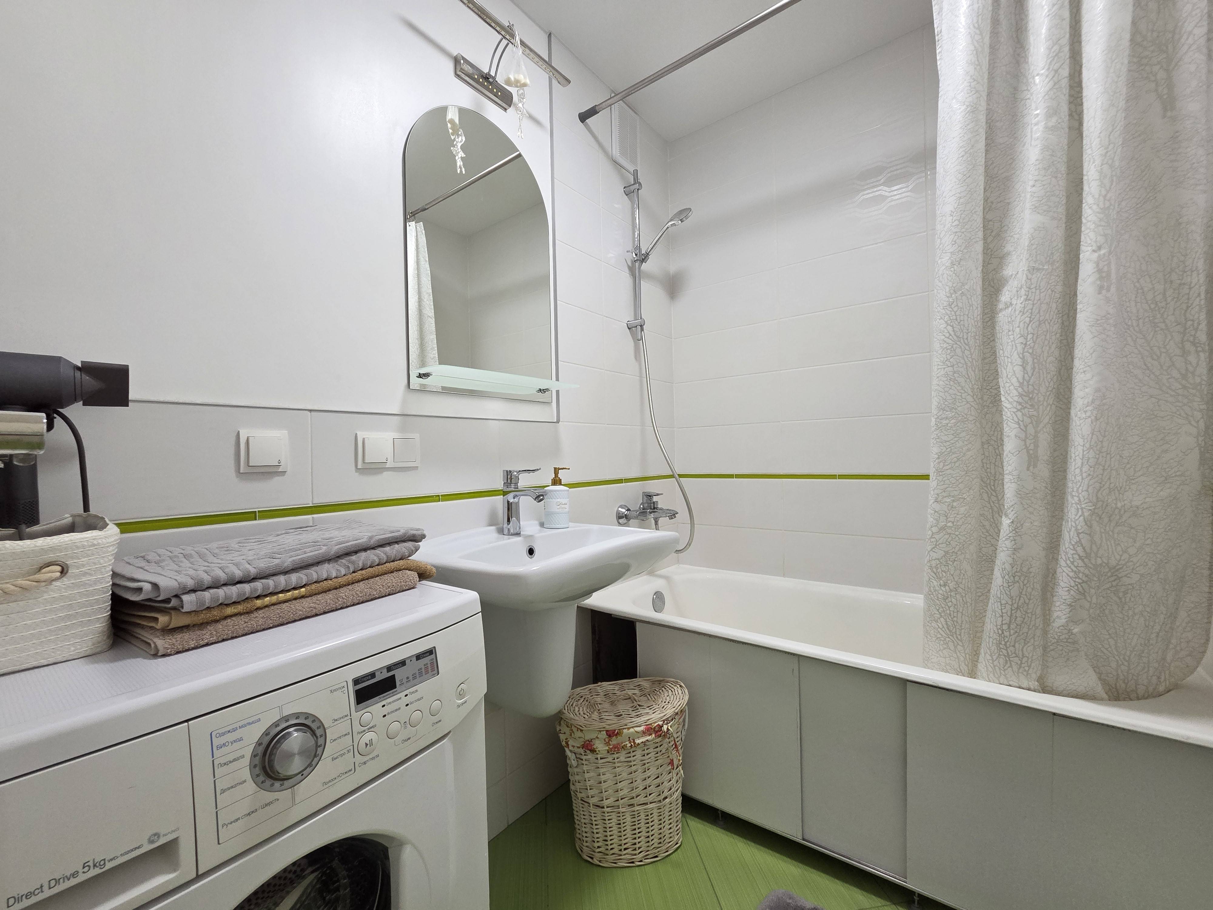 Гостям предоставляется все необходимое для комфортного проживания: Smart TV, бесплатныйWI-FI, холодильник, плита, духовой шкаф, СВЧ, стиральная машина, электрический чайник, утюг, фен, посуда, бокалы, столовые приборы. Принадлежности для душа. Свежее постельное белье и комплект полотенец.