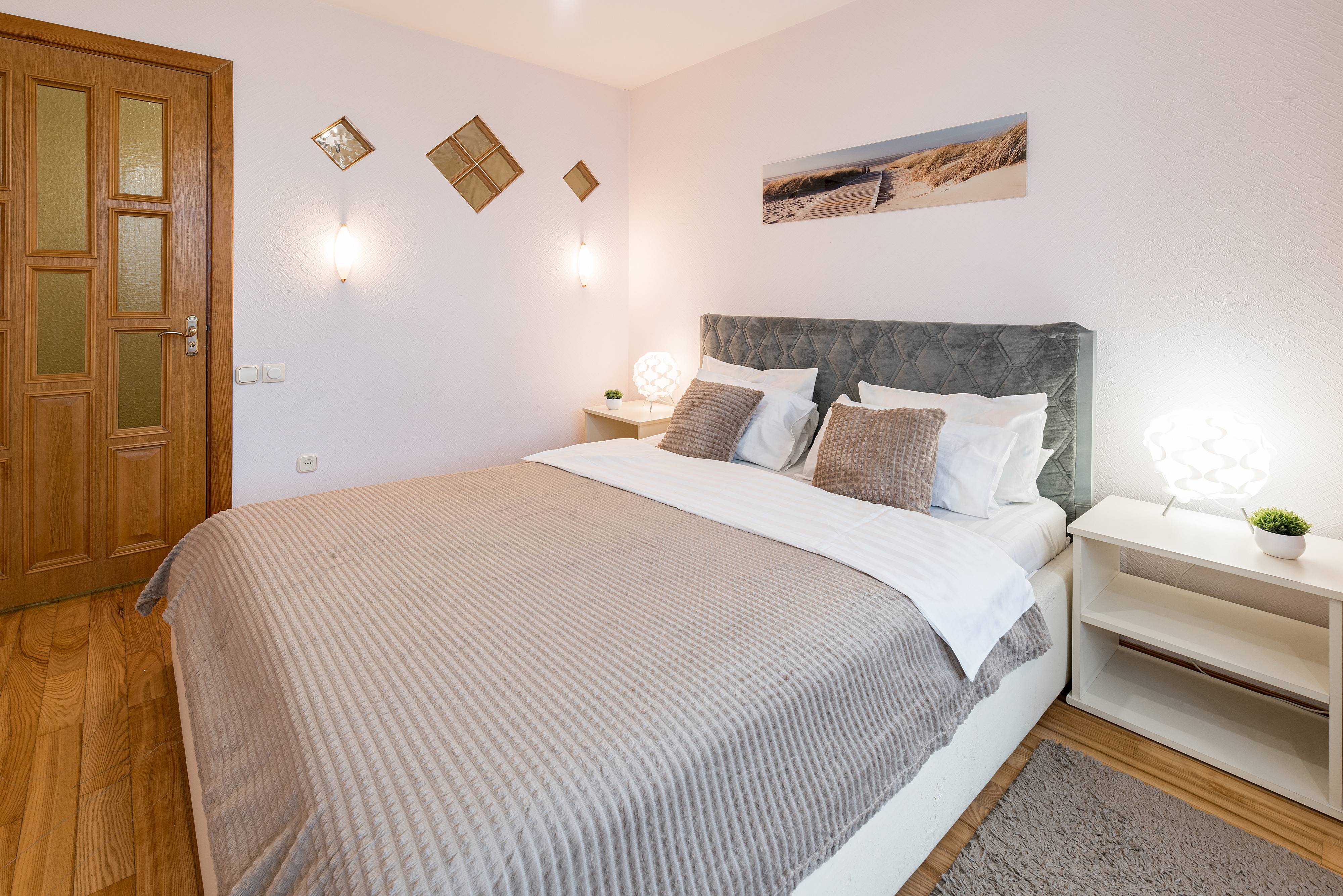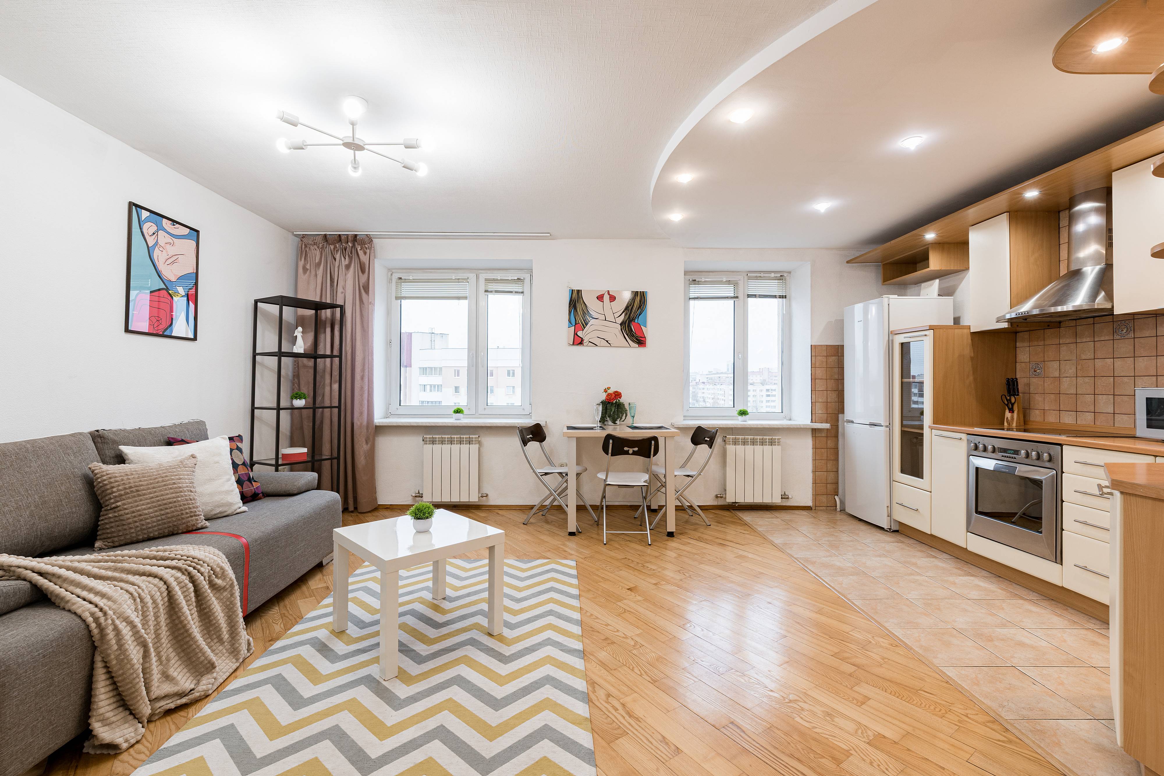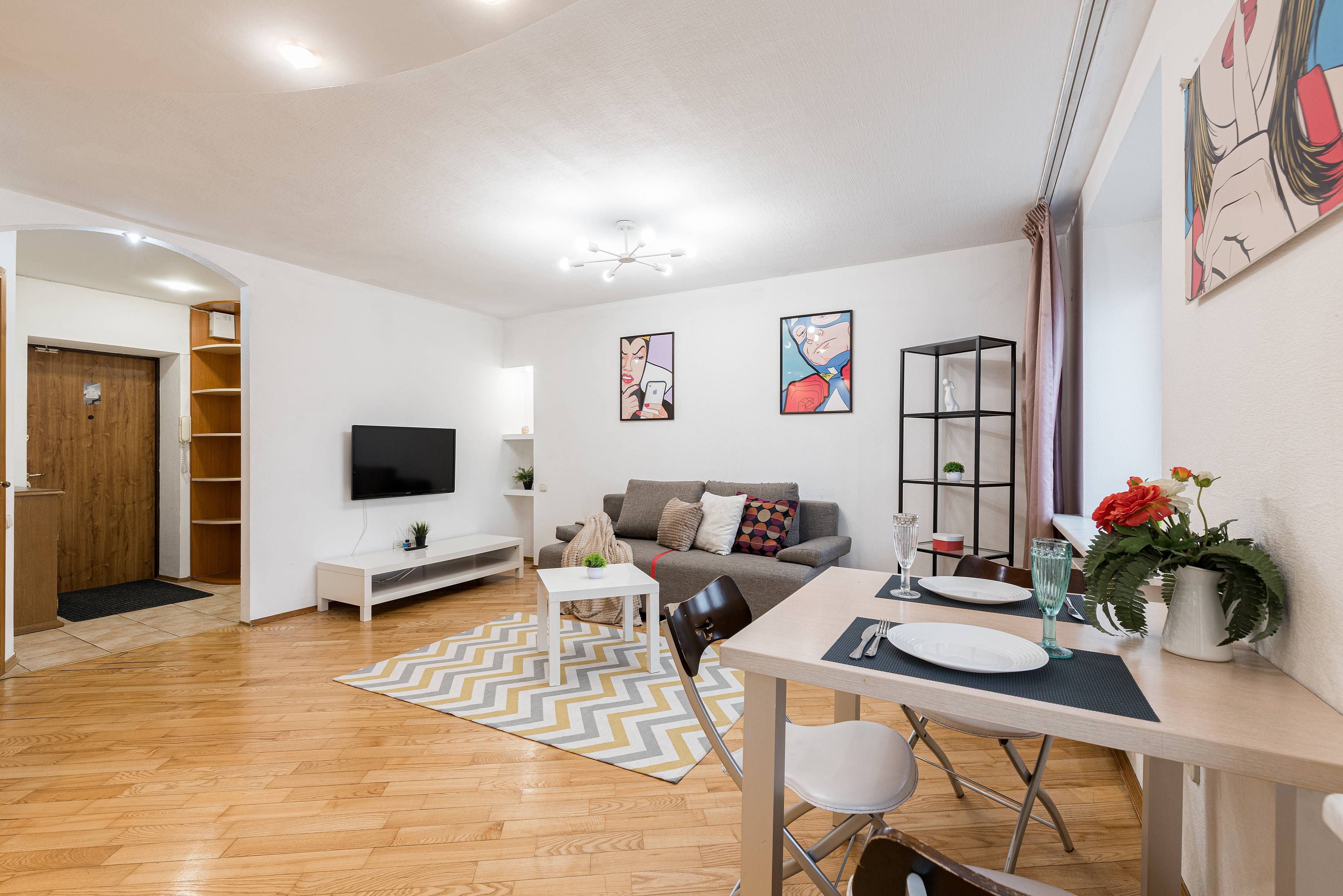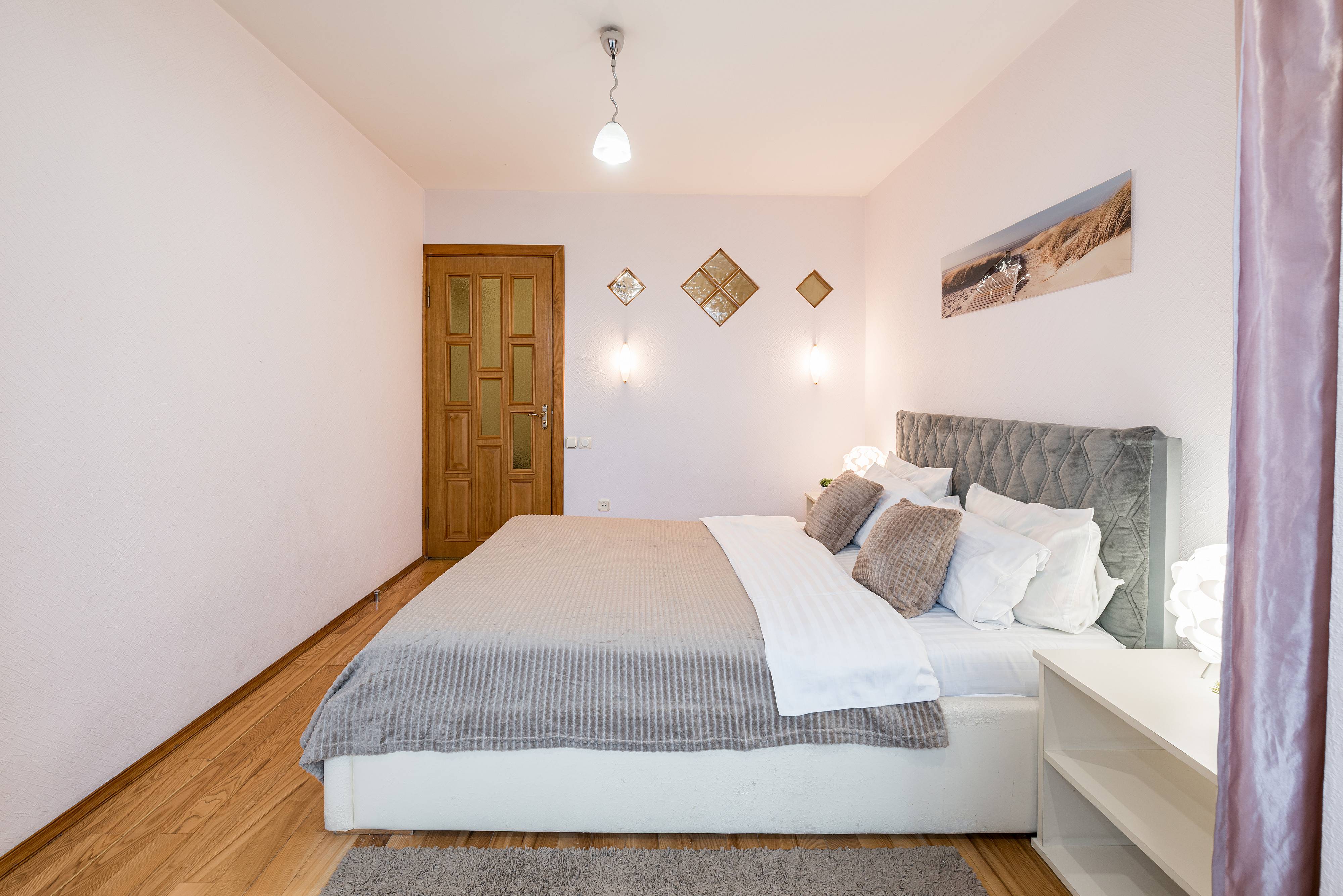 Квартира отлично подойдёт для пар, туристов и командировочных — здесь вы найдёте всё необходимое для приятного и комфортного отдыха. Удобный диван, новый ортопедический матрас для по-настоящему крепкого сна и телевизор с доступом в интернет — всё, чтобы вы чувствовали себя как дома.