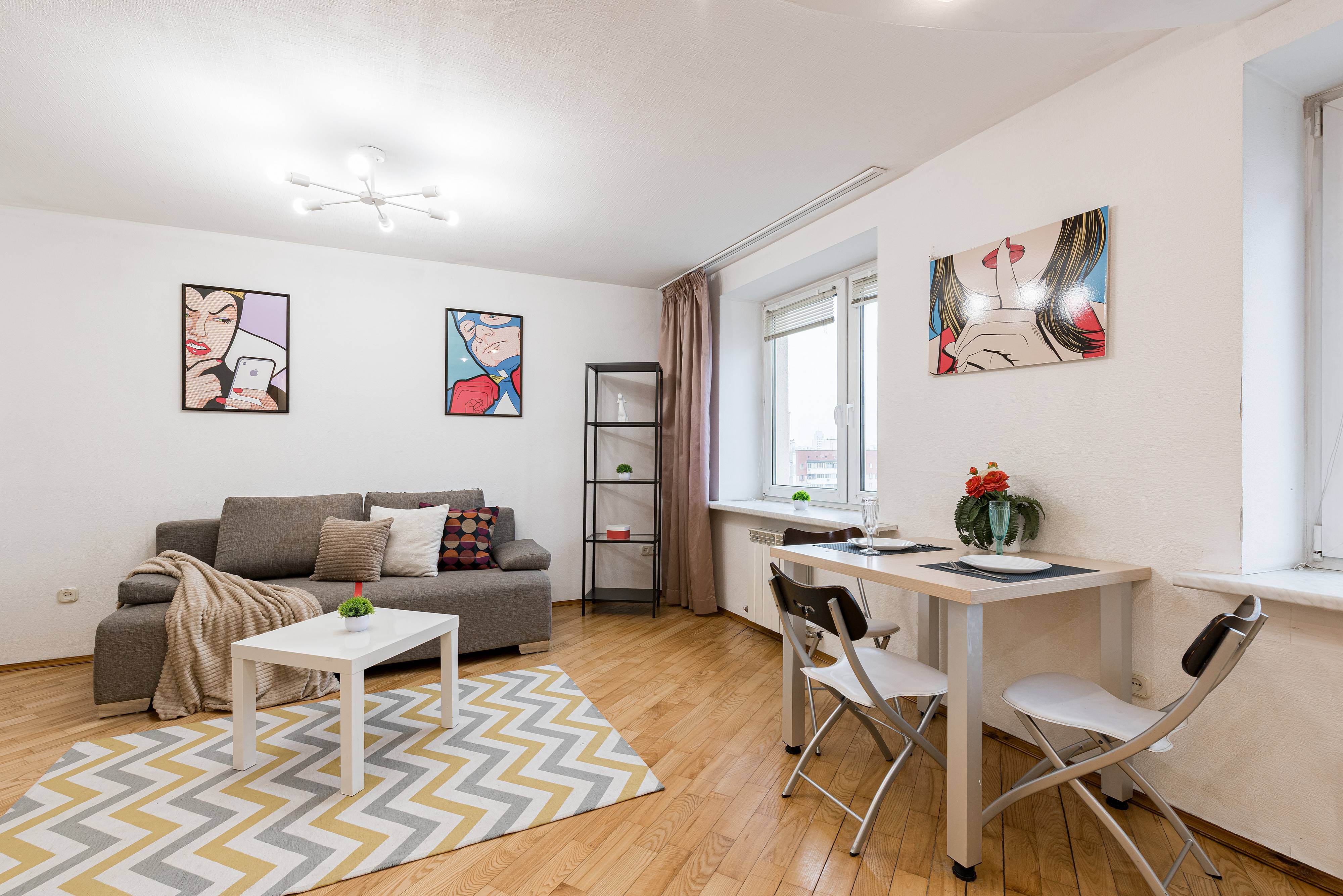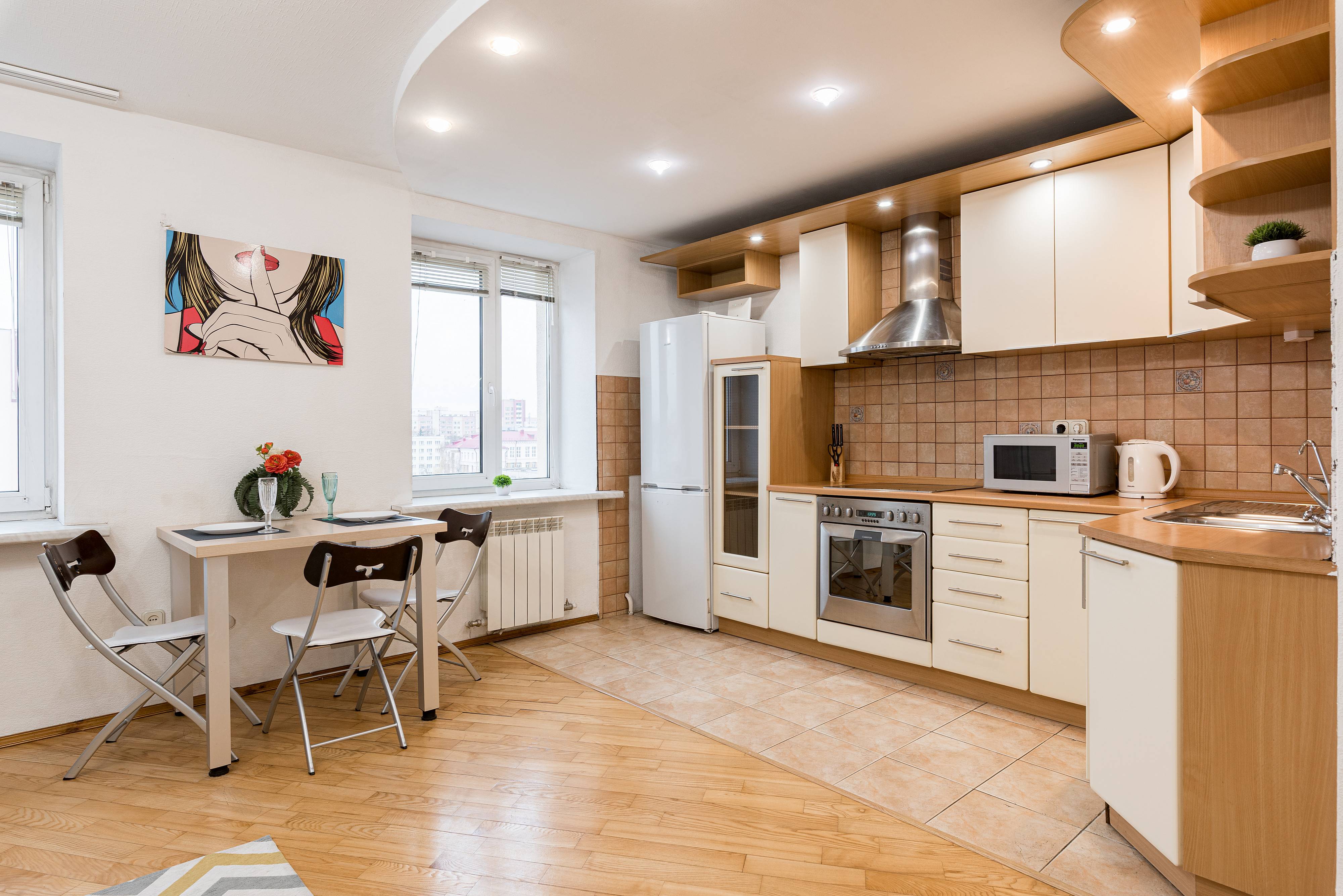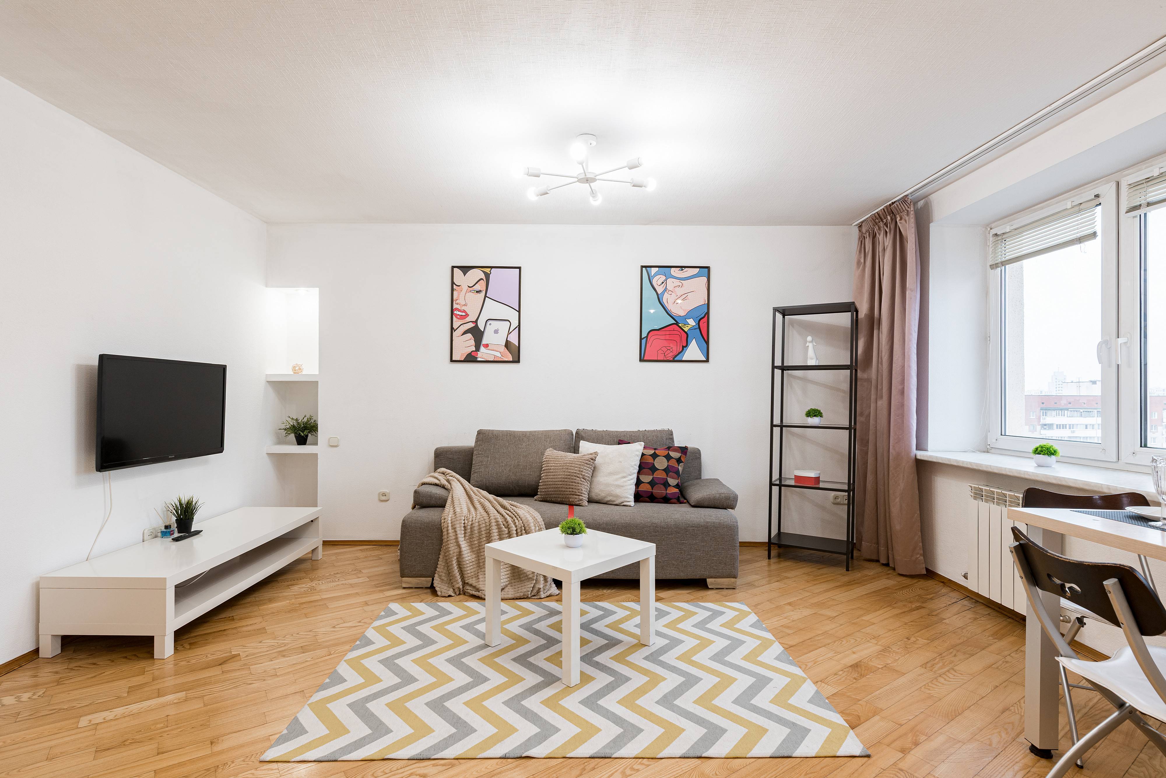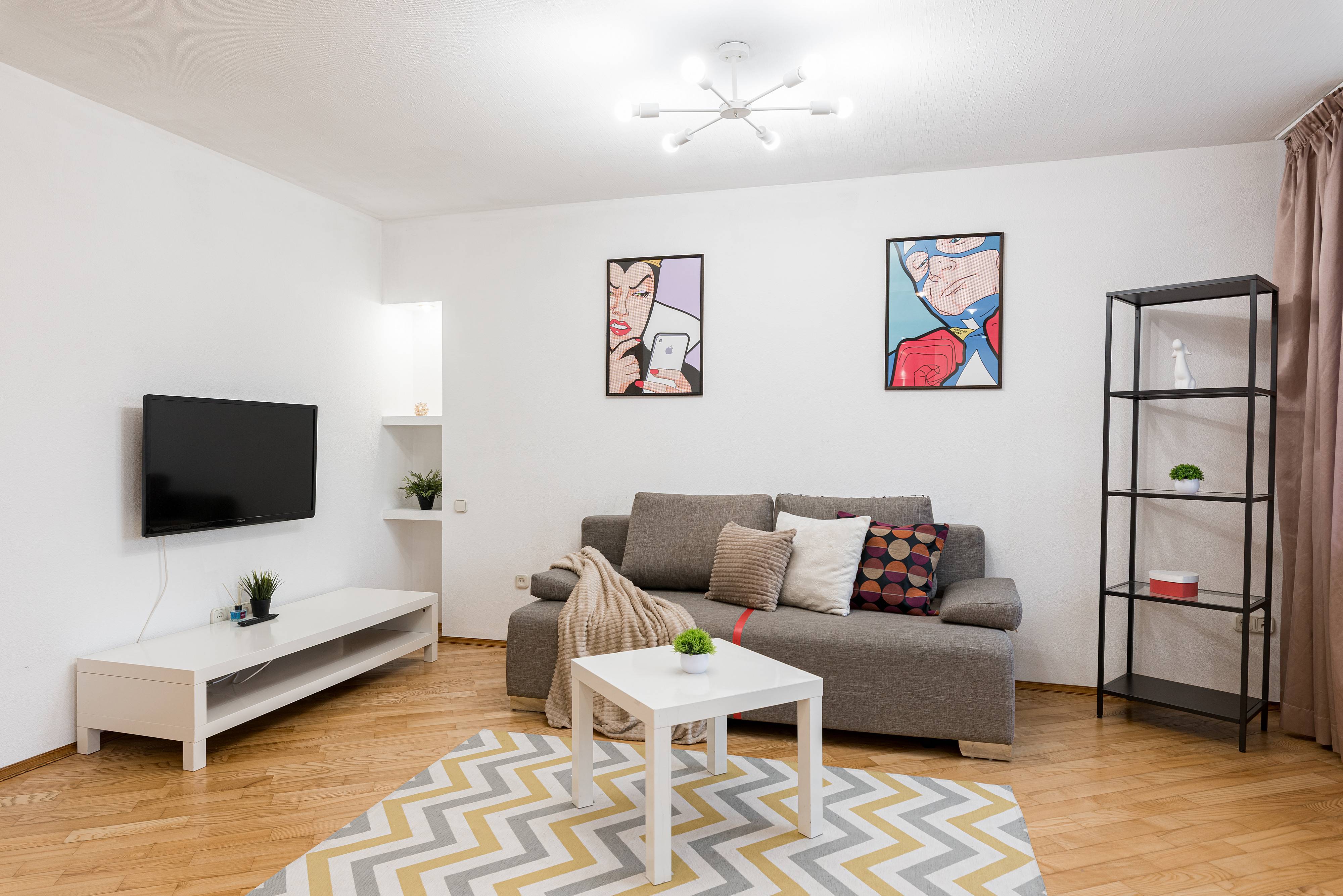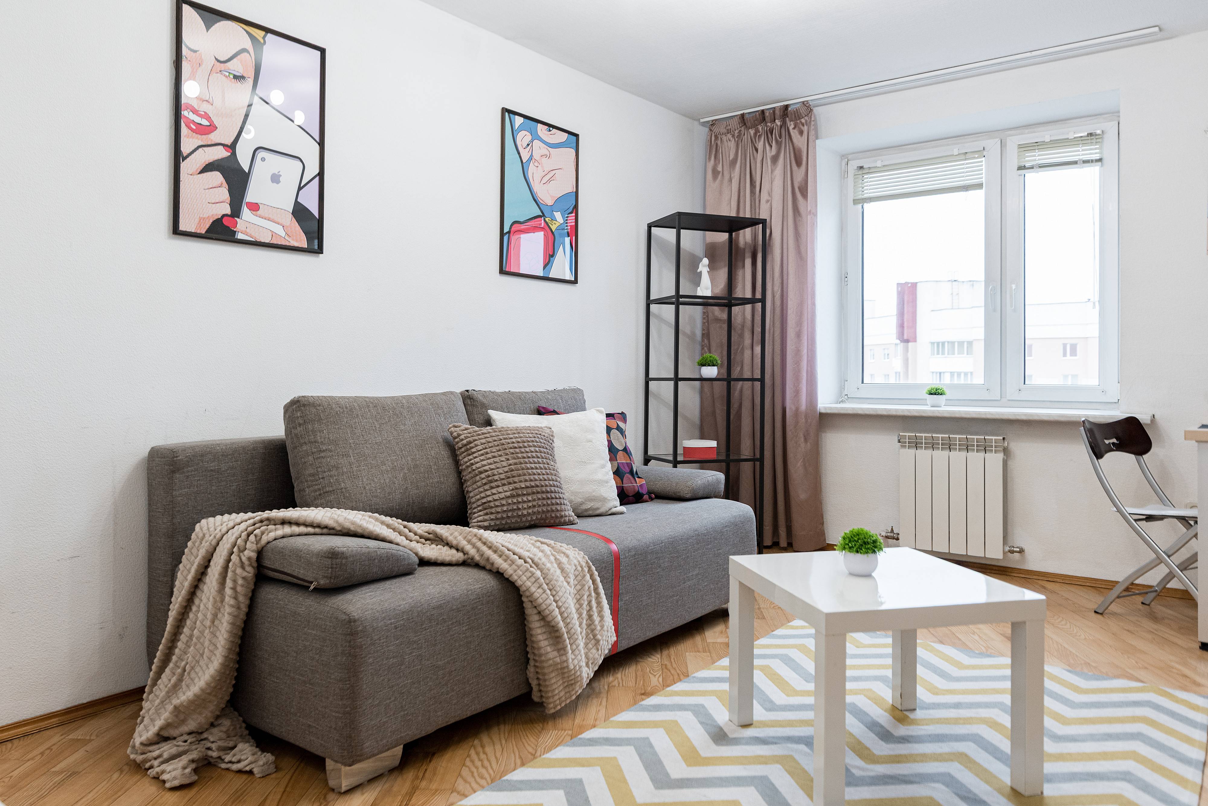 Квартира отлично подойдёт для пар, туристов и командировочных — здесь вы найдёте всё необходимое для приятного и комфортного отдыха. Удобный диван, новый ортопедический матрас для по-настоящему крепкого сна и телевизор с доступом в интернет — всё, чтобы вы чувствовали себя как дома.