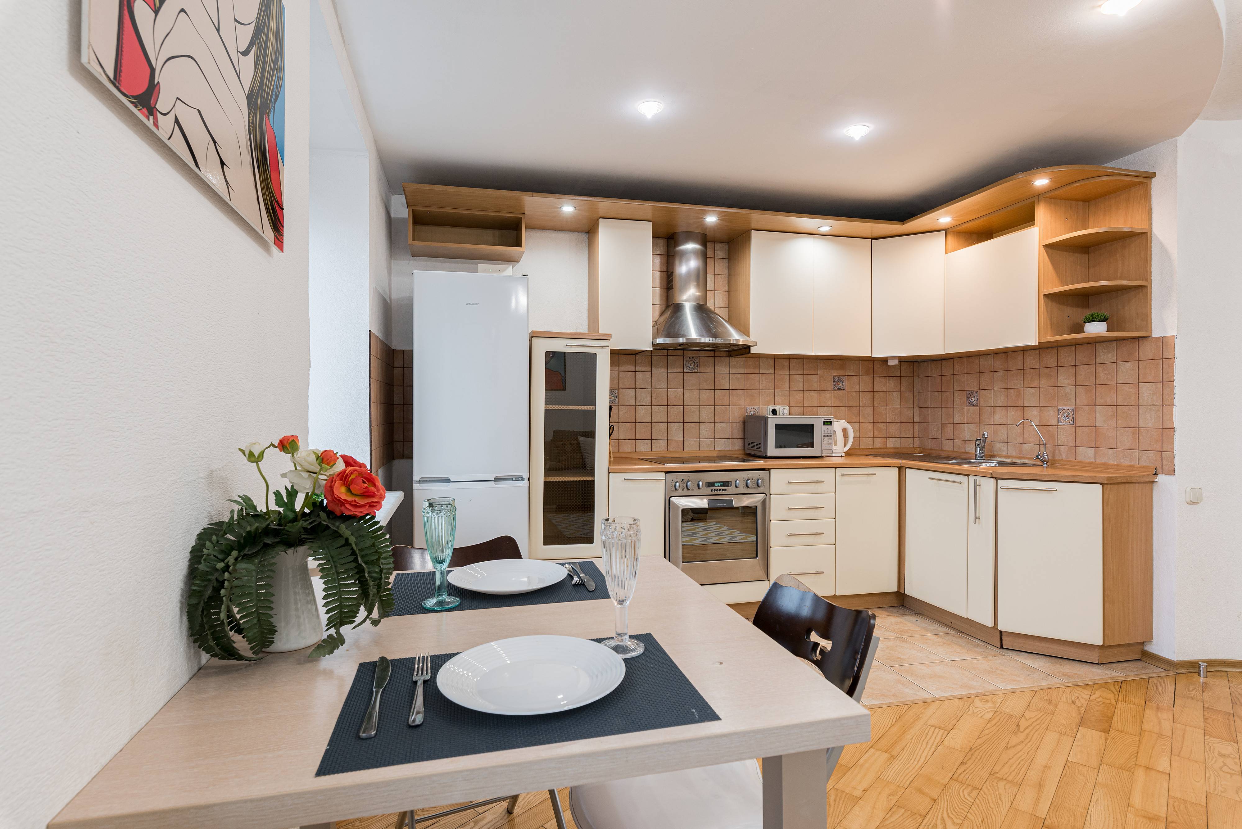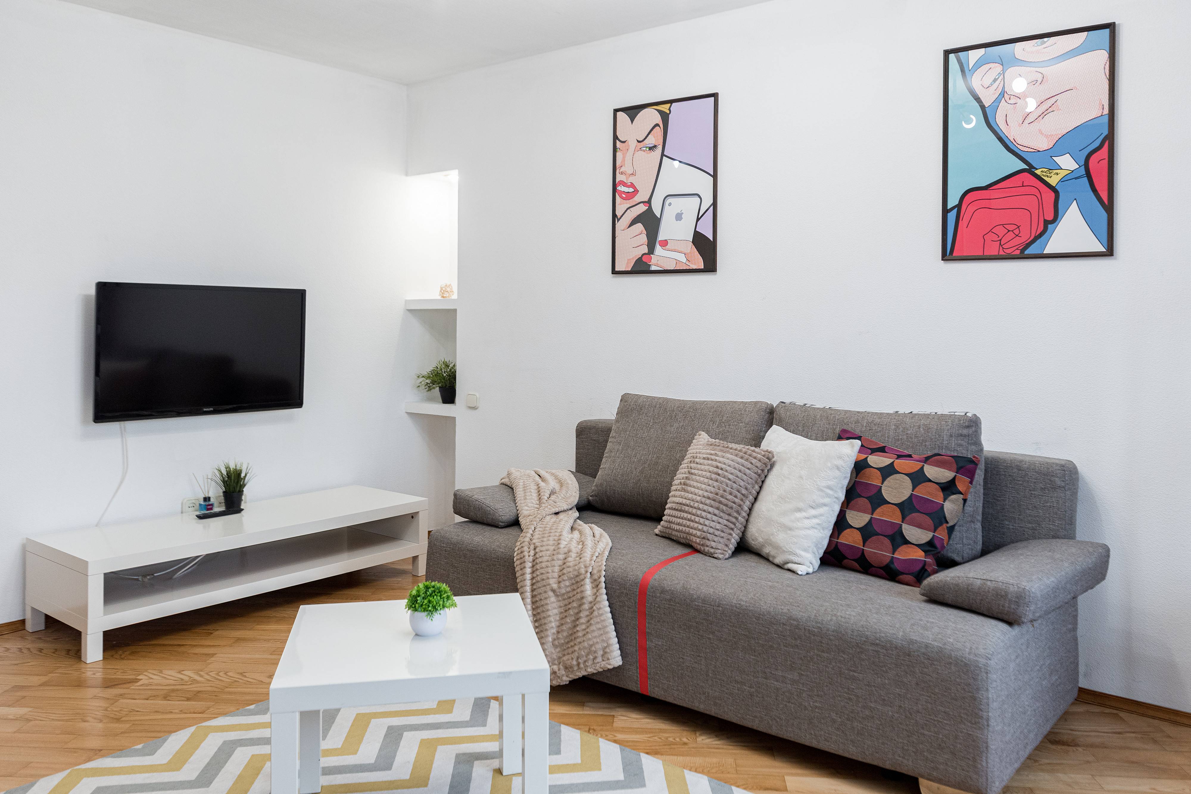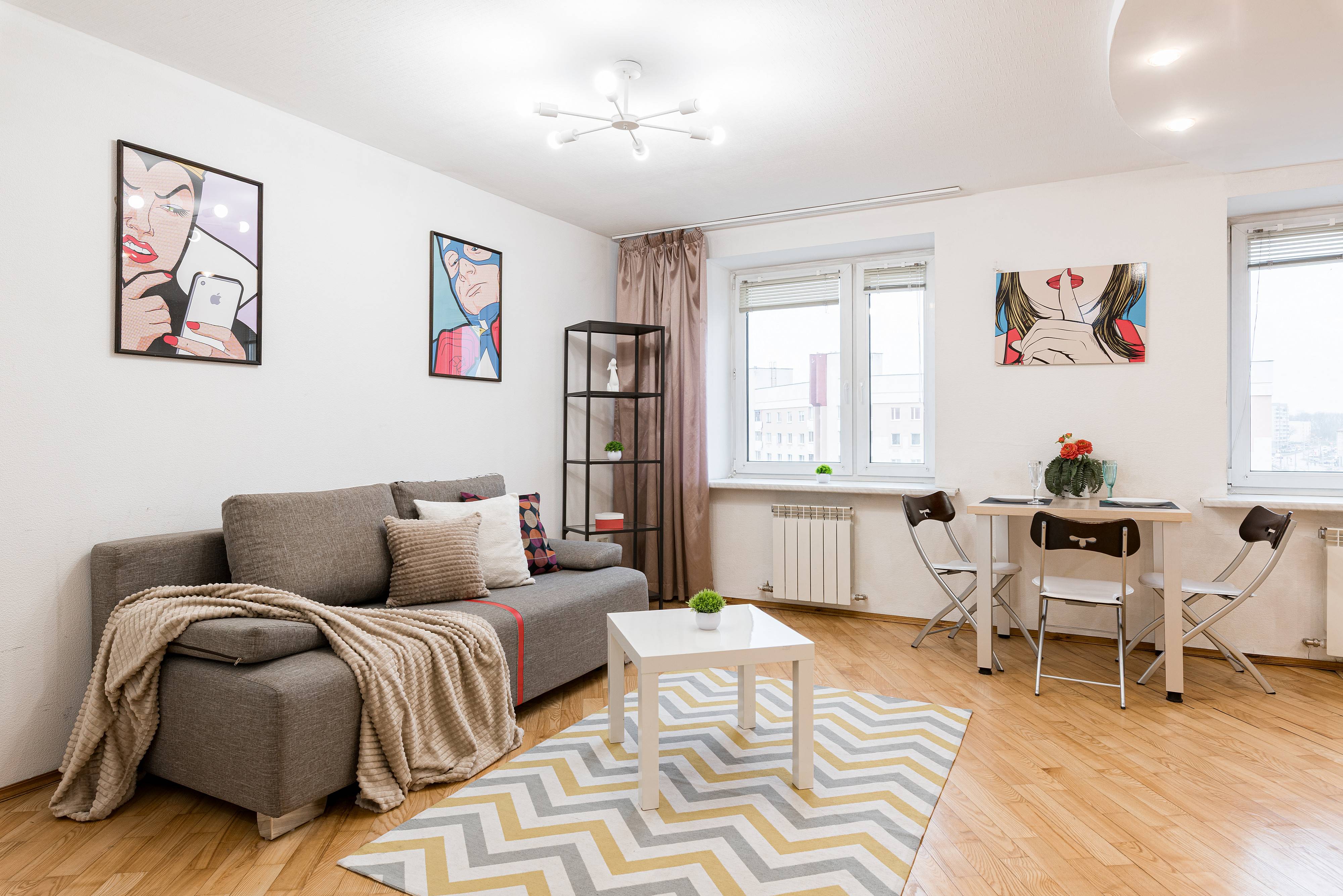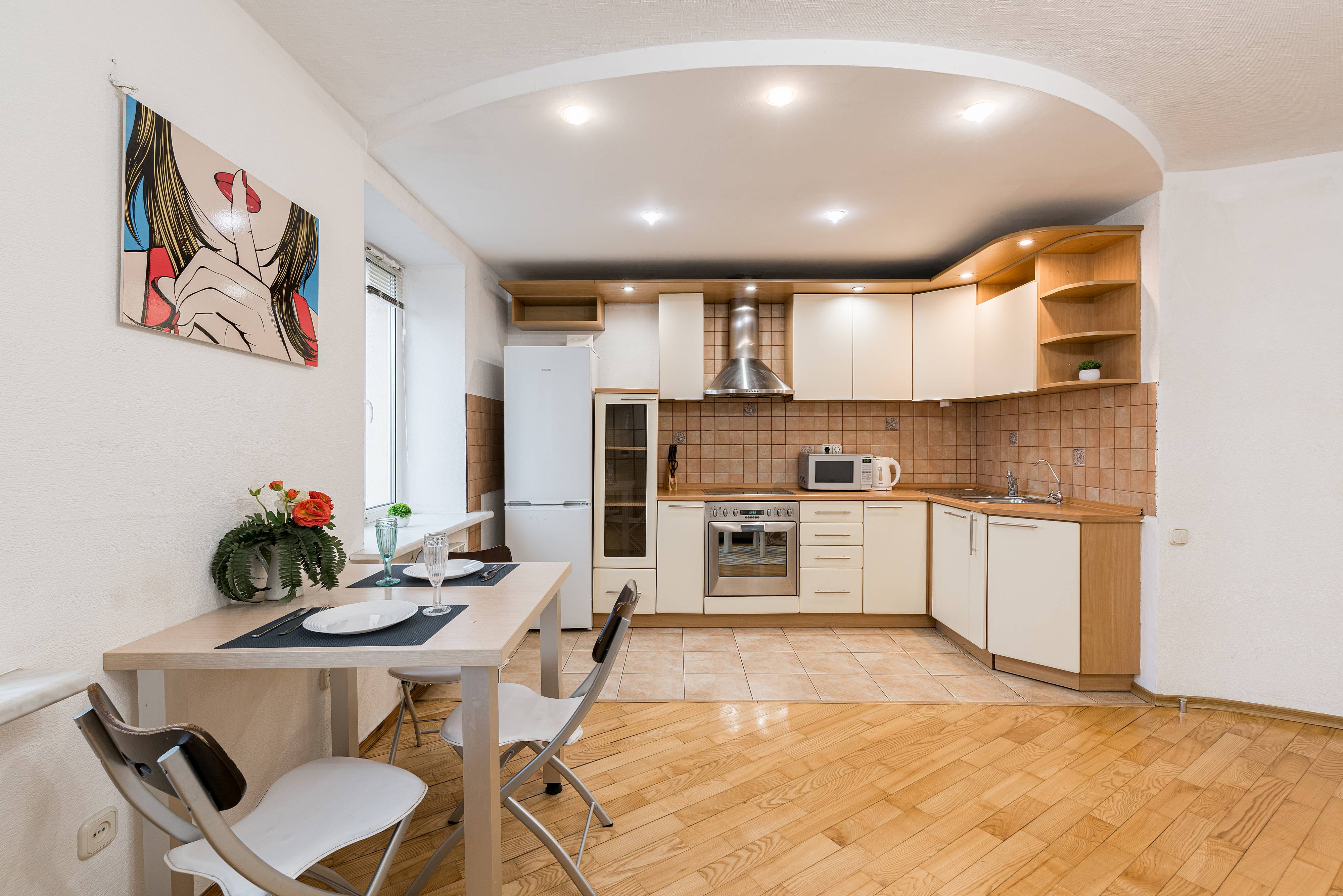 Квартира отлично подойдёт для пар, туристов и командировочных — здесь вы найдёте всё необходимое для приятного и комфортного отдыха. Удобный диван, новый ортопедический матрас для по-настоящему крепкого сна и телевизор с доступом в интернет — всё, чтобы вы чувствовали себя как дома.