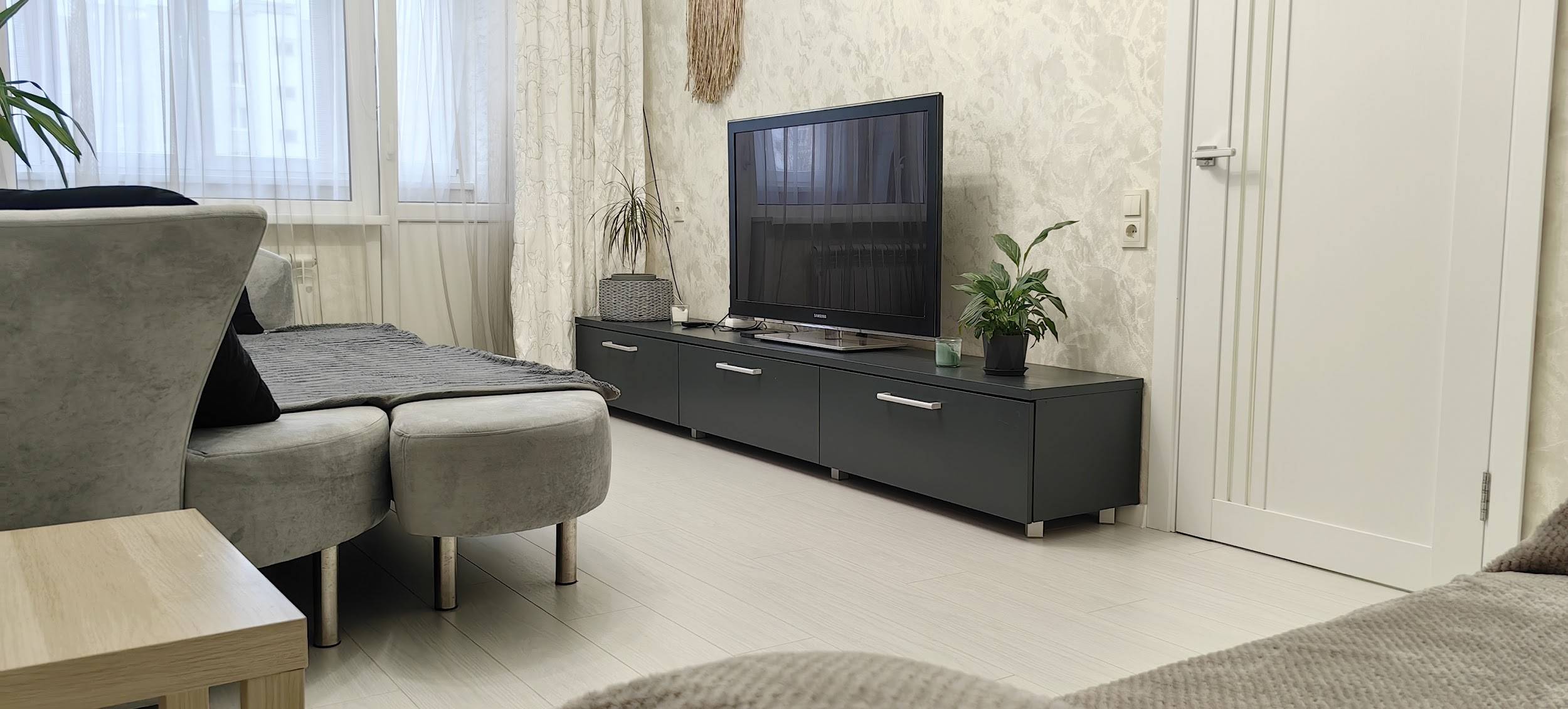 Квартира оформлена в современном стиле с использованием качественных материалов.