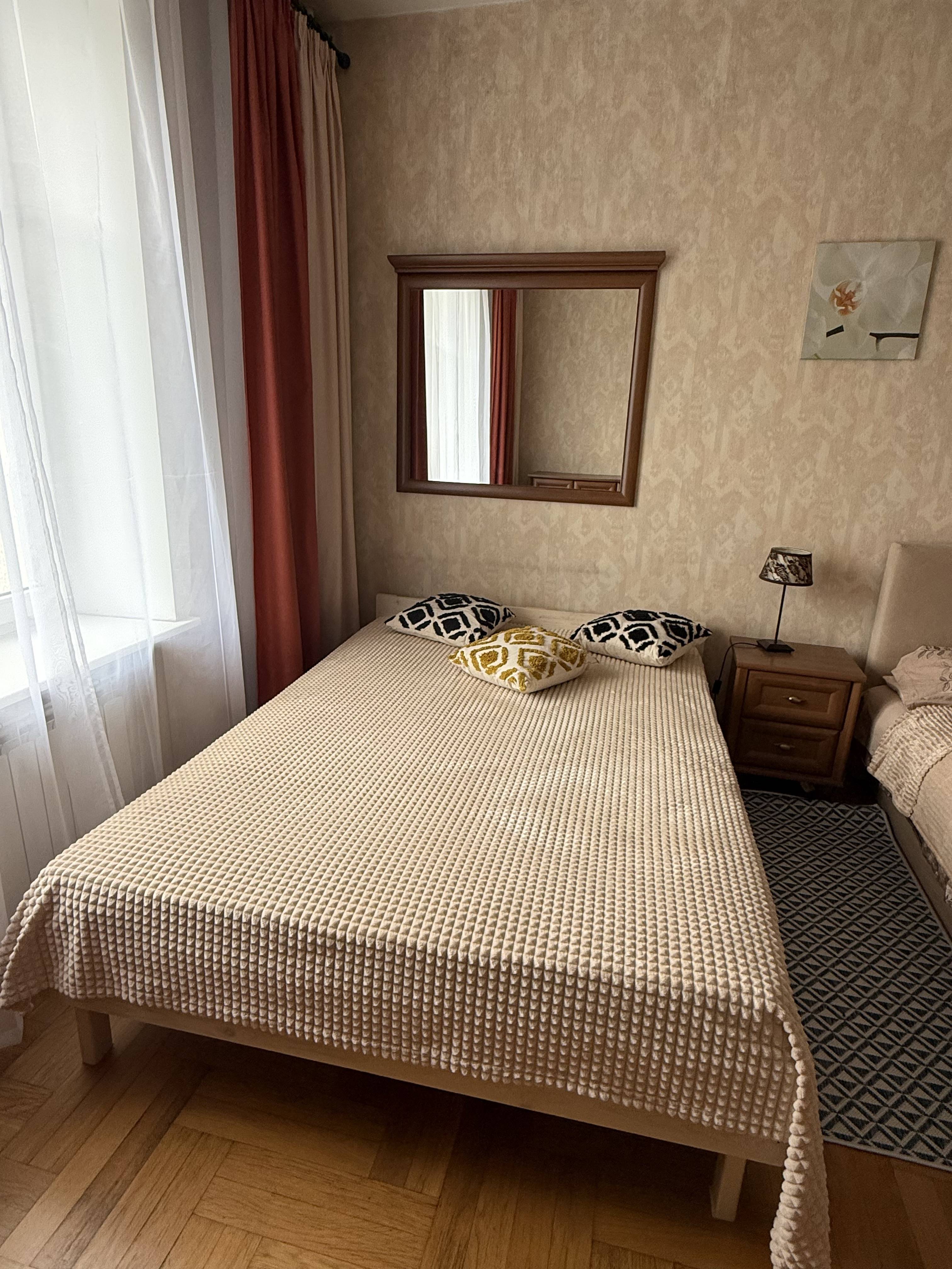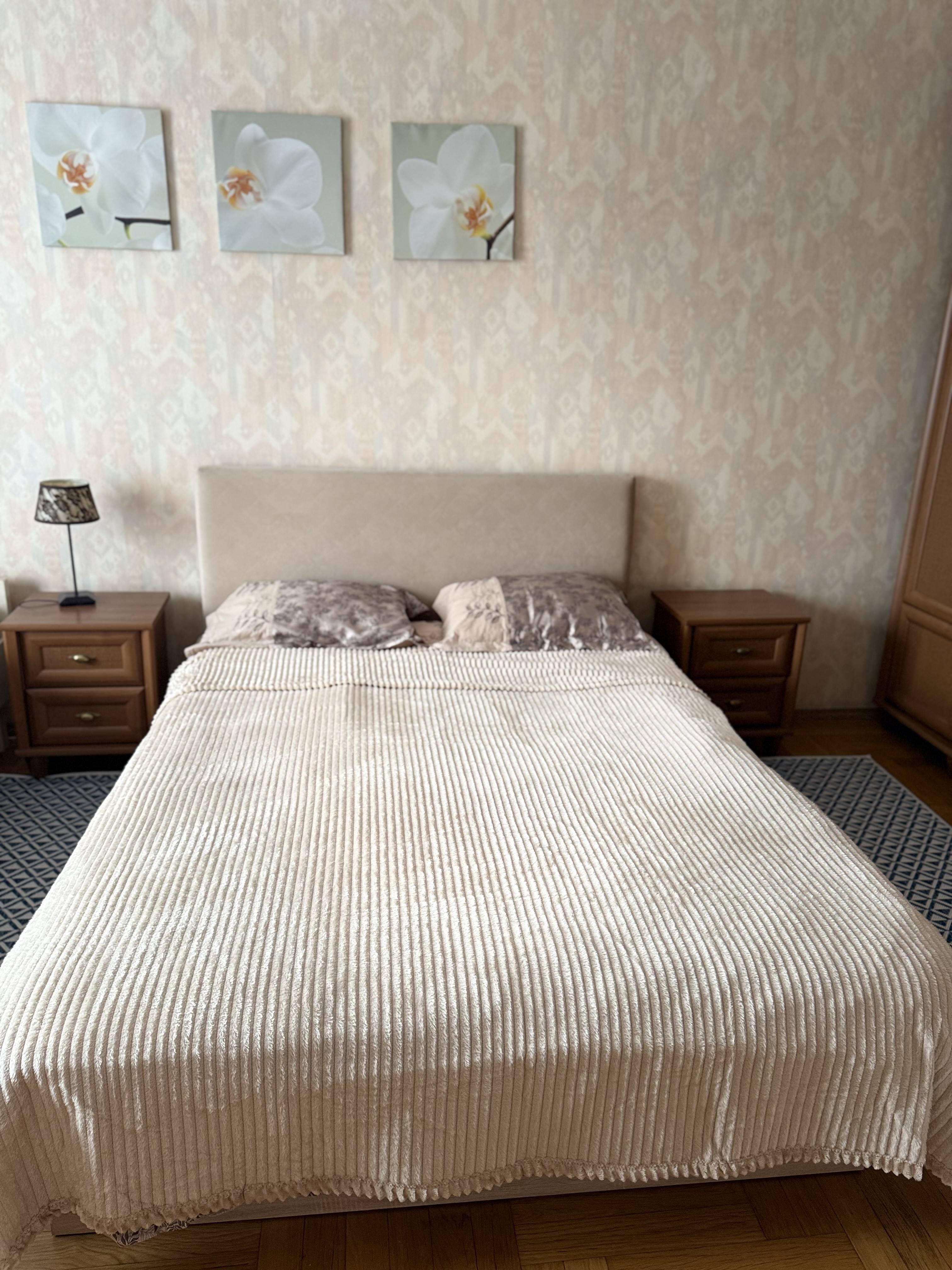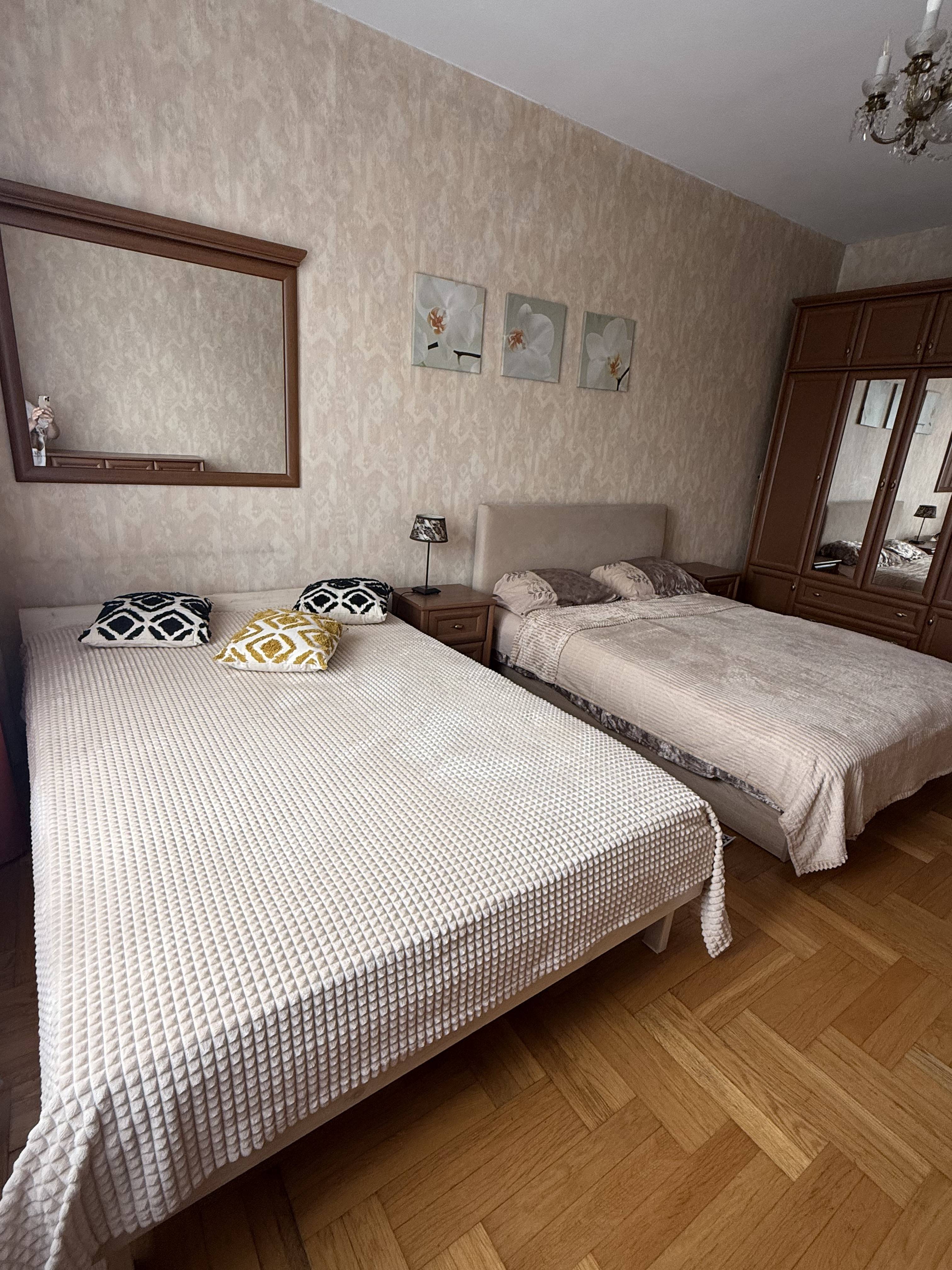 Большая, пррсторная квартира в классическом стиле с удобными кроватями, чистым бельем и сантехникой. 2 санузла спасают , когда много народа встает утром на экскурсию. Чай, кофе в наличии. Хозяйка приветливая и ответственная. Метро? Вышел и дверь в метро. 1 станция - центр города, если пешком не хотите.