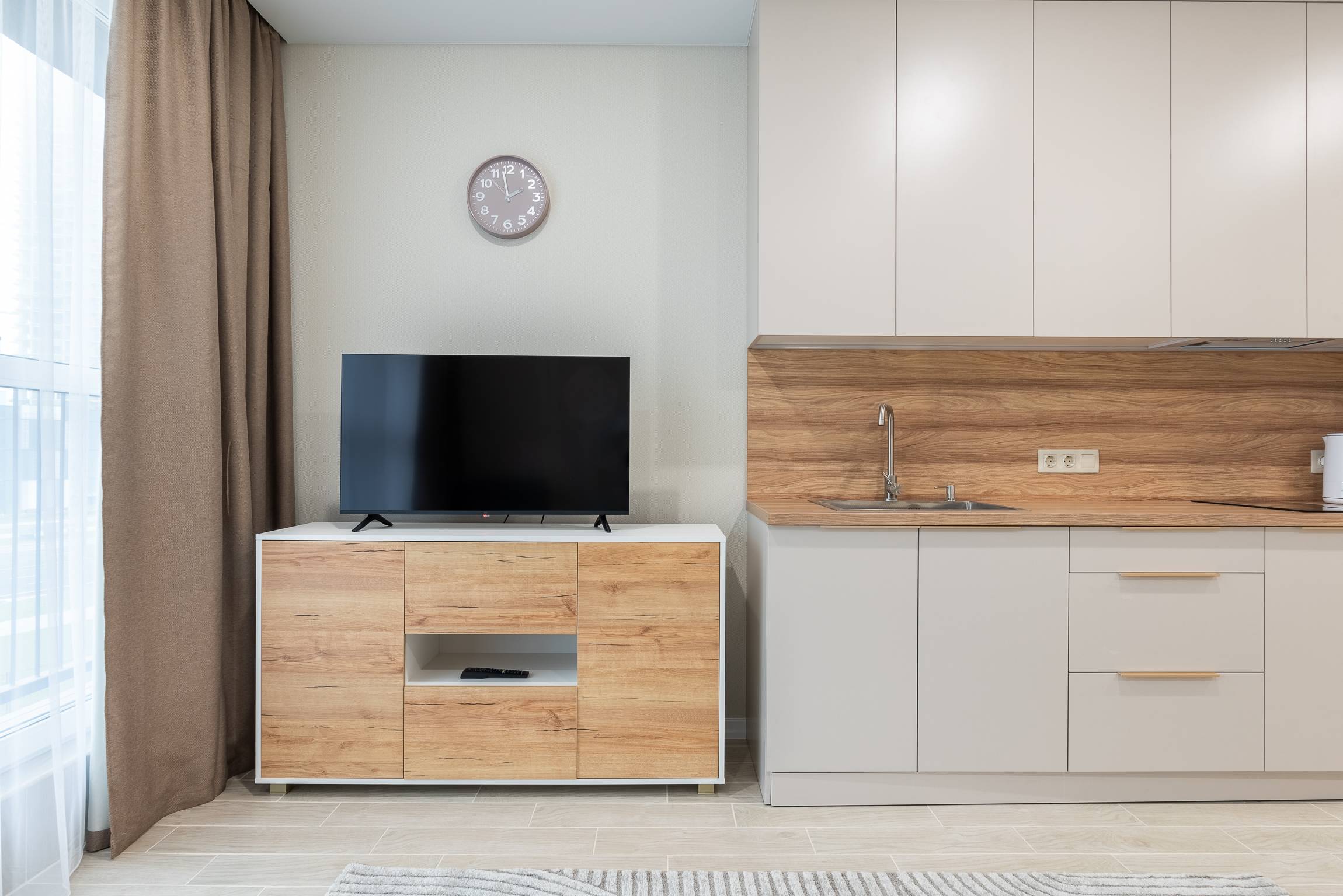 - Техника: телевизор, стиральная машина (порошок не предоставляется) , посудомоечная машина, утюг, гладильная доска, фен.