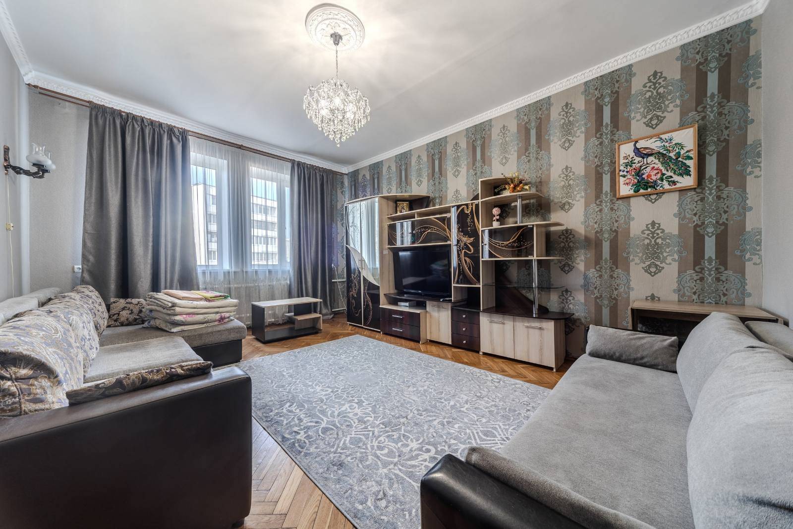 Не хотите ютиться в маленькой квартире с низкими потолками тогда Вам сюда!!! Большие, просторные комнаты 1 - 19м. кв, 2 - я - 20 м. кв, потолки высотой 3. 20м. Двухкомнатная квартира на сутки в САМОМ ЦЕНТРЕ МИНСКА!!! УЛ. ЯНКИ КУПАЛЫ-11!!! Постройка дома в стиле Сталинский ампир. 6 спальных мест 2+2+1