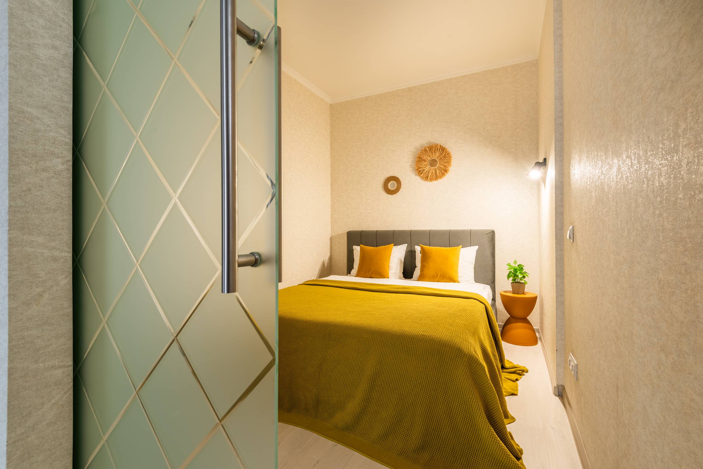 • удобная двуспальная кровать и диван с качественным постельным бельём