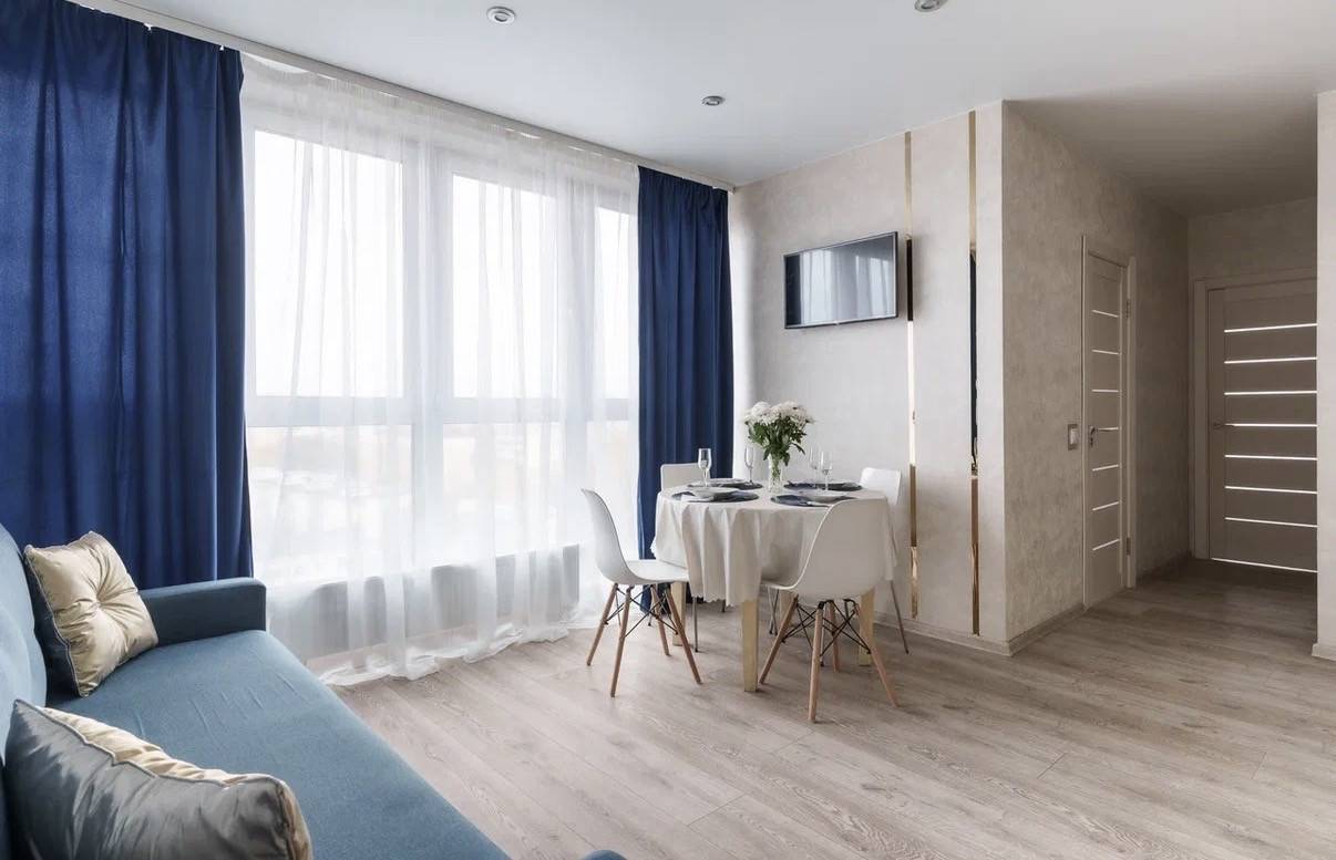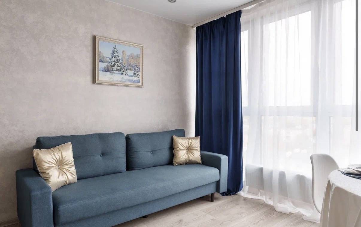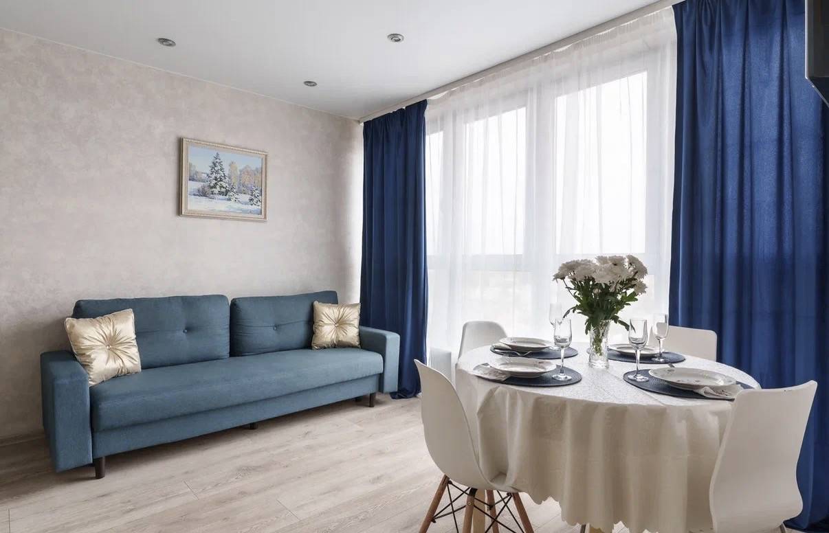 Квартира светлая и просторная, с продуманной планировкой. В отдельной спальне — удобная двуспальная кровать и вместительный шкаф. В гостиной — комфортный диван, который при необходимости раскладывается, ТВ и зона для отдыха. Полностью оборудованная кухня: плита, холодильник, микроволновая печь, чайник, вся необходимая посуда. Санузел совмещенный, стиральная машина.