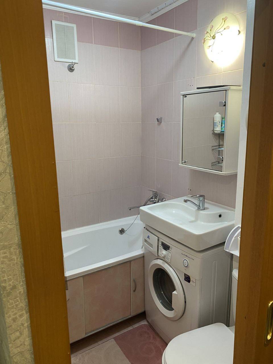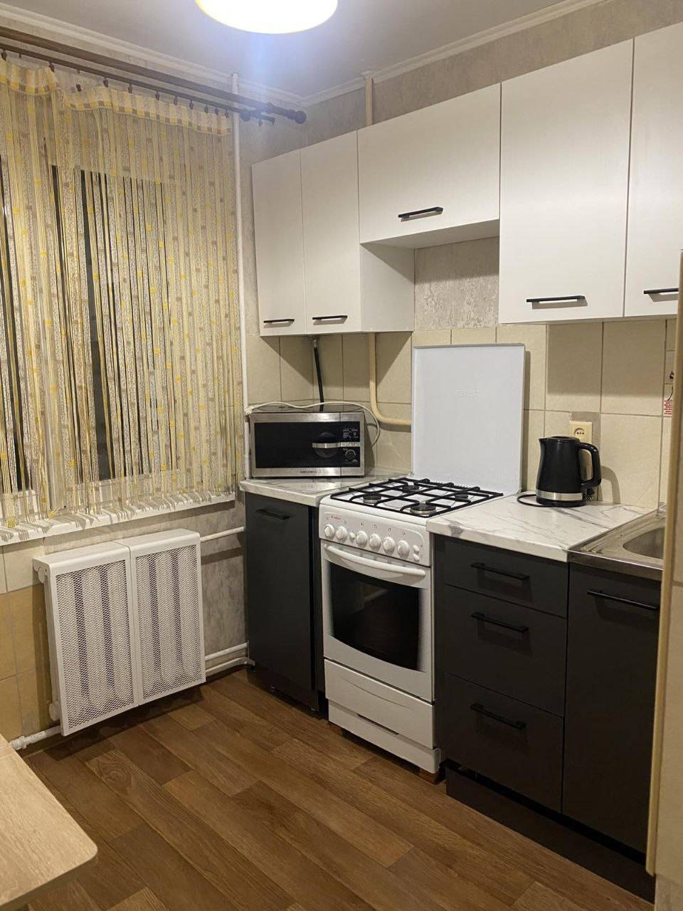 * Полное оснащение: Компактная кухонная зона с новой плитой, СВЧ-печью, электрочайником и стиральной машиной.