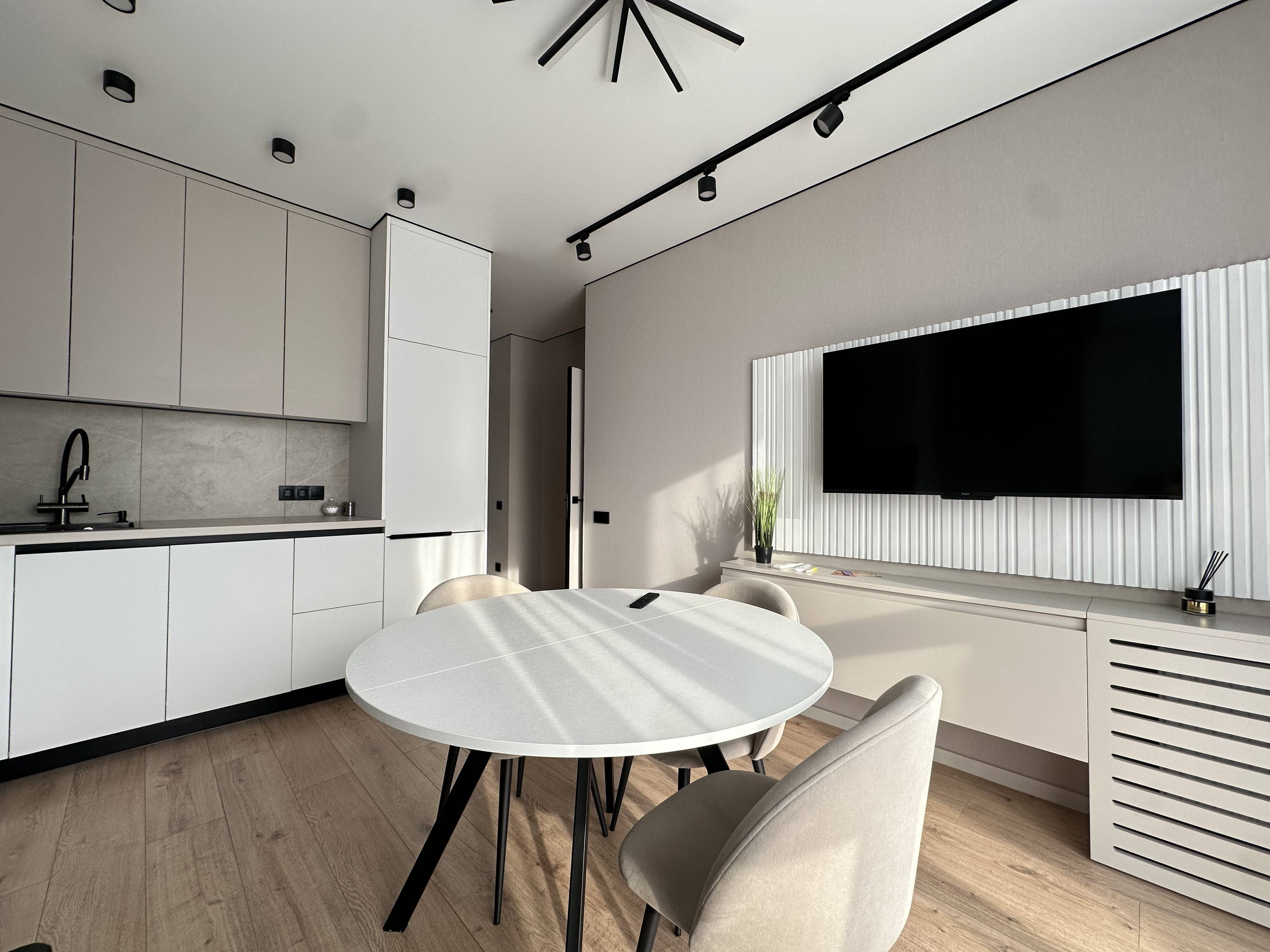 В квартире 2 изолированные комнаты и кухня-гостиная. В каждой комнате можно расположить по 2 человека. Есть всё необходимое для комфортного проживания.